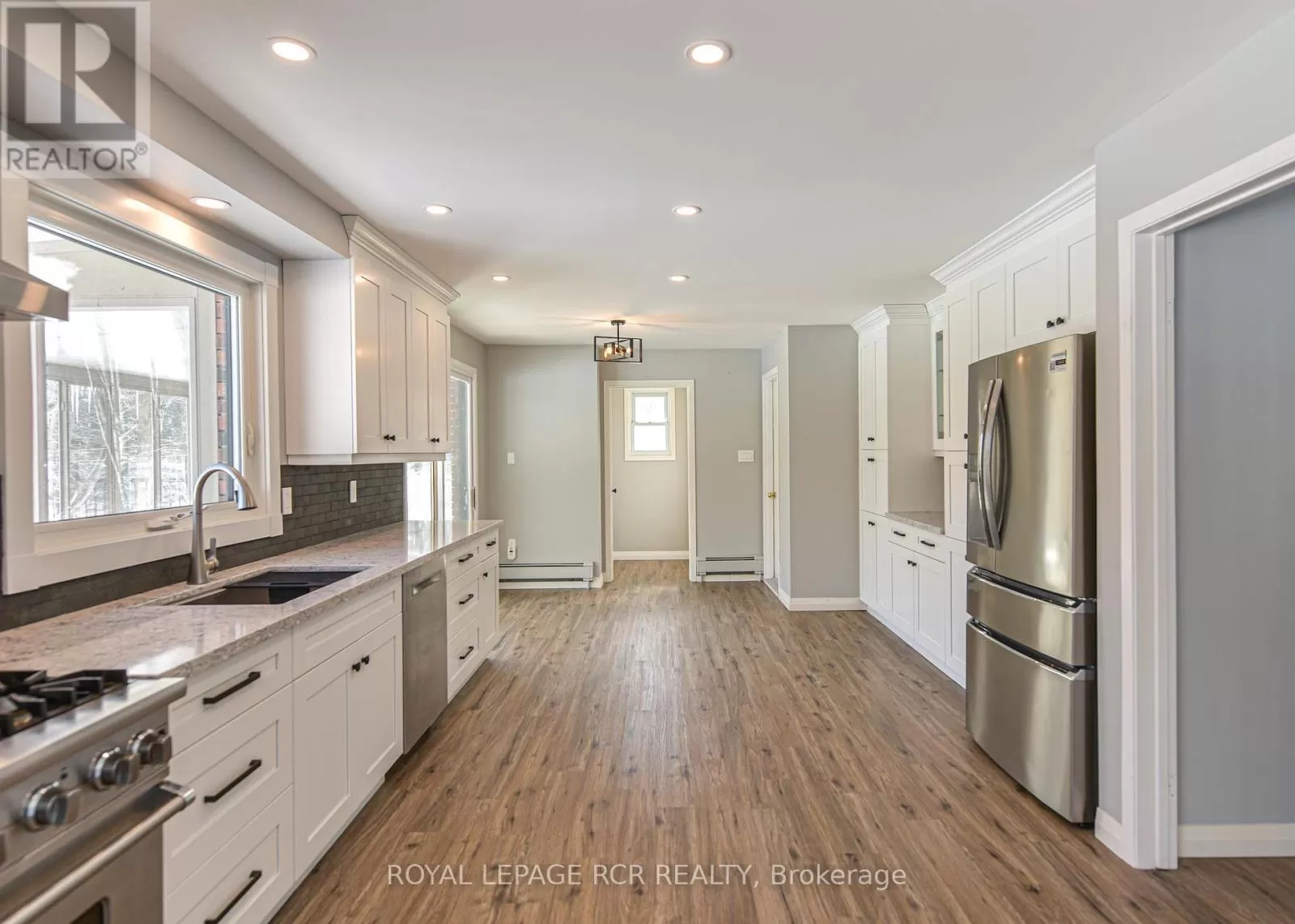 Carlyon Line / Hwy 11 Welcome to tranquility surrounded by trees and nature. This newly renovated/un-lived in (upper) country home sits on 10 acres of land with plenty of lush lawns to enjoy on a dead-end cul-de-sac. Take in all nature has to offer on the front porch or sunroom with lots of room for seating and viewing. Warm up by the fireplace (2023) in the family room during the cooler months and entertain guests in your eat-in kitchen which features quartz countertops, stainless steel appliances including a 4 Chefs Brigade range for cooking gourmet. This property is perfect for families needing bedroom space as it hosts 4 bedrooms and 2 newly renovated bathrooms on the second floor. As if this property doesn't already offer plenty, the renovated basement is perfect for in-law/nanny suite or income generating basement. The basement features 2 bedrooms, 2 bathrooms, in suite laundry, heated floors, and a walk out to the back yard green space. Have comfort in knowing that waterproofing completed in 2018 on basement foundation, included is a Generac 10,000W generator, plenty of vegetable garden space and a chicken coop with hydro. The quiet use and enjoyment of the property comes with the luxuries of close by entertainment and amenities such as golf courses, parks, proximity to town shops, beaches, and the rail trails at the back of the property. This is your chance to own a country property with acreage at an affordable price! (id:27476)
