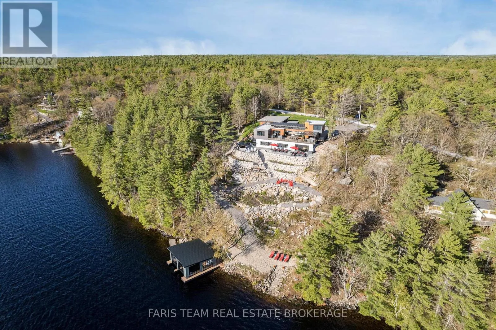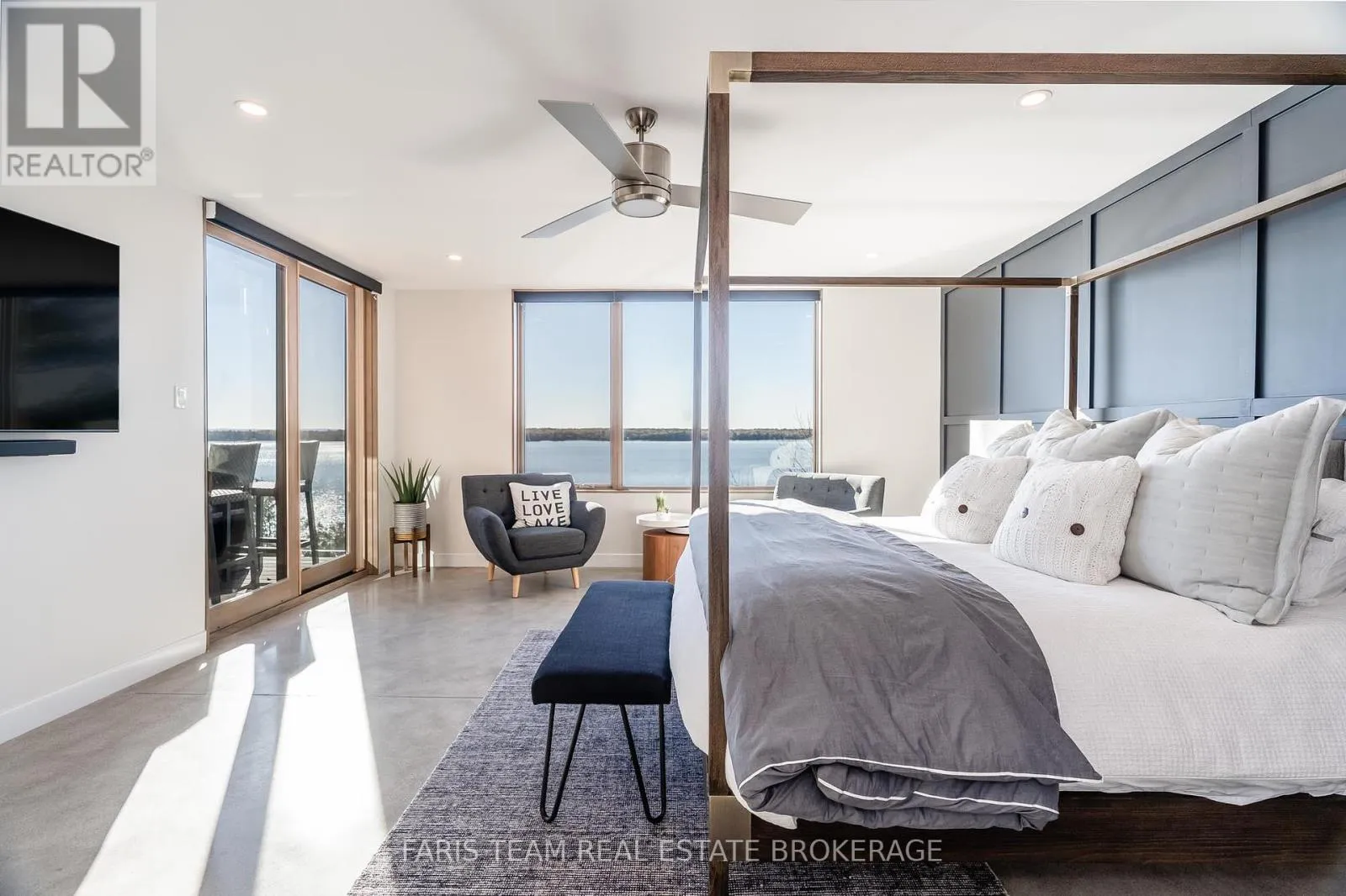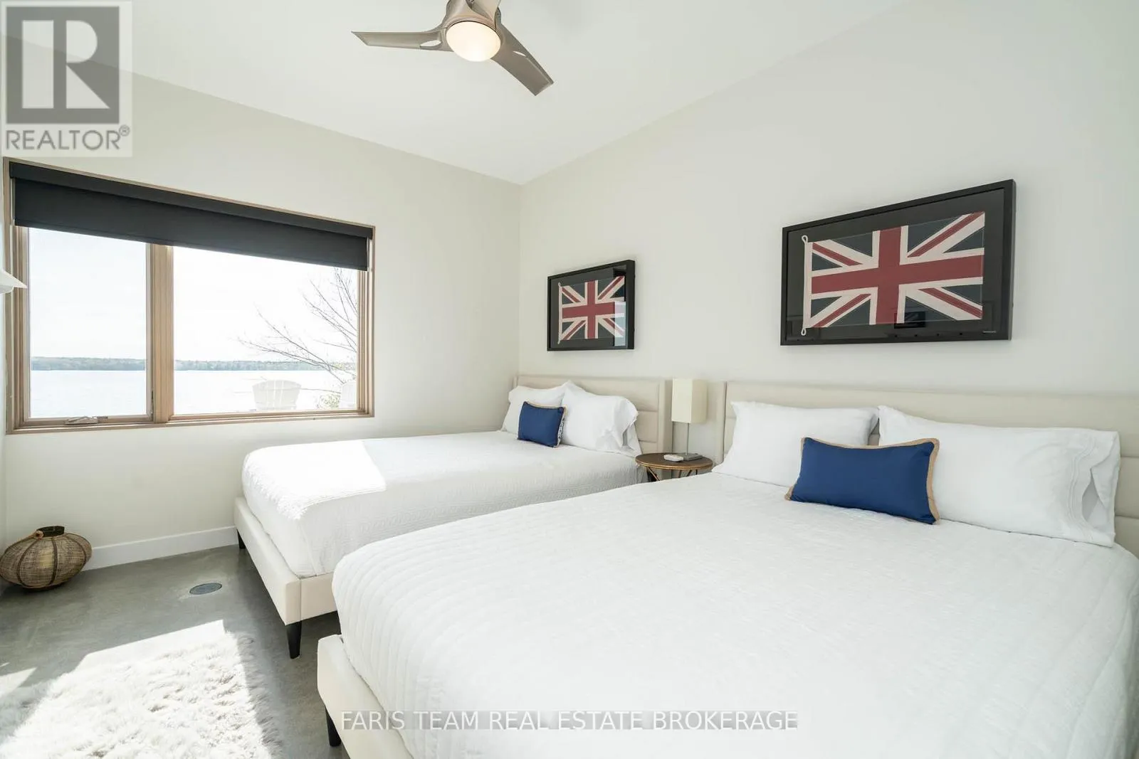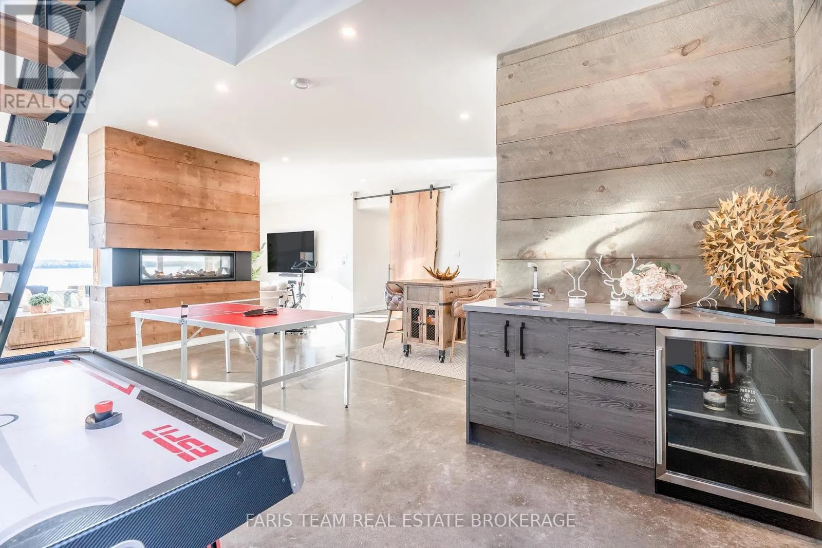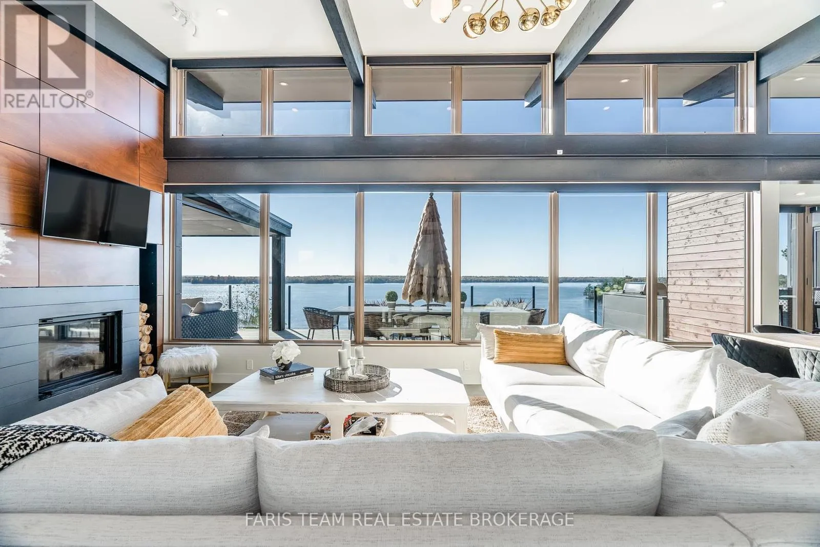 Tower Line Rd/E Shore Rd Top 5 Reasons You Will Love This Home: 1) From the striking polished concrete floors with radiant in-floor heating to the gourmet chefs kitchen and sleek high-end finishes, every inch of this home has been thoughtfully designed with contemporary comfort in mind, soak in the sweeping, unobstructed views that create the perfect backdrop for everyday living 2) With a main level primary suite for ultimate convenience, plus four additional guest bedrooms, a cozy loft, and a walkout recreation room that leads right to the waters edge, there's no shortage of room for family, friends, and creating unforgettable memories 3) Professionally landscaped to perfection, this property boasts a stunning granite patio, built-in water feature, serene sauna, and a charming screened-in Muskoka porch, with thoughtfully hardscaped stone paths guiding you through lush greenery and peaceful gathering spots 4) Set on a highly sought-after lot with an impressive 180' of pristine Gloucester Pool frontage, enjoy a sandy beach area, a private dock, and a two-slip boathouse, ideal for boating enthusiasts, while the heated, insulated, and waterproofed garage is a standout, professionally finished by Garage Living with custom shelving and durable PVC paneling 5) With true LTE high-speed internet and access via a private, four-season road, this home spans 4,037 finished square feet and presents the ultimate four-season escape or full-time luxury residence. 4,037 above grade sq.ft. (id:27476)