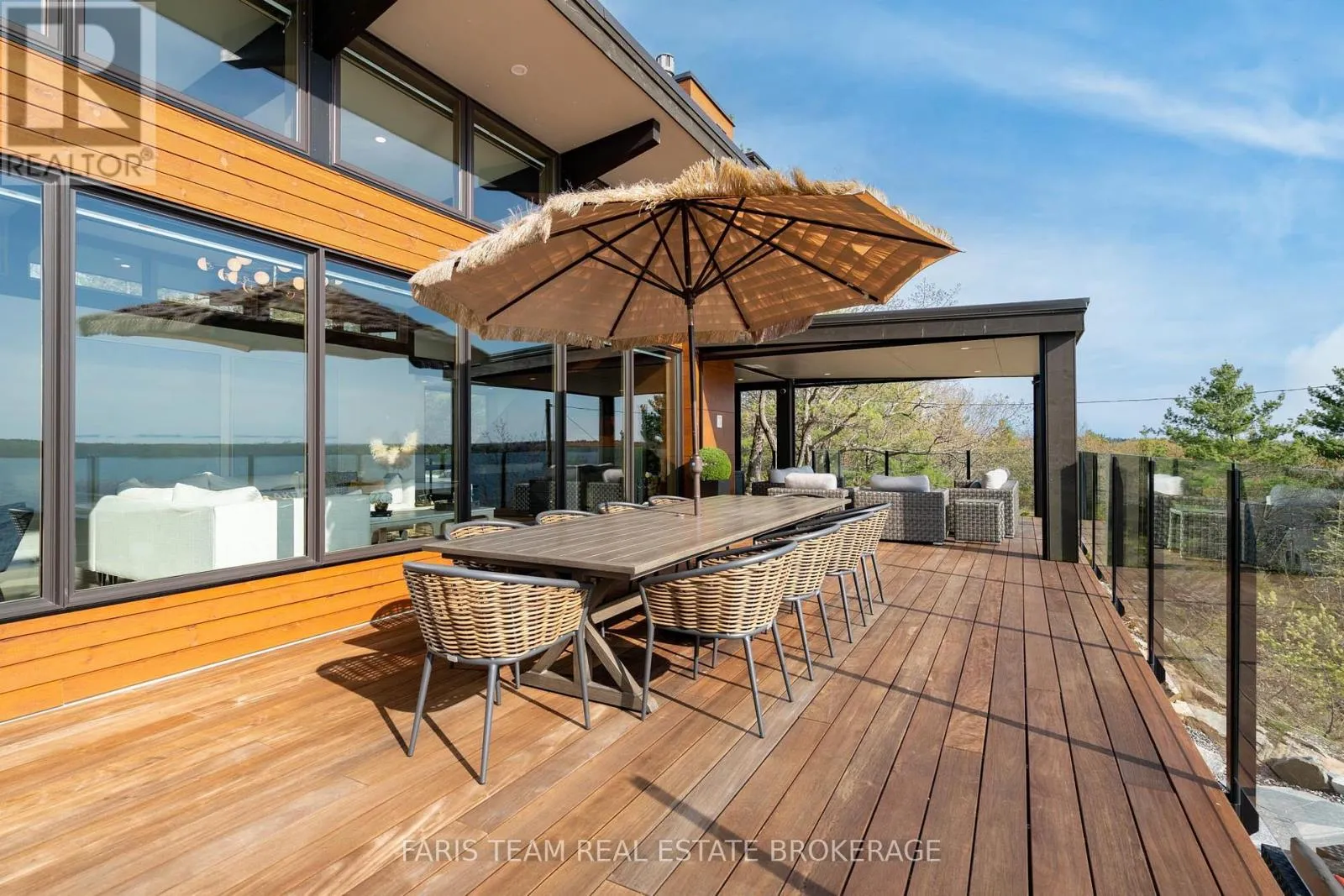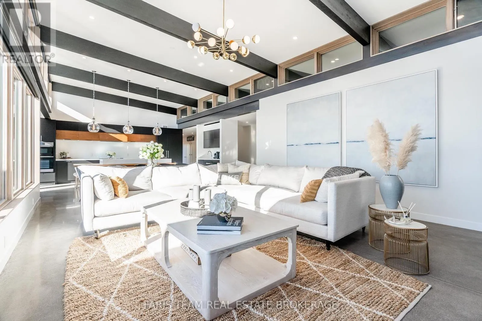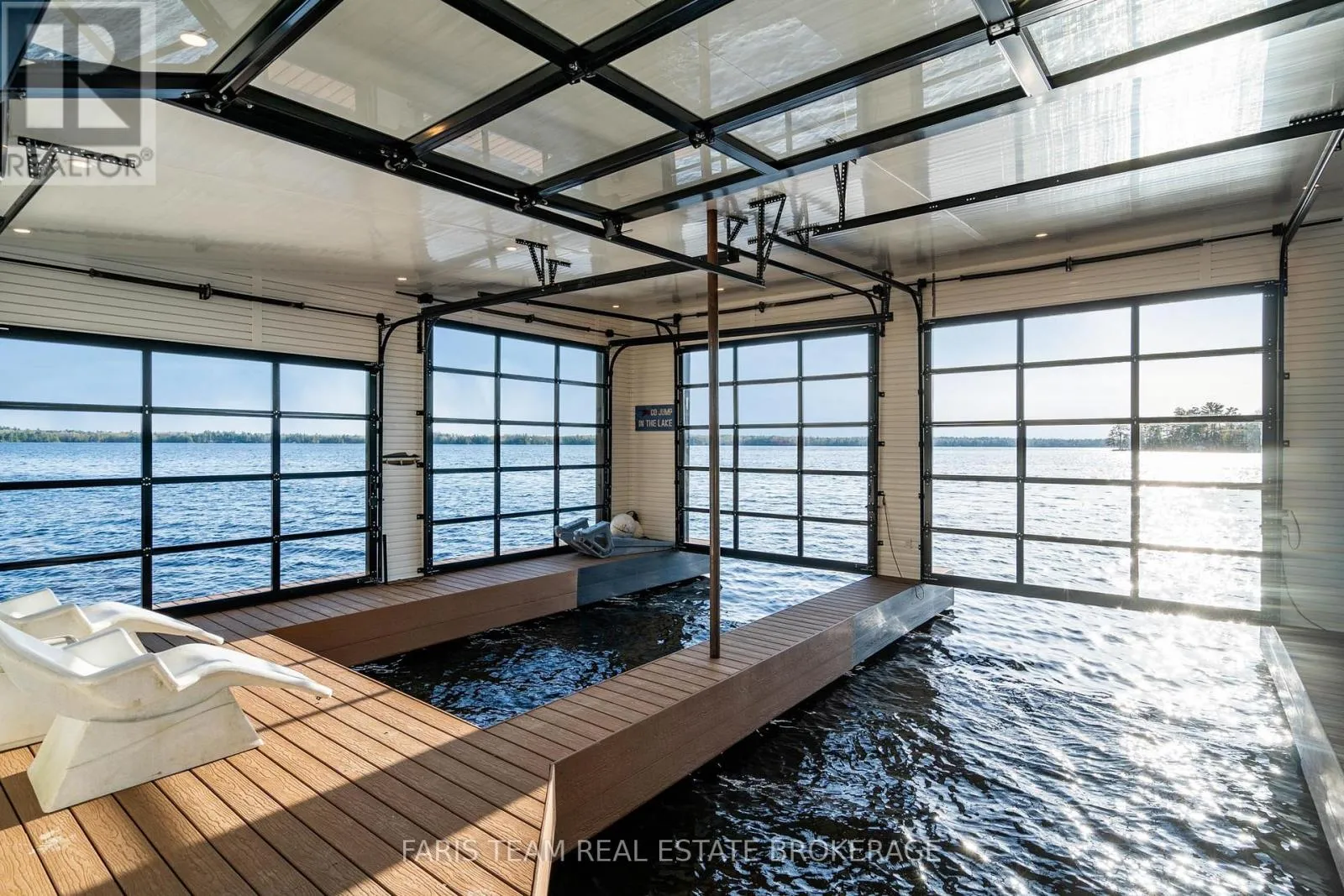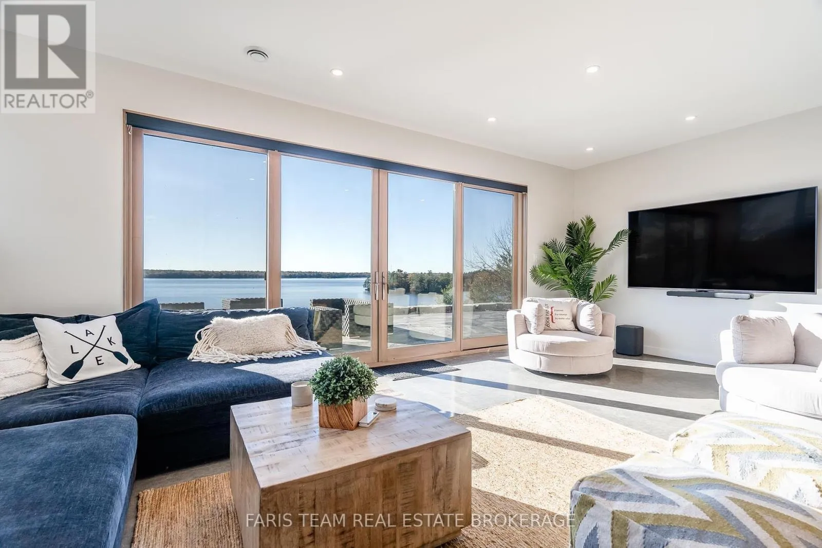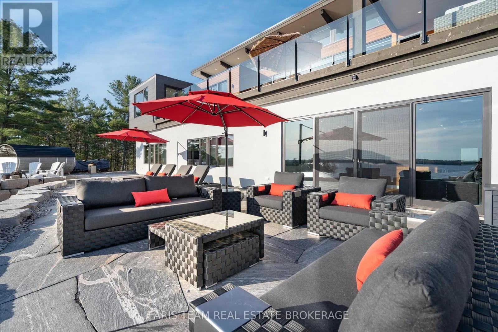 Tower Line Rd/E Shore Rd Top 5 Reasons You Will Love This Home: 1) From the striking polished concrete floors with radiant in-floor heating to the gourmet chefs kitchen and sleek high-end finishes, every inch of this home has been thoughtfully designed with contemporary comfort in mind, soak in the sweeping, unobstructed views that create the perfect backdrop for everyday living 2) With a main level primary suite for ultimate convenience, plus four additional guest bedrooms, a cozy loft, and a walkout recreation room that leads right to the waters edge, there's no shortage of room for family, friends, and creating unforgettable memories 3) Professionally landscaped to perfection, this property boasts a stunning granite patio, built-in water feature, serene sauna, and a charming screened-in Muskoka porch, with thoughtfully hardscaped stone paths guiding you through lush greenery and peaceful gathering spots 4) Set on a highly sought-after lot with an impressive 180' of pristine Gloucester Pool frontage, enjoy a sandy beach area, a private dock, and a two-slip boathouse, ideal for boating enthusiasts, while the heated, insulated, and waterproofed garage is a standout, professionally finished by Garage Living with custom shelving and durable PVC paneling 5) With true LTE high-speed internet and access via a private, four-season road, this home spans 4,037 finished square feet and presents the ultimate four-season escape or full-time luxury residence. 4,037 above grade sq.ft. (id:27476)
