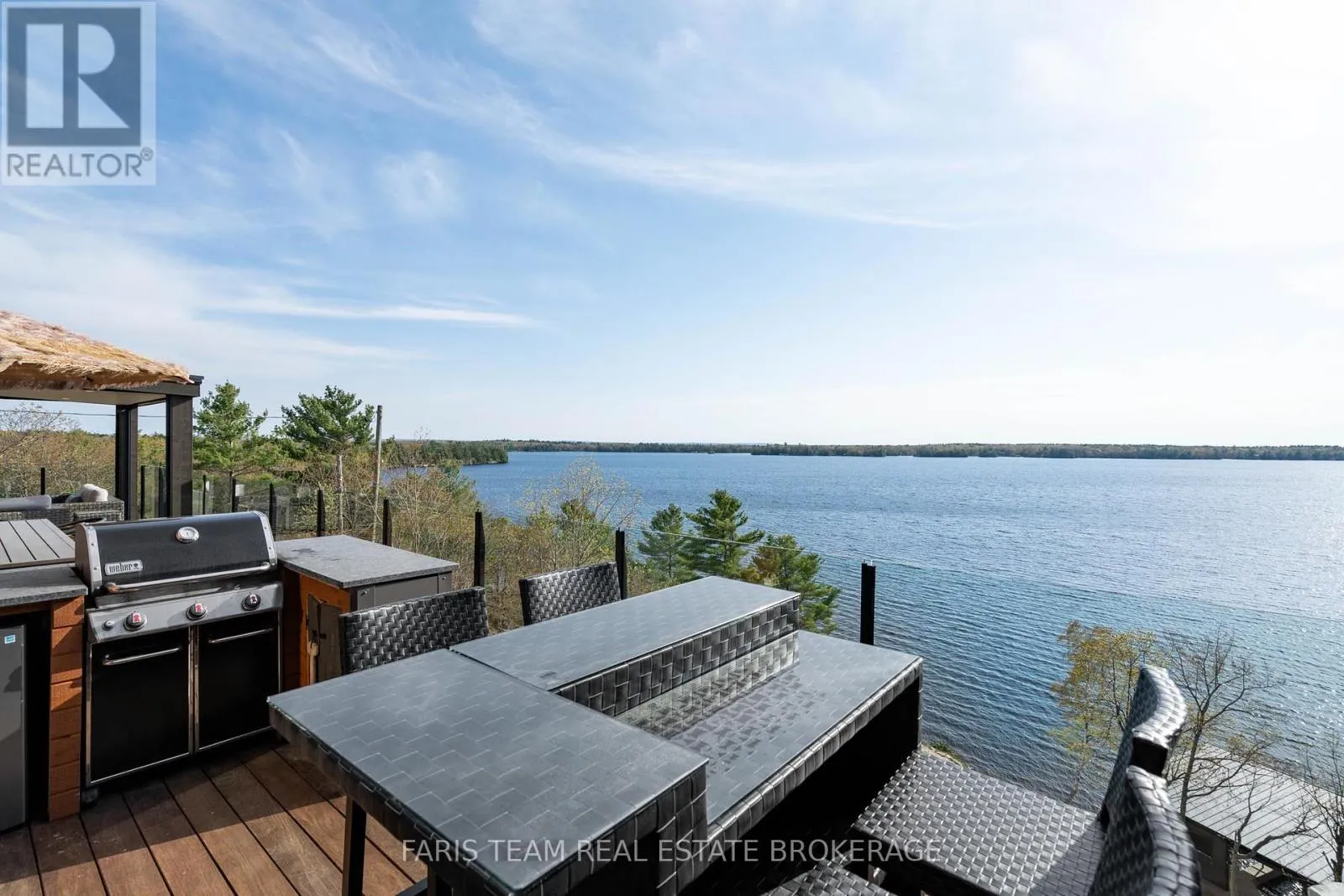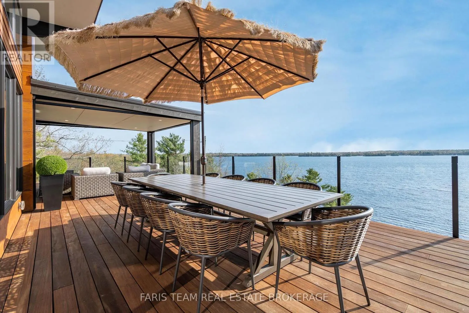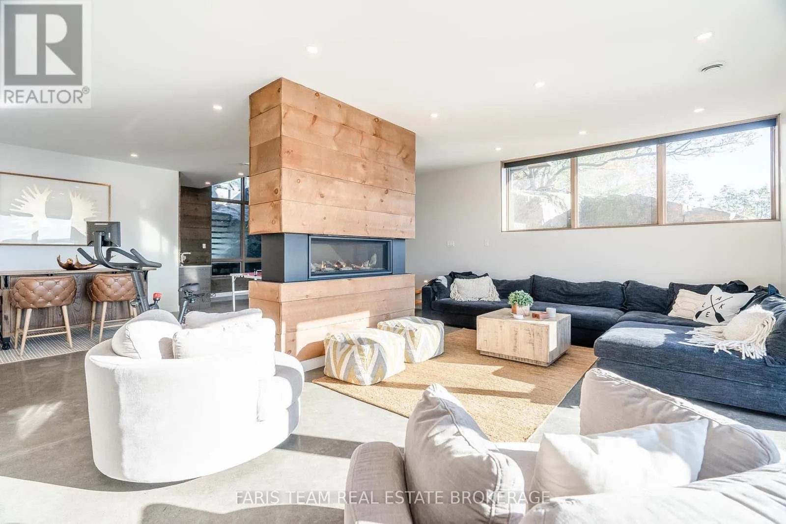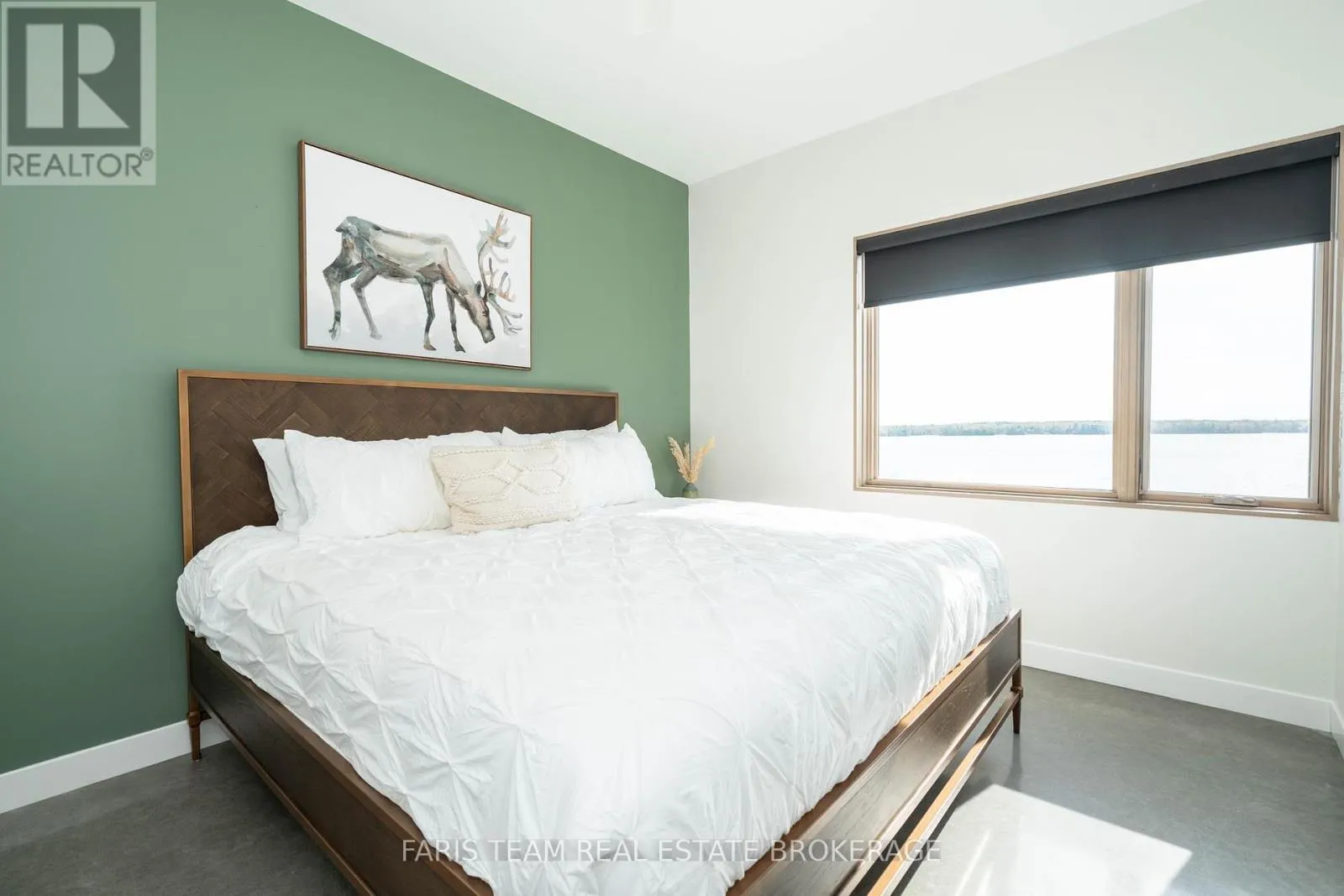 Tower Line Rd/E Shore Rd Top 5 Reasons You Will Love This Home: 1) From the striking polished concrete floors with radiant in-floor heating to the gourmet chefs kitchen and sleek high-end finishes, every inch of this home has been thoughtfully designed with contemporary comfort in mind, soak in the sweeping, unobstructed views that create the perfect backdrop for everyday living 2) With a main level primary suite for ultimate convenience, plus four additional guest bedrooms, a cozy loft, and a walkout recreation room that leads right to the waters edge, there's no shortage of room for family, friends, and creating unforgettable memories 3) Professionally landscaped to perfection, this property boasts a stunning granite patio, built-in water feature, serene sauna, and a charming screened-in Muskoka porch, with thoughtfully hardscaped stone paths guiding you through lush greenery and peaceful gathering spots 4) Set on a highly sought-after lot with an impressive 180' of pristine Gloucester Pool frontage, enjoy a sandy beach area, a private dock, and a two-slip boathouse, ideal for boating enthusiasts, while the heated, insulated, and waterproofed garage is a standout, professionally finished by Garage Living with custom shelving and durable PVC paneling 5) With true LTE high-speed internet and access via a private, four-season road, this home spans 4,037 finished square feet and presents the ultimate four-season escape or full-time luxury residence. 4,037 above grade sq.ft. (id:27476)