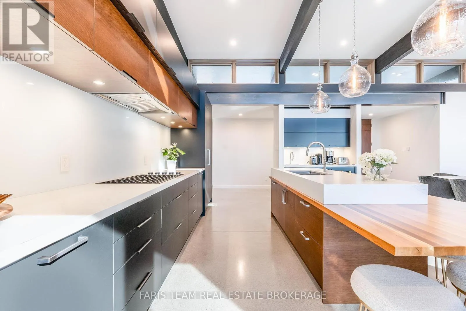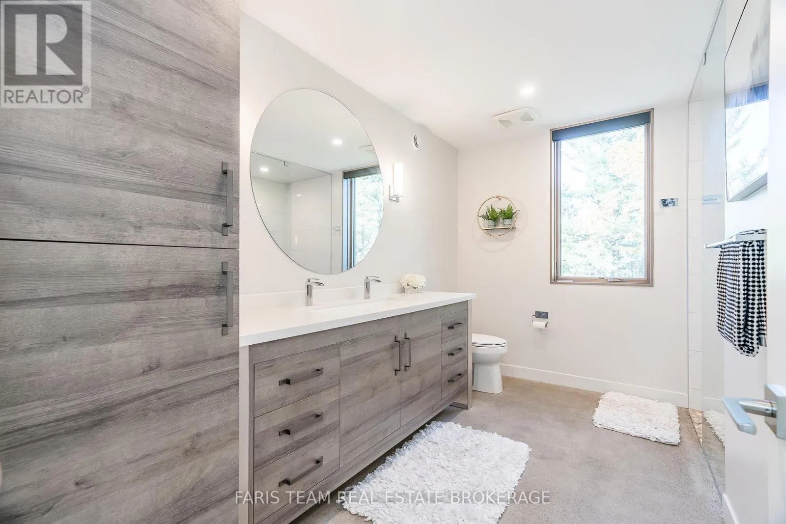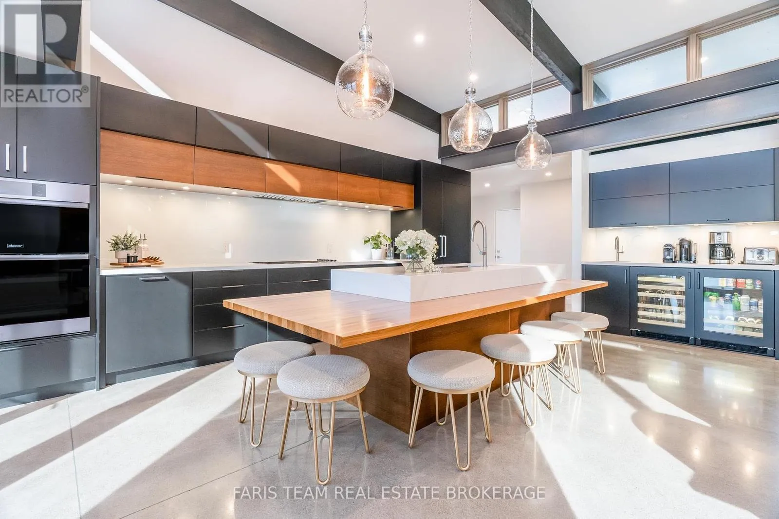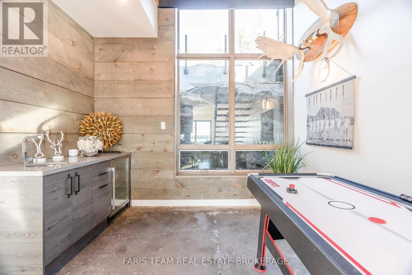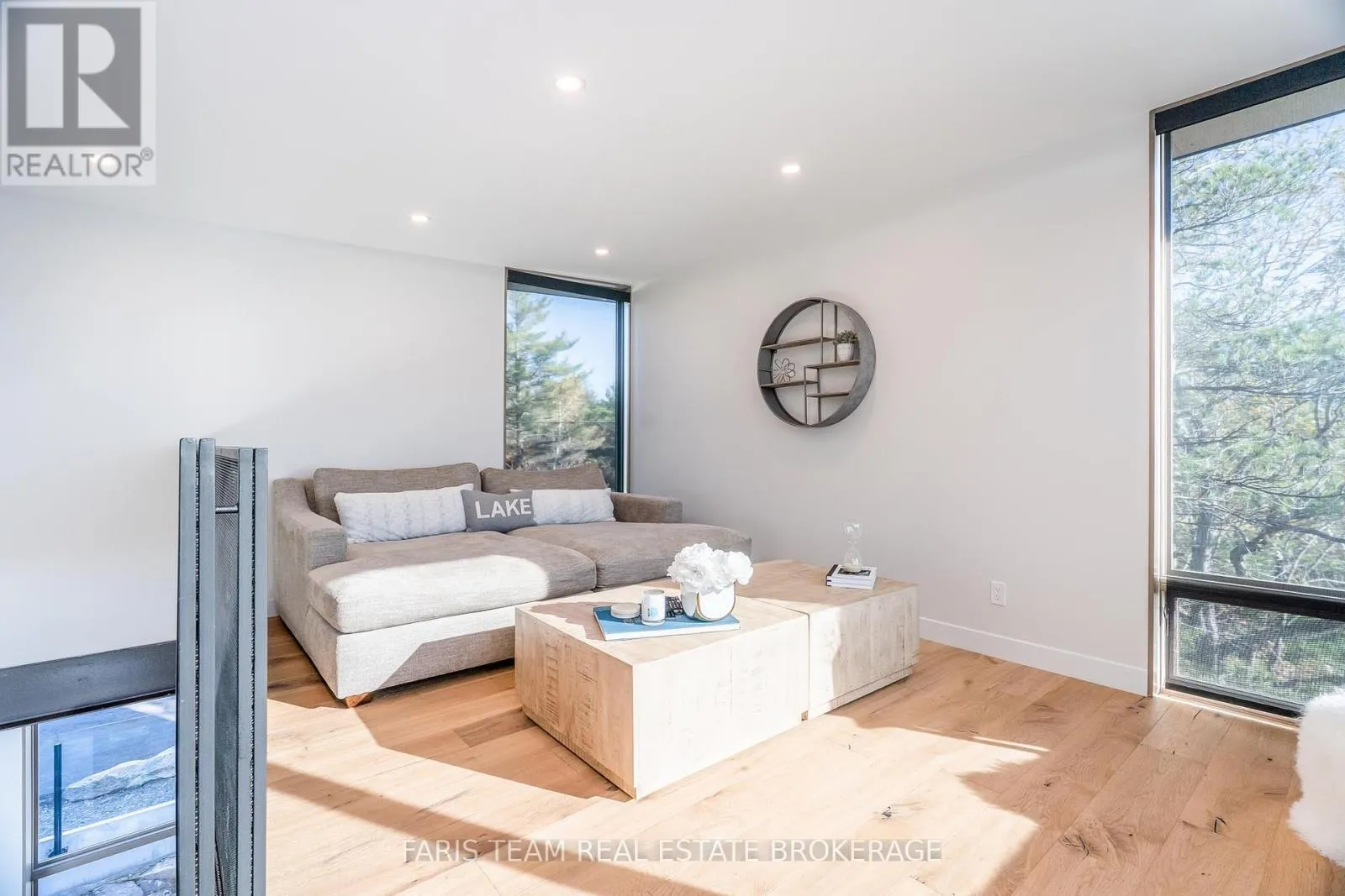 Tower Line Rd/E Shore Rd Top 5 Reasons You Will Love This Home: 1) From the striking polished concrete floors with radiant in-floor heating to the gourmet chefs kitchen and sleek high-end finishes, every inch of this home has been thoughtfully designed with contemporary comfort in mind, soak in the sweeping, unobstructed views that create the perfect backdrop for everyday living 2) With a main level primary suite for ultimate convenience, plus four additional guest bedrooms, a cozy loft, and a walkout recreation room that leads right to the waters edge, there's no shortage of room for family, friends, and creating unforgettable memories 3) Professionally landscaped to perfection, this property boasts a stunning granite patio, built-in water feature, serene sauna, and a charming screened-in Muskoka porch, with thoughtfully hardscaped stone paths guiding you through lush greenery and peaceful gathering spots 4) Set on a highly sought-after lot with an impressive 180' of pristine Gloucester Pool frontage, enjoy a sandy beach area, a private dock, and a two-slip boathouse, ideal for boating enthusiasts, while the heated, insulated, and waterproofed garage is a standout, professionally finished by Garage Living with custom shelving and durable PVC paneling 5) With true LTE high-speed internet and access via a private, four-season road, this home spans 4,037 finished square feet and presents the ultimate four-season escape or full-time luxury residence. 4,037 above grade sq.ft. (id:27476)