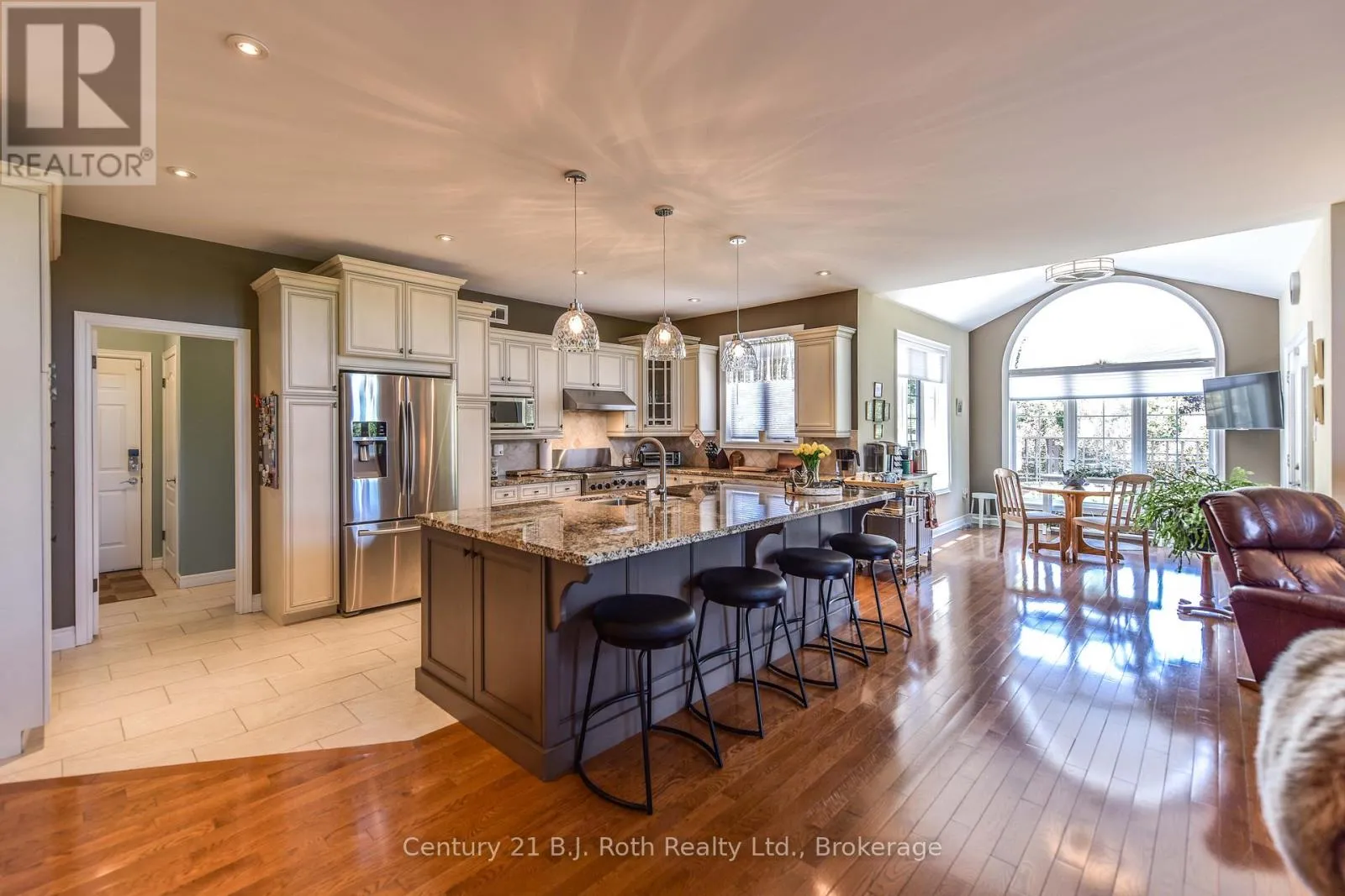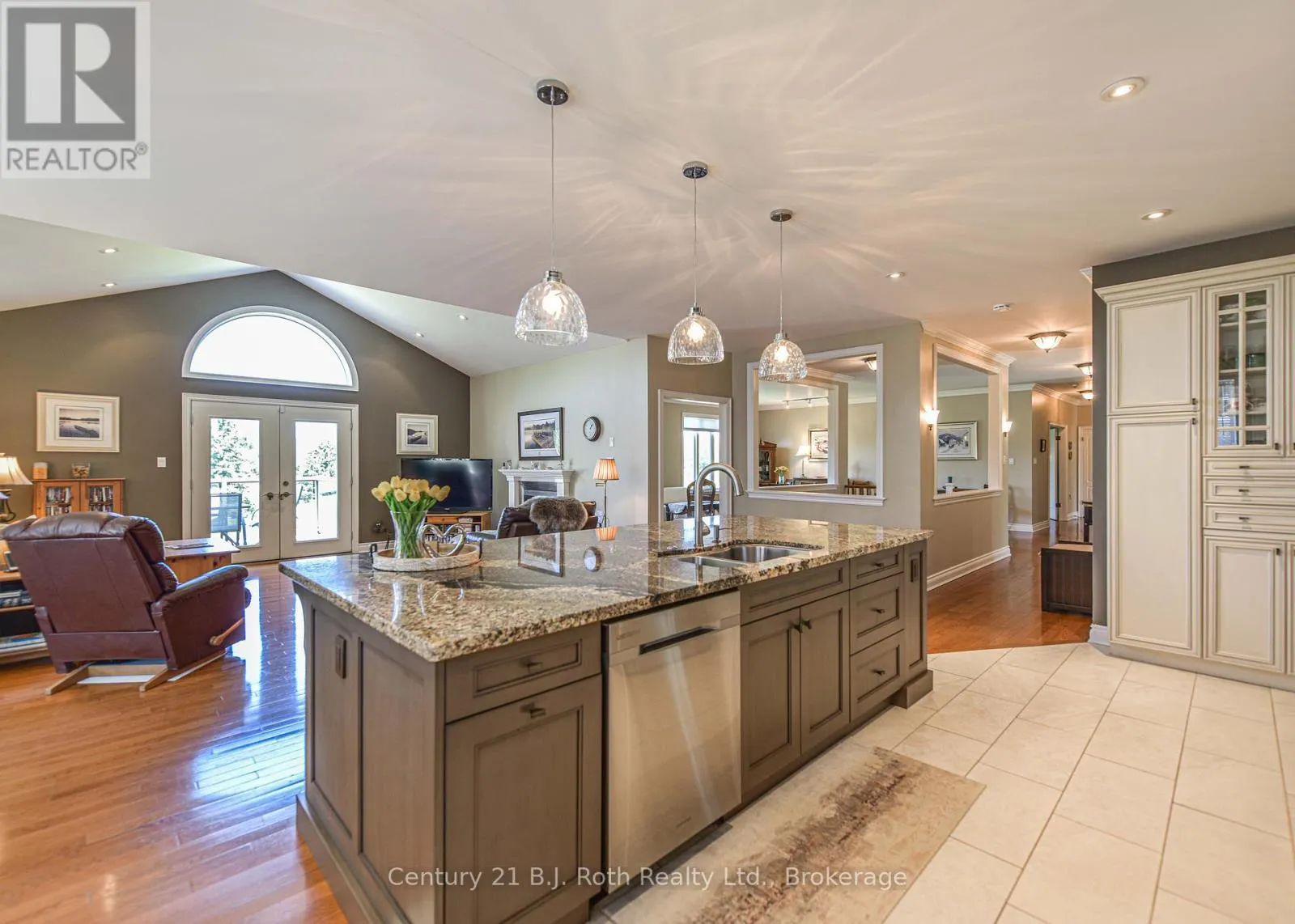 Cross Streets: Hurlwood and Hawk Ridge Cres. ** Directions: WEST Street North left on Hurlwood Lane, right on Hawk Ridge Cres (SOP). Welcome to 1273 Hawk Ridge Cres. this spectacular luxury bungalow is located in the sought after community of Hawk Ridge Estates. This upscale custom built executive home is ideally situated on a magnificent lot with breathe taking views of the golf course. The interior of the home is sure to suit the most prestigious tastes with its cathedral ceilings, gourmet eat-in kitchen, large family areas, main floor laundry room, spacious bedrooms, large windows and open concept design. The primary bedroom with its double entry door, hardwood floors and a large picture window has a beautiful 5-piece ensuite with double sinks, a stand-alone tub and heated ceramic floors. Step down to the lower level from a central staircase into a grand family area with a beautiful fireplace. For those entertaining and wine enthusiast, there is a walk-in wine cooler and wet bar. The in-law capable apartment has its own heating and cooling system, large bedrooms, a media room and a spacious kitchenette with dining area. Both levels have double French doors leading to the backyard overlooking 2 ponds and the golf course. The property is in Orillia's backyard with easy access to hospitals, shopping, entertainment, ski resorts, trails, rec. centres, parks, boating, festivals, and two lakes (Couchiching and Simcoe). The fast growing city of Orillia offers a host of public, private and French immersion schools along with Lakehead University This move-in ready home is the perfect blend of comfort, convenience, and lifestyle. (id:27476)