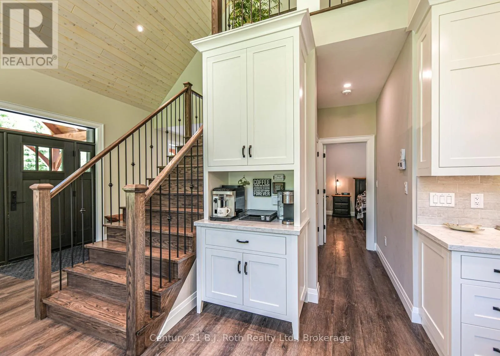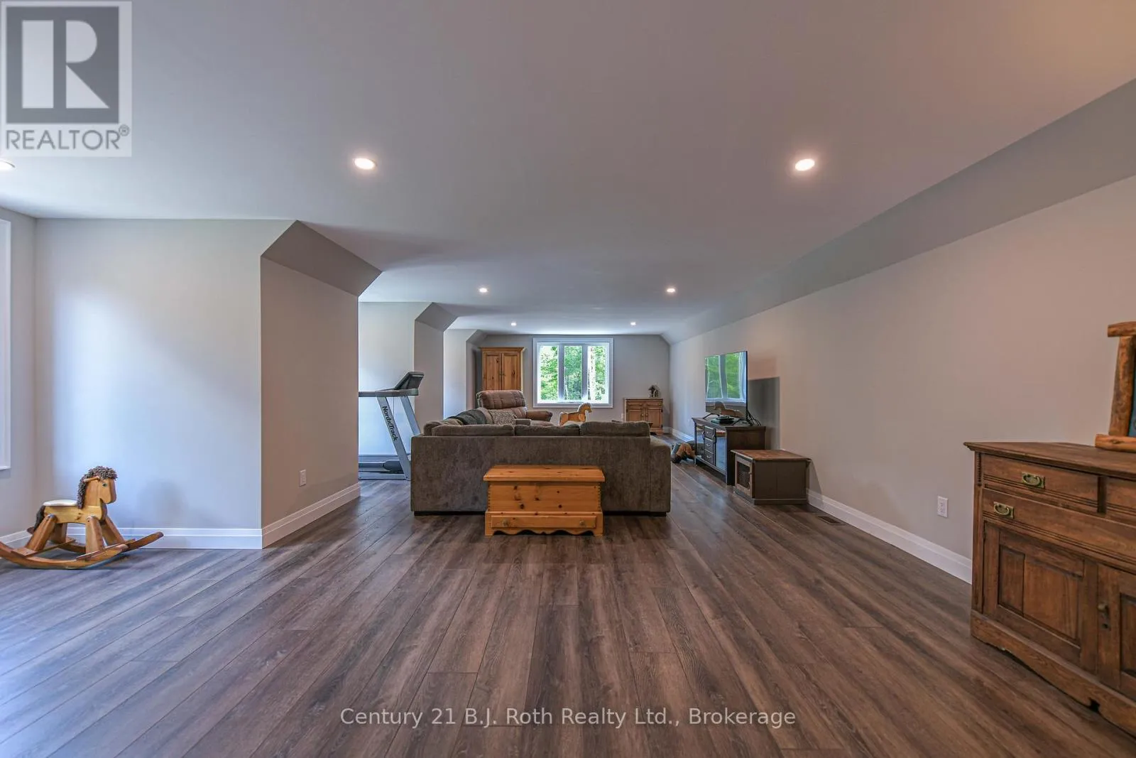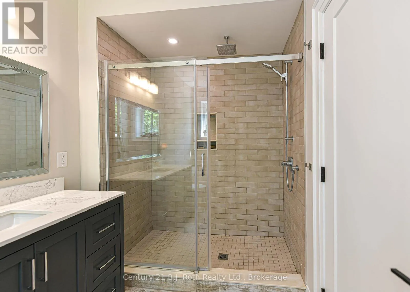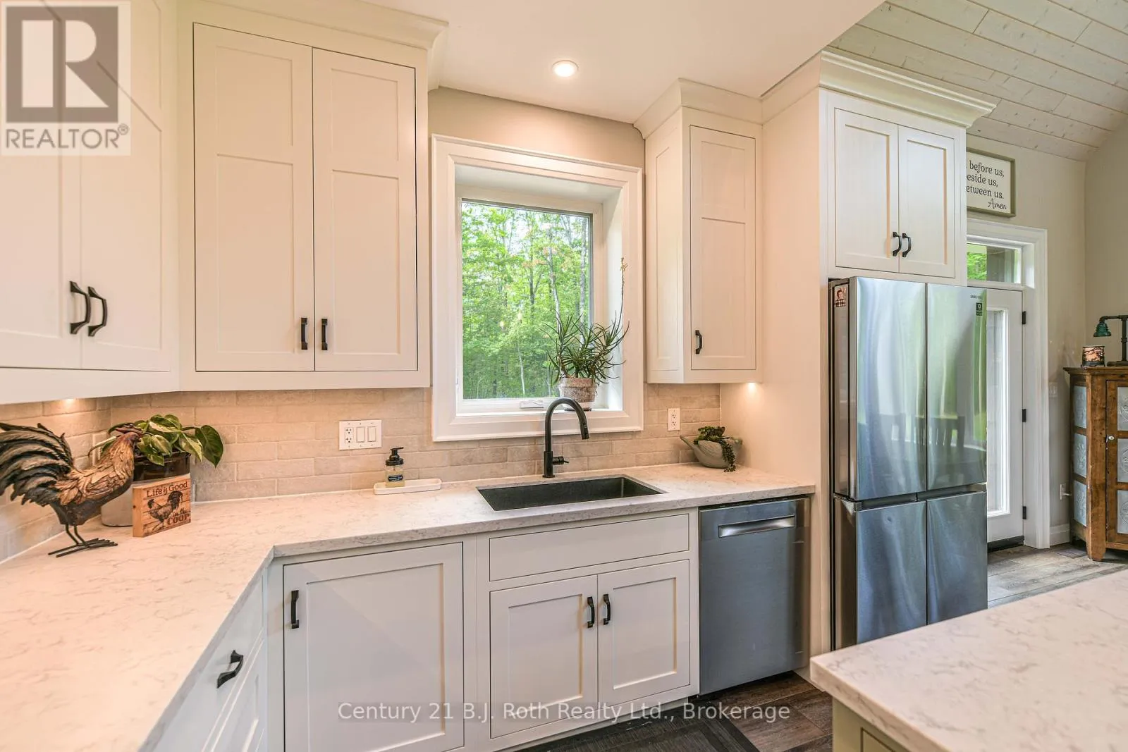 Cross Streets: Fairgrounds Road/Warminster Sideroad. ** Directions: FAIRGROUNDS ROAD BETWEEN WARMINSTER SR & THORBURN. One-of-a-kind modern Craftsman, nestled among the trees, offering ultimate privacy on a 50-acre property. Welcoming covered entry w/rich stonework & Douglas Fir Timber frame accents sets the tone for the exceptional living space within. Step inside to the Great rm. w/natural light, soaring ceilings & open-concept layout, perfect for both family life & entertaining. Custom solid maple Kitchen cabinetry w/Quartz countertops & centre island. The kitchen flows seamlessly into the dining area & great room, complete w/a cozy fireplace & expansive windows overlooking the surrounding forest. Walkout to deck & above-ground pool with 54" walls. Main floor Primary suite w/walkout, Ensuite w/heated floors, soaker tub, sep. tile shower, & quartz-topped vanity plus Walk-in closet. Main flr. 2pc powder rm, laundry, & a spacious mudroom w/walkout to a covered Douglas Fir and Cedar deck, plus direct access to the garage. Upstairs in the main part of the home, you'll find 2 additional Bdrms., a 4 pc. bath, dormer-lit living spaces, & a versatile loft area, ideal for a home office or studio. Above the garage, a second upper living space provides a large family room, perfect for gatherings. ICF-constructed 3-car garage offers ample parking & storage w/9 x 8 doors, side-mount openers w/deadbolt locks. While roughed in for in-floor heating, the incoming heat line from the outdoor wood furnace keeps the garage warm during the winter months. The garage also includes a man door to the side yard & direct access to both the main floor & basement of the home. Whether relaxing on the front porch or covered back deck, hosting gatherings, exploring the trails, or simply enjoying the quiet surroundings, this property delivers the perfect balance of elegance, comfort, and rustic charm in a serene country retreat. 200-amp service, LED pot lights, 22KW Generac whole-home generator. Upgraded BIBS insulation. Outdoor wood furnace, plus propane forced-air heating & central air. (id:27476)