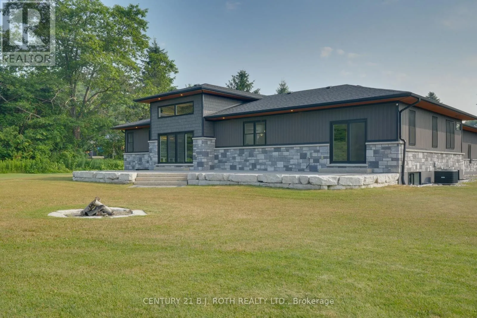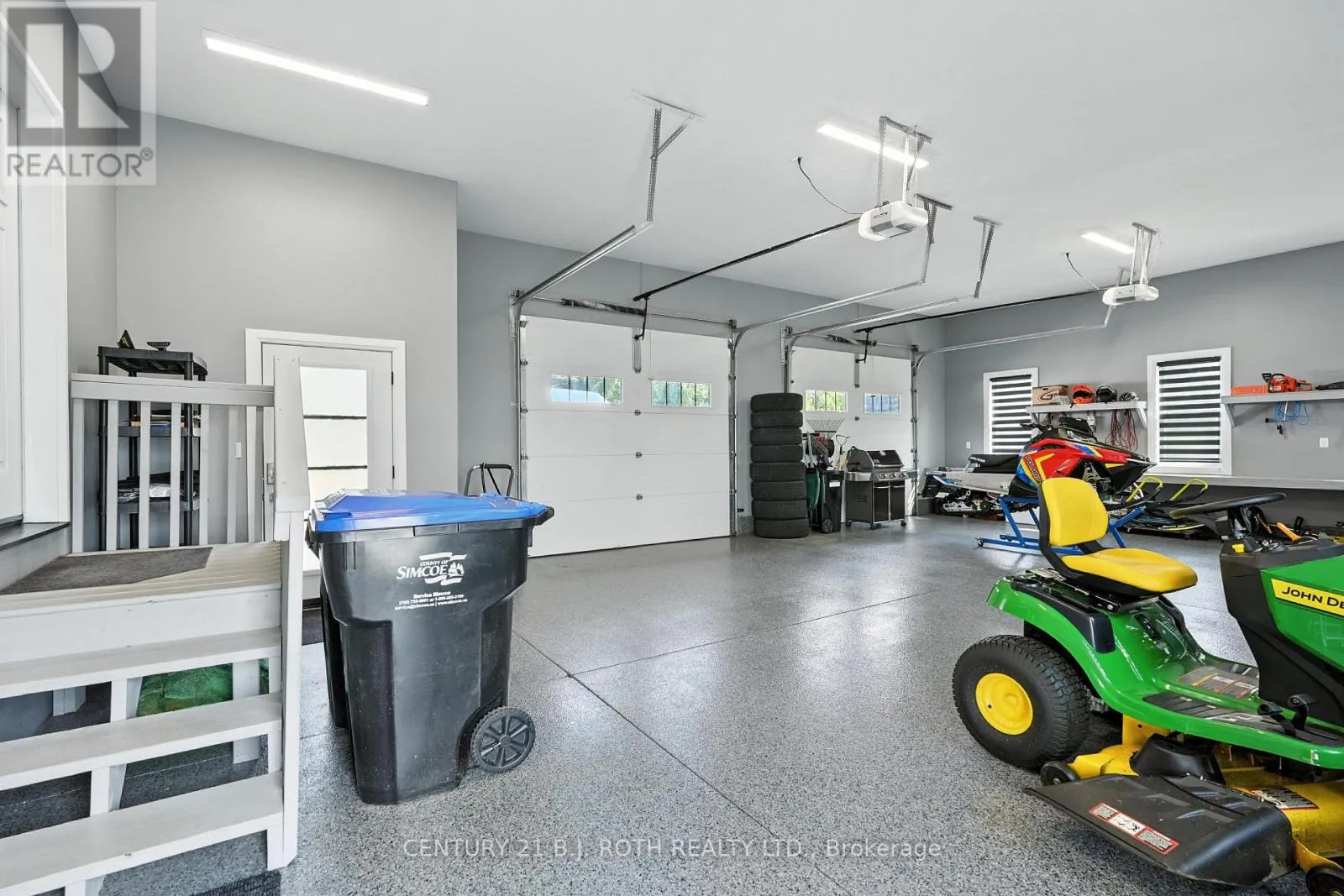 Hwy 11 to Brennan Line A Masterpiece of Modern Elegance in a Tranquil Country Setting. Prepare to be captivated by this custom-built bungalow a residence that redefines luxury living. Meticulously crafted with premium upgrades throughout, this home offers an exquisite blend of opulence, functionality, and serene countryside charm, all just minutes from Orillia. Step inside the expansive open concept main level, where natural light floods through oversized windows, illuminating every curated detail. The heart of the home an entertainers dream kitchen features: massive quartz-topped island, full wet bar, generous walk-in pantry and Custom cabinetry with designer lighting. Flowing seamlessly from the kitchen is the great room, a dramatic space boasting 14-ft beamed and shiplap ceilings, a striking fireplace, and custom LED ambient lighting. Step through oversized glass doors to a grand stone patio, ideal for alfresco dining and sophisticated outdoor entertaining. The primary suite is your personal sanctuary, complete with: spa inspired 5-piece ensuite featuring a freestanding soaker tub, luxurious walk-in shower, and dual vanities, fully outfitted walk-in closet with custom storage solutions. Two additional generously sized bedrooms share a designer 5-piece bath, while the main floor is completed by a stylish mudroom, laundry room, and wide plank engineered hardwood flooring throughout. Descend to the fully finished ICF basement, where possibilities abound. This level offers: An additional bedroom and full bathroom, A state of the art synthetic ice hockey rink (a truly rare and extraordinary feature in a private residence), Expansive space for a home theatre, gym, or recreation lounge. The oversized, heated 3-car garage is equally impressive, fully insulated with epoxy coated floors. Set on a peaceful lot backing onto open farmland, the property offers direct access to the OFSC snowmobile trail, and is ideally situated just a short drive to local beaches, shopping, dining, and more. (id:27476)