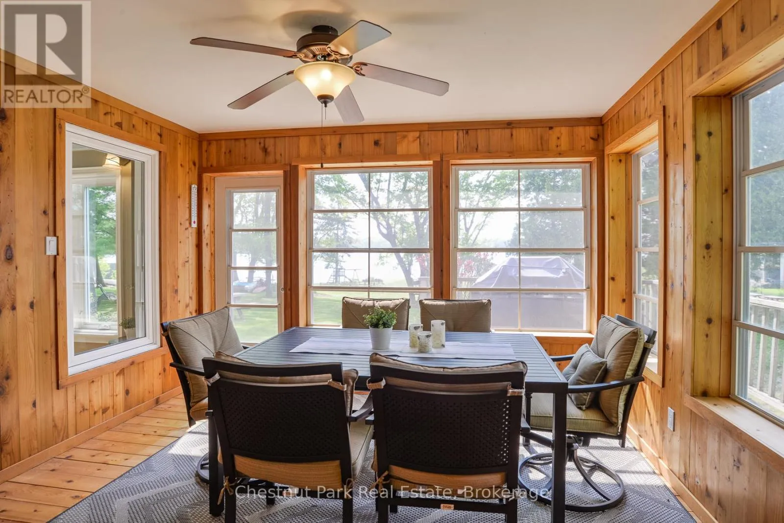 Cross Streets: Peninsula Point Road & Lauderdale Point Crescent. ** Directions: Highway #11 South of Gravenhurst to Canning Road exit - follow to the water, over blue swing bridge & immediate right on Peninsula Point Road - stay left & follow to end - #3547 Lauderdale Point Crescent on left - signs on property. HIGHLY COVETED *SPARROW LAKE* SUNSET SHORE LAKEHOUSE with easy year round, paved municipal road access. This custom built year round home or 4-seasons cottage offers over 3,100 sq.ft. of living space with not 1 but 2 MAIN FLOOR BEDROOMS & 2 ENSUITE BATHROOMS plus an additional private lofted guest suite to accommodate family & friends. Great room features soaring cathedral ceilings, a stunning stone fireplace & magnificent window wall to the lake where you will enjoy the most incredible sunsets ALL YEAR LONG. Discerning buyers, get out your check list & prepare to be impressed - this property is well appointed throughout. ENJOY LIFE, PLAY EVERY DAY or WORK IF YOU MUST from the private main floor office with plenty of room for 2 desks. Ideal for entertaining, the newer chef's DREAM KITCHEN comes complete with a breakfast counter, large centre island & an eat-in area. Plus there is a second dining room & living room which flow effortlessly out to the cozy Muskoka room. Side entry & decking makes BBQing a breeze! Gracing the bungalow level are the master suite with 5-piece ensuite, massive walk-in closet & private lakeside deck, main floor laundry & pantry, plus you will absolutely love the oversized second main floor bedroom with ensuite privilege (previously used as an artisan's studio so it even has its own separate entrance). Triple detached garage provides 2 bays for vehicles, oodles of storage room, plus an extended full workshop with 2 man doors. The upper loft offers 11'x32' of flex space for games or storage. With 2 shore docks you can use one just for lakeside yoga if you'd like! A rare single wet slip boathouse, sandy shore & play area complete this incredible package. Level lot is ideal for all ages & ranges of mobility. Large firepit at the shore & lots of room for a pool w lake views should a buyer wish to explore. Relax, swim, fish, or boat to Lake Couchiching & Lake Simcoe in one direction & Georgian Bay in the other (go around the world if you want). (id:27476)