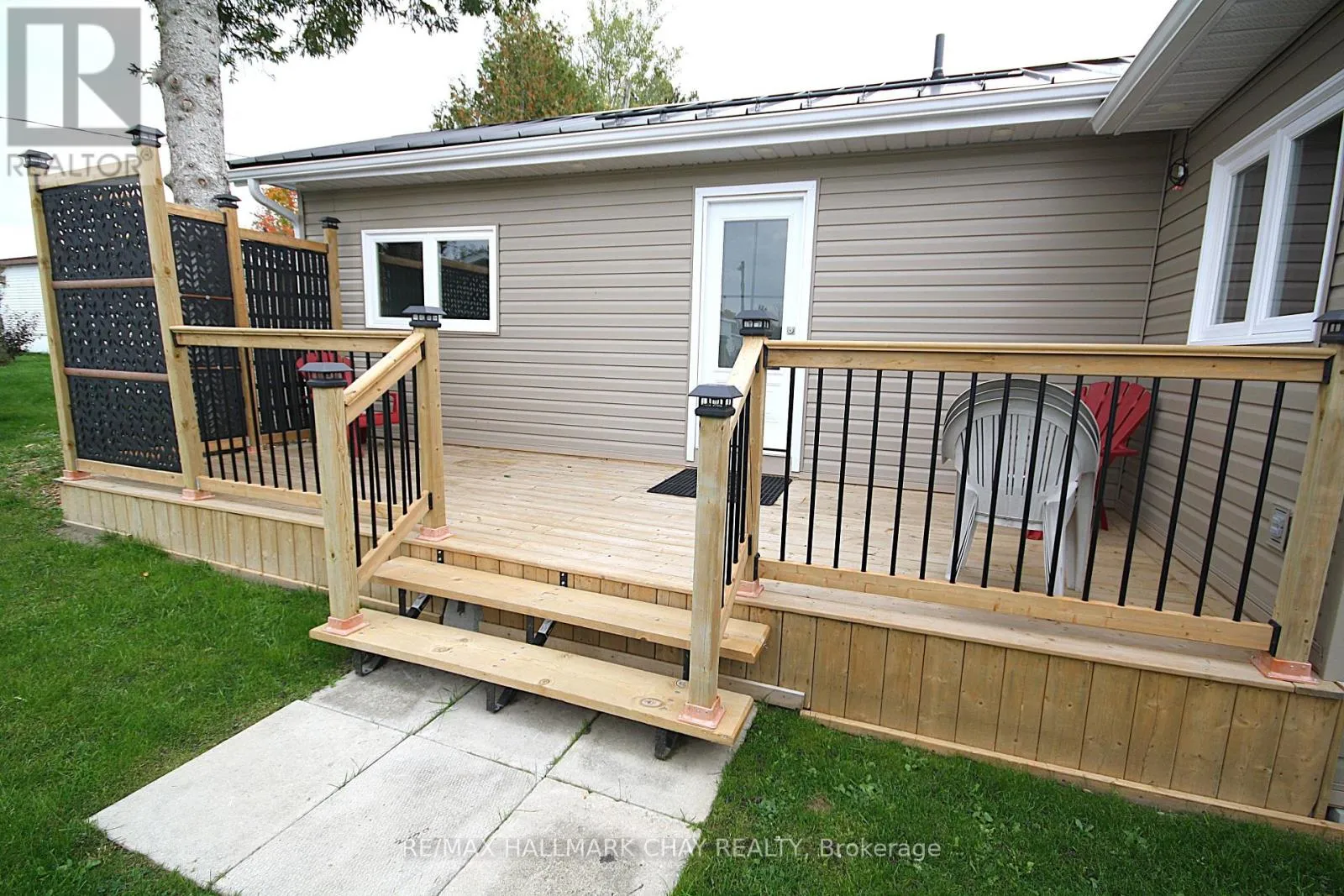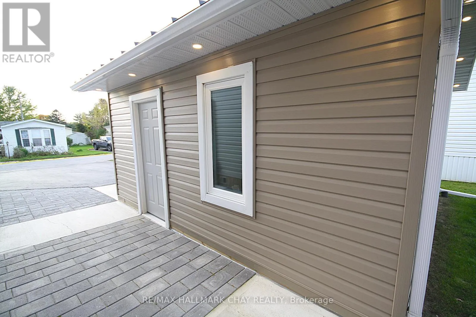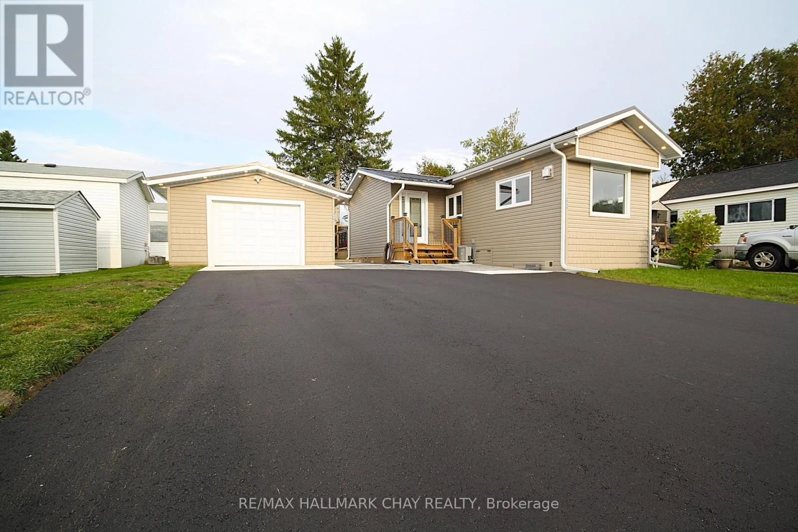 Cross Streets: Carlyon Line and J.V. Parkway. ** Directions: Carlyon Line to J.V. Parkway To Elaine to Hilltop to Ash. WOW! NEW, NEW, & MORE NEW! Completely renovated or rebuilt inside and out. This move in ready 2 bedroom 2 bathroom home has been recreated just for you to enjoy for many years to come. Excellent layout provides a walkout to large private deck off primary bedroom, bonus office with closet and attached 1/2 bath, large foyer with coat closet, covered porch, open concept kitchen with cozy gas fireplace. Too many upgrades to list...featuring all NEW in 2024/25; steel roofs on all 3 buildings, siding, soffit, fascia, troughs, exterior lighting, huge new asphalt driveway, paver stone, all new windows, and new exterior doors, new decks, upgraded insulation, new drywall, all new flooring, totally new bathroom, 5 brand new appliances, new kitchen, new central air unit, all interior trim & doors, and paint, new pot lighting and light fixtures, and much much more! Walk out to large private deck. Pride of ownership and attention to details abound. Garage was taken down to foundation and rebuilt with new framing, insulated walls and doors, windows, garage door opener, and hydro. Amazing opportunity. Located close to Orillia and major amenities. Land lease fee includes road maintenance, garbage removal. Monthly fee inclusive of Taxes 30.00 , Water 33.00, and lease fee = 538.00 total. (id:27476)