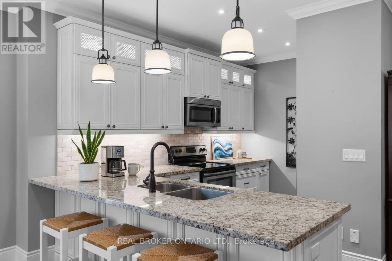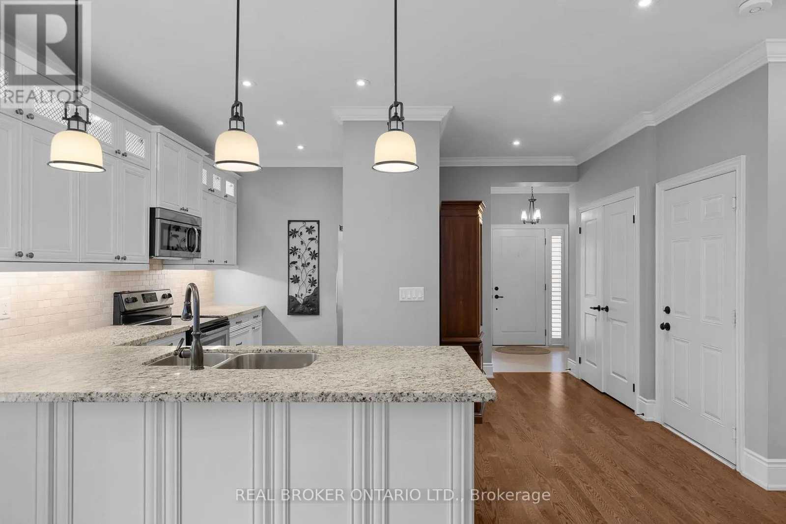 Cross Streets: Summerhill Way. ** Directions: Beach Club to driveway. Step inside this model-home-designed bungalow loft with hardwood floors, granite kitchen counters, pot lights, and warm wall sconces that bring the space to life. The bright living area opens to a covered front porch - a peaceful spot to enjoy morning coffee or the glow of the lake in the evening.The home features 2 bedrooms and 3 full bathrooms, including a primary ensuite with an upgraded multi-head shower. Accessibility is built in with a chairlift on the stairs, and peace of mind comes standard with a whole-home generator.Downstairs, the partially finished basement adds a cozy rec room and full bath, plus over 700 sq ft of unfinished space ready for future bedrooms, a gym, or hobby area.Outside, everything's taken care of - grass cutting, snow removal, and gated security are all included. Residents also enjoy over 300 ft of private sandy shoreline, a beach house with washroom, lounge, and TV for community gatherings, and the kind of neighbourly energy that makes this spot special.Enjoy the lake without the upkeep - this is true lock-and-leave living at its best.Offered at $749,000. Book your private showing today. (id:27476)