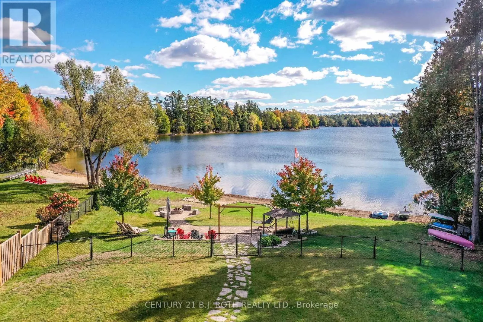 Cross Streets: S Sparrow Lake Rd & Lake St George Blvd. ** Directions: Hwy 11 to Sparrow Lake Rd R on Lake St George Blvd. What an incredible setting this beautiful piece of property has on Lake St George only minutes to hwy & 12 mins to top end of Orillia & all conveniences! 130 ft of sandy beach for your enjoyment, the lake is perfect for swimming, or water sports including fishing! Private gated entrance into this just under 1 acre well treed & private property, with an over 3200sq ft raised bungalow with walk up to 2 car garage with 10' garage doors. Warm open concept on the main floor living area overlooking the lake with all day sun & stunning sunsets! Tastefully updated kitchen with quartz countertop & large focal island. Large primary bedroom with a lake view & door to deck includes a large walk in closet & 4 pc bathroom. Your soon to be favourite 14 X 19ft screened in muskoka room is off of the dining area & composite decking finishes off the extensive outside deck. Bonus separate coach house, w/double garage & separate quarters for inlaw or company, which includes 1 bedroom, quaint open concept living area open to full kitchen & bathroom. Lots of updates throughout including all bathrooms, laminate flooring, Mn floor Laundry room w/storage, Furnace & A/C, Filtration system, a detailed list is available upon request. Make your dream come true......living on a lake, watching the beauty of the seasons transform in front of you! Click the YouTube video to see it up close! (id:27476)