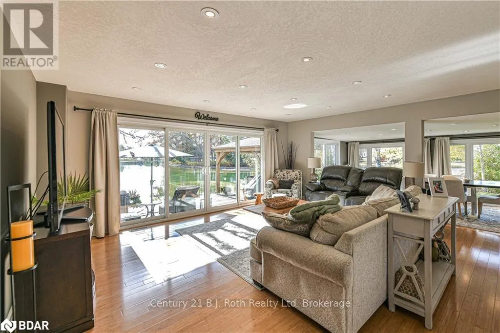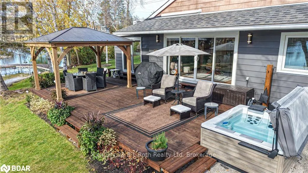 HWY 11 N TO COUNTY RD 169 TO PROPERTY ON RHS Stunning Green River Oasis in Sought-After Washago Welcome to your own private retreat on the beautiful Green River. This stunning 3-bedroom, 2-bath oasis offers 169 feet of pristine riverfront, perfectly positioned to capture the peace and beauty of waterfront living with DIRECT ACCESS TO LAKE COUCHICHING! Relax and unwind in your riverside hot tub, or host family and friends in the charming bunkie overlooking the water. Inside, the home features an inviting open-concept layout with warm natural light, a spacious kitchen and dining area, and serene views from nearly every room. Step out onto the expansive deck and enjoy your morning coffee while listening to the gentle flow of the river.Whether you're looking for a full-time residence or a weekend getaway, this property blends the best of cottage living with modern comfort. Located just seconds from Washago's vibrant village amenities and only a short drive to Orillia, this property truly offers the perfect balance of privacy and convenience.This rare Green River gem is ready to welcome its next owners. Come experience the tranquility and lifestyle this Washago retreat has to offer. (id:27476)