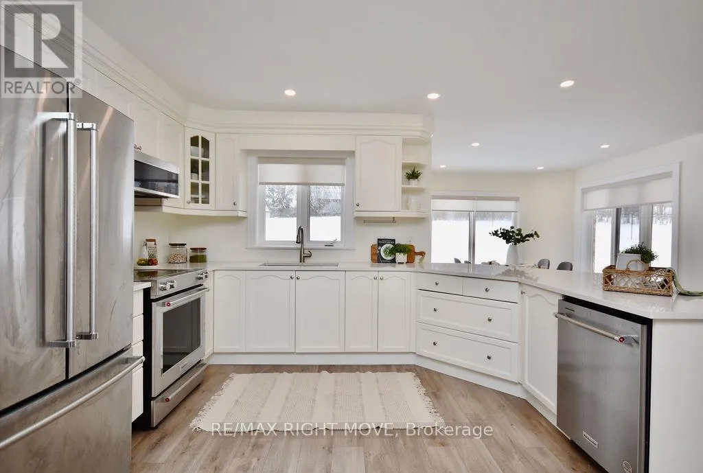 Cross Streets: Hurlwood and Hawk Ridge Cres. ** Directions: Highway 12 To Burnside Line to Hurlwood to Hawk Ridge Crescent. Fully updated bungalow in the Hawk Ridge Golf Community. Sitting on a 1.7 acre lot that's fully fenced, this home offers a great sized yard for the family and plenty of space between neighbours. Located just outside Orillia it combines a rural setting with city amenities. The home was completely renovated in 2022/2023 with over $300k spent in upgrades; including floors, trim, paint, appliances, bathrooms, stairs and more. Featuring an open-concept design, 4 bedrooms, 3 baths, and a bonus home theatre room in the basement, its ideal for both family living or retirement. The paved driveway fits 10+ vehicles, with RV parking (id:27476)