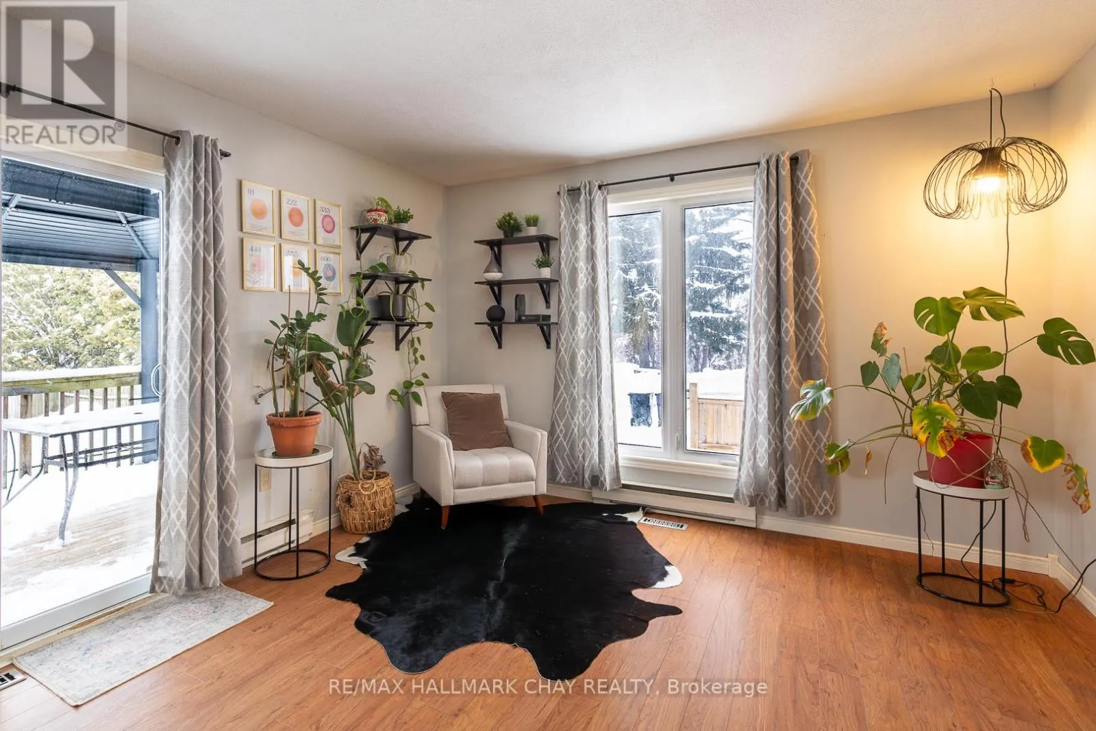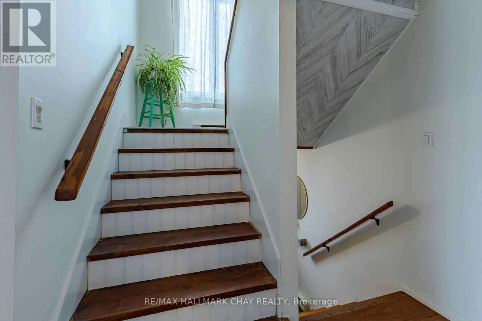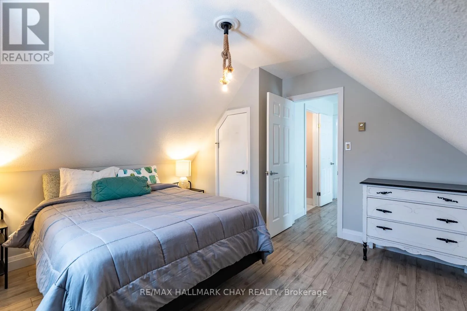 Cross Streets: Hwy 11 & Beckett Place. ** Directions: Hwy 11 North to Beckett Place. CALLING ALL FIRST TIME HOME BUYERS AND RETIREES! This cute 1 1/2 storey home deserves your attention! Situated at the gateway to Cottage Country and the North for all of your recreation activities, along with a perfect sense of Community and Neighbourhood socials, you will be certain to feel welcome and enjoy "Home". Short walks to beach access to beautiful Lake Couchiching beckon you for morning strolls or evening sunsets, this is a lifestyle that is affordable. Lovingly cared for home with large living area flowing into an Eat-In Kitchen that is perfect for gatherings. Two generous bedrooms upstairs and bathroom, primary bedroom has water views to wake up to! Lower level has finished area and can easily be converted to 3rd bedroom. Walkout to deck from living area, fenced yard, fire pit, spotless home, new A/C in 2021, new Hot Water Tank (rental) 2026, this is a lifestyle that you don't want to miss out on! Optional $30 annual fee to Cumberland Beach & District Ratepayers Association provides you with all of the private beach and park access. Give your REALTOR a call today! (id:27476)
