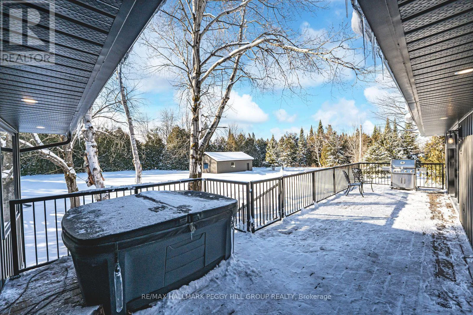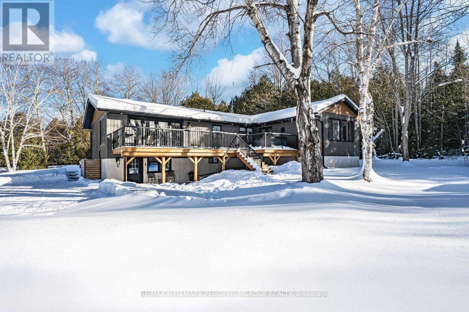 Cross Streets: Thorburn Rd/Fairgrounds Rd. ** Directions: HWY 11/ Left on West Street N/Burnside Line/Thorburn Rd/Fairgrounds Rd. SECLUDED COUNTRY BUNGALOW ON OVER 2 ACRES WITH UPSCALE FINISHES, HOT TUB, 4-CAR GARAGE & MOVE-IN-READY LUXURY! Think of the country home you keep saving in your Pinterest inspiration folder, a bungalow on over 2 acres of private countryside with a turnkey interior of designer finishes and a backyard made for entertaining and unwinding with tree-lined views. Arrive along a long private drive to striking curb appeal, where rich wood beams and black-trimmed windows frame a covered front porch set against board-and-batten style vinyl siding, with a detached 4-car garage or shop echoing the same modern look for vehicles or hobby space. Extensively renovated, the open concept layout offers over 2,800 finished sq ft with luxury vinyl flooring, pot lights, crown moulding, and soft neutral paint tones. The kitchen offers white cabinetry, quartz countertops, open wood shelving, stainless steel appliances, and a wood-toned island with breakfast bar seating that flows into a bright dining area framed by four-panel garden doors opening to the elevated back deck. The living room centres around a propane fireplace in a floor-to-ceiling stone surround with built-in cabinetry and open shelving. The vaulted primary bedroom stands out with a wood beam accented by pot lights, its own fireplace in a stone surround, generous windows, a luxurious ensuite, and excellent storage, including two built-in wardrobe systems, plus a private walkout that places the hot tub only steps away. The finished walkout basement extends the living space with a recreation room, full bathroom, two additional bedrooms, and a laundry room finished with live-edge style counters and a subway tile backsplash. Packed with high-end upgrades, a stylish turnkey interior, an oversized garage, and real acreage privacy, this is the kind of country #HomeToStay that leaves you wondering what more you could want. (id:27476)