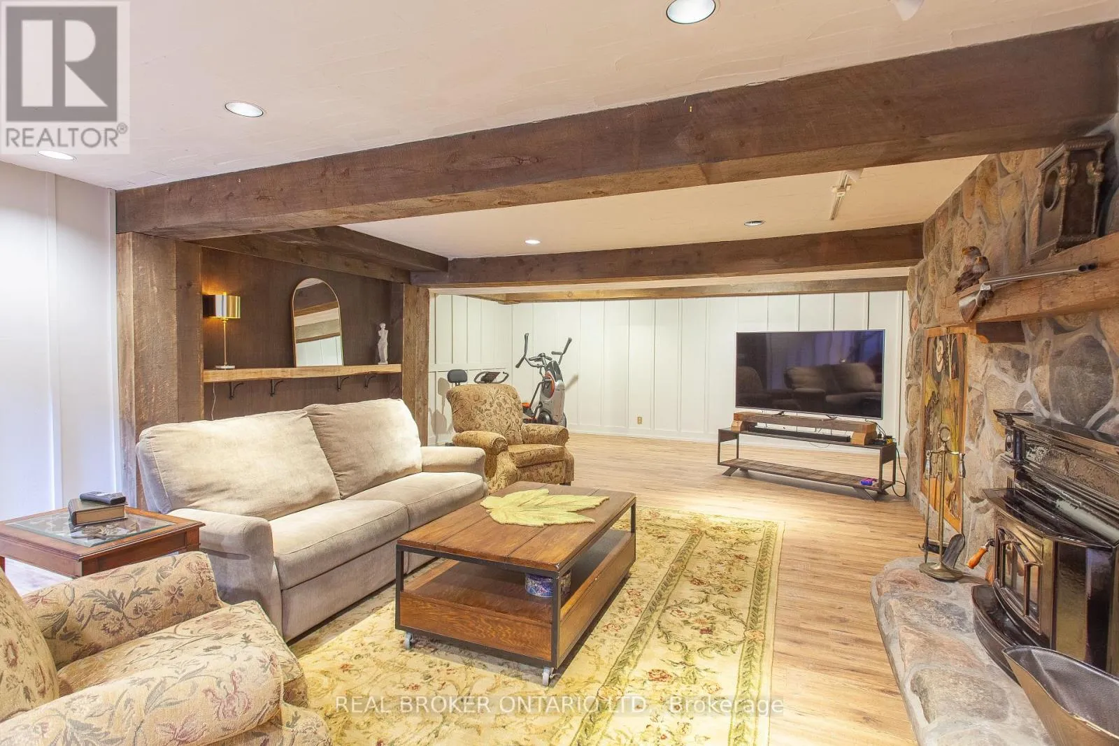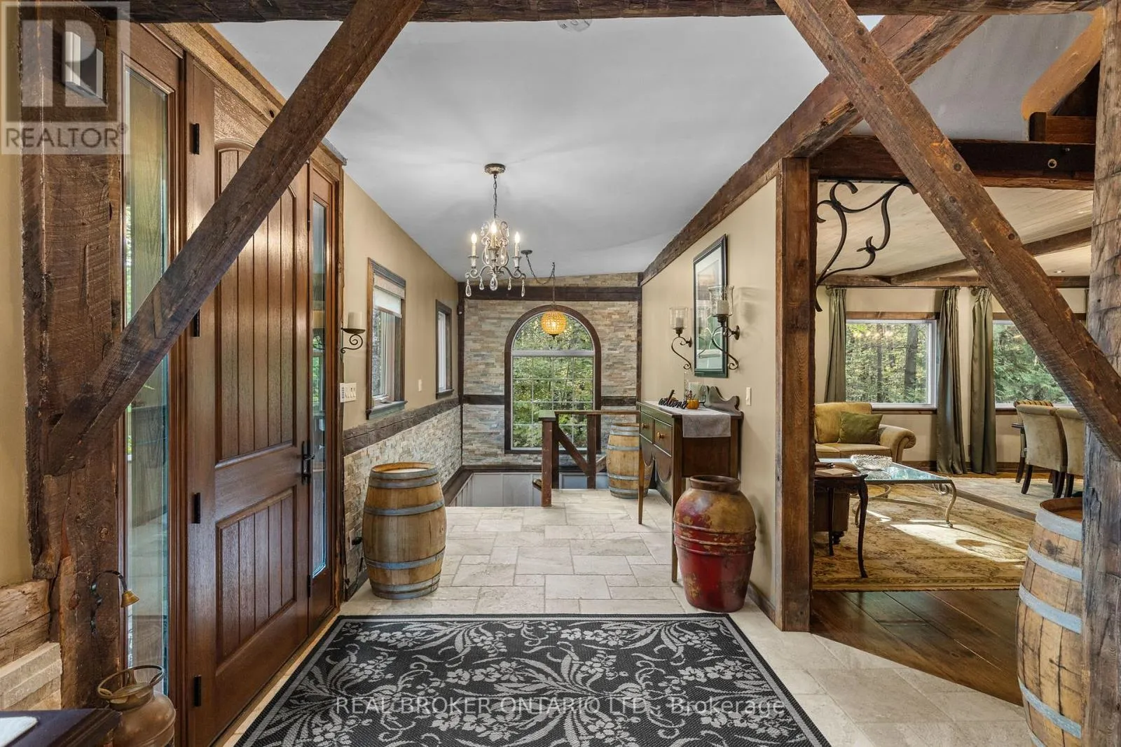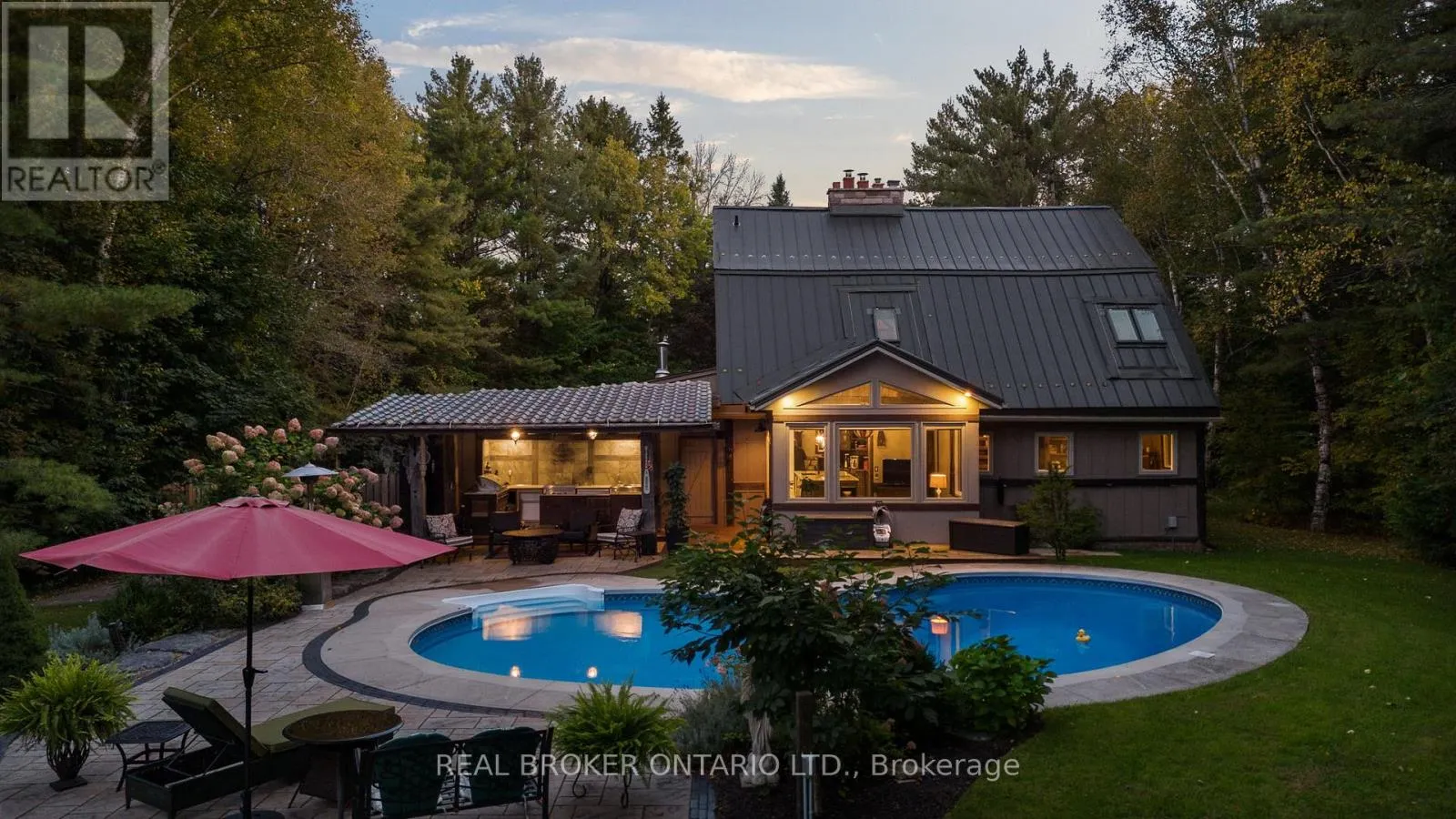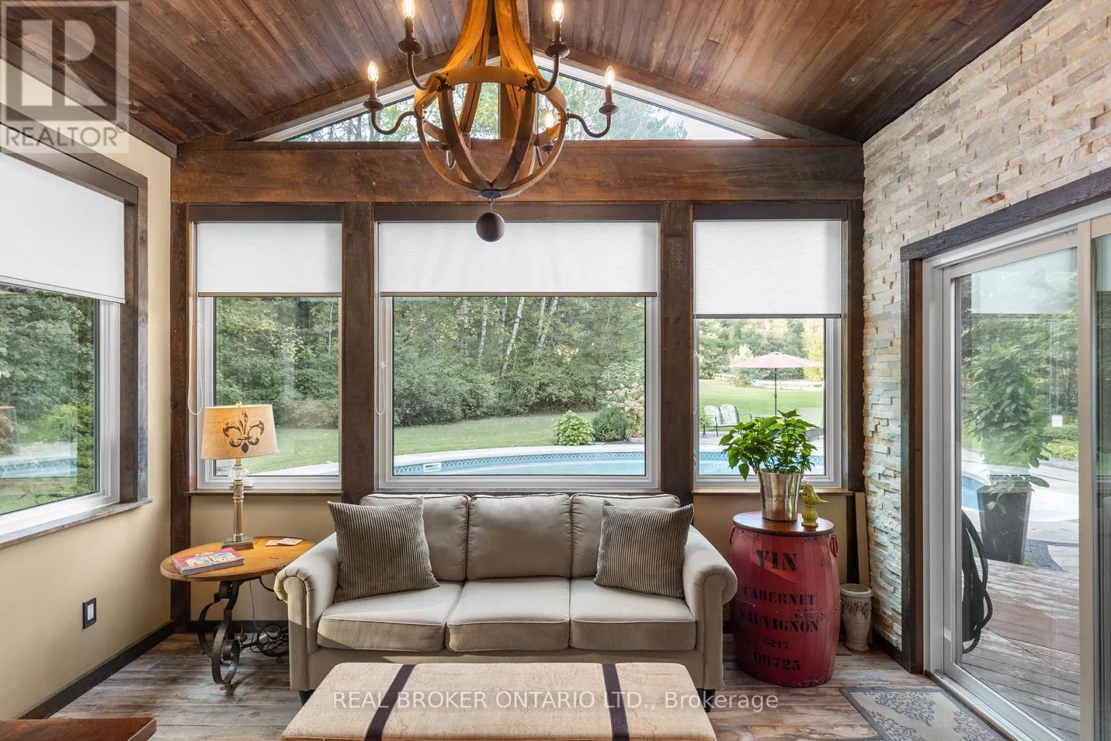 Cross Streets: Agnew/Grass Lake Line. ** Directions: Hwy 11 to S Sparrow Lake Rd to Agnew. Discover a one-of-a-kind Barndominium that is a perfect blend of timeless luxury and rustic character. Nestled within a lush, tree-lined sanctuary, this property boasts 3.88 acres of meticulously maintained grounds, complete with circular driveway and attached garage. Relax outside in the in-ground heated pool, featuring a 9-foot deep end, accompanied by a rejuvenating hot tub. Entertain effortlessly in the full outdoor kitchen, situated under a striking barn beam enclosure, equipped with premium amenities including a Lynx double pro searer, outdoor fridge, quartz countertops, and a restaurant-quality stainless steel island cabinet. Spanning over 4,300 square feet, the residence showcases exquisite high-end finishes and original barn elements. The refinished wide-plank floors harmonize with limestone and porcelain tiles throughout the main floor. The chefs kitchen is outfitted with granite counters, top-tier Wolf appliances including 6 burner gas stove, warming drawer, in-counter deep fryer and steamer and Sub-Zero refrigerator and freezer. The four-season Muskoka room, complete with in-floor heating, serves as a tranquil retreat year-round. The primary suite offers engineered hardwood flooring, a spacious walk-in closet, and breathtaking 5-piece ensuite with extraordinary stonework, soaker tub and walk-in shower. Two additional hayloft bedrooms share a beautiful 4-piece bathroom, while a large finished loft presents endless possibilities as an extra bedroom, play room, or hobby room. The fully finished basement with garage access, features a wet bar and rec area with wood burning fireplace and full bathroom with a unique stone shower and laundry. Geothermal heating and cooling ensures energy efficiency throughout. Completing this remarkable offering is a versatile 30x20 barn equipped with water and hydro. With unlimited character and unparalleled privacy, this extraordinary Barndominium invites you to experience luxurious country living like never before. (id:27476)