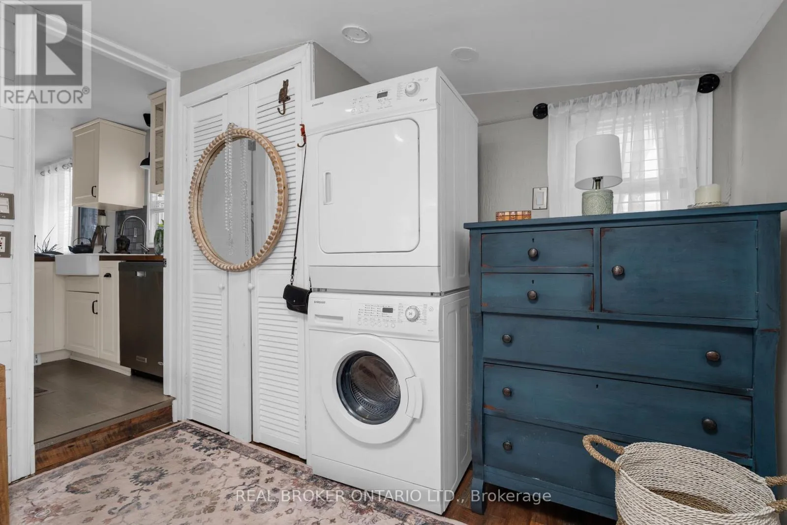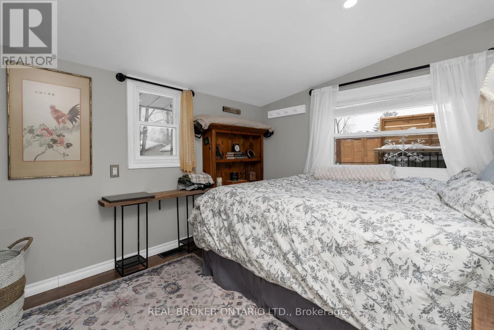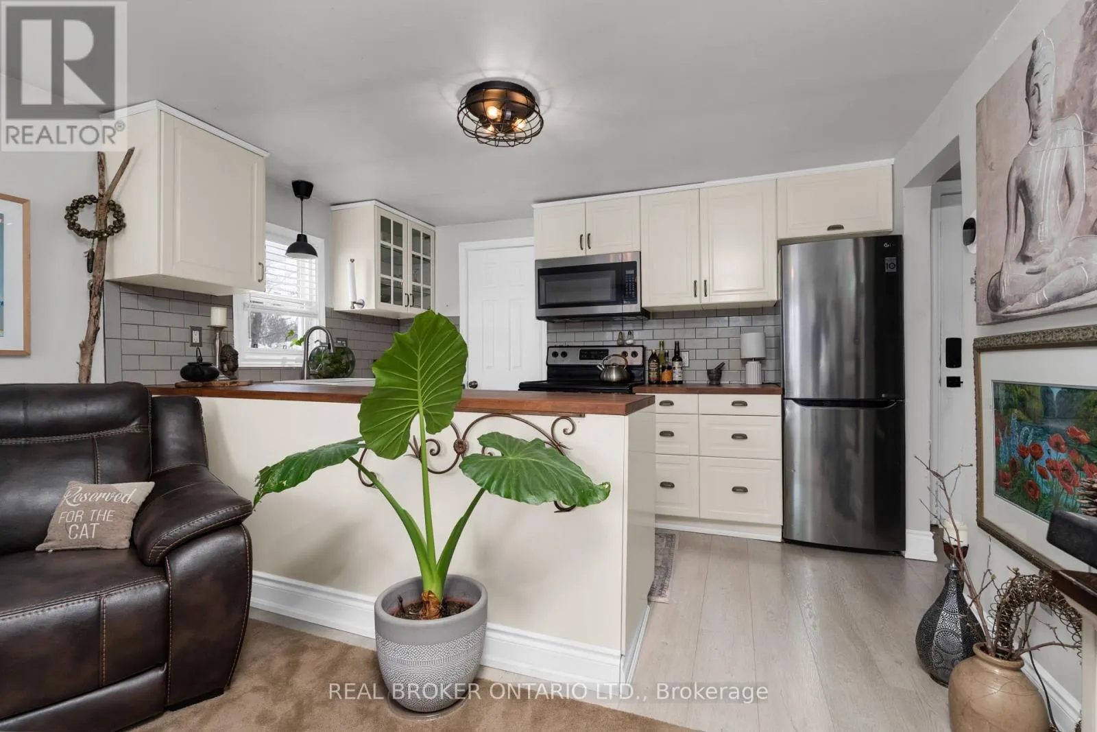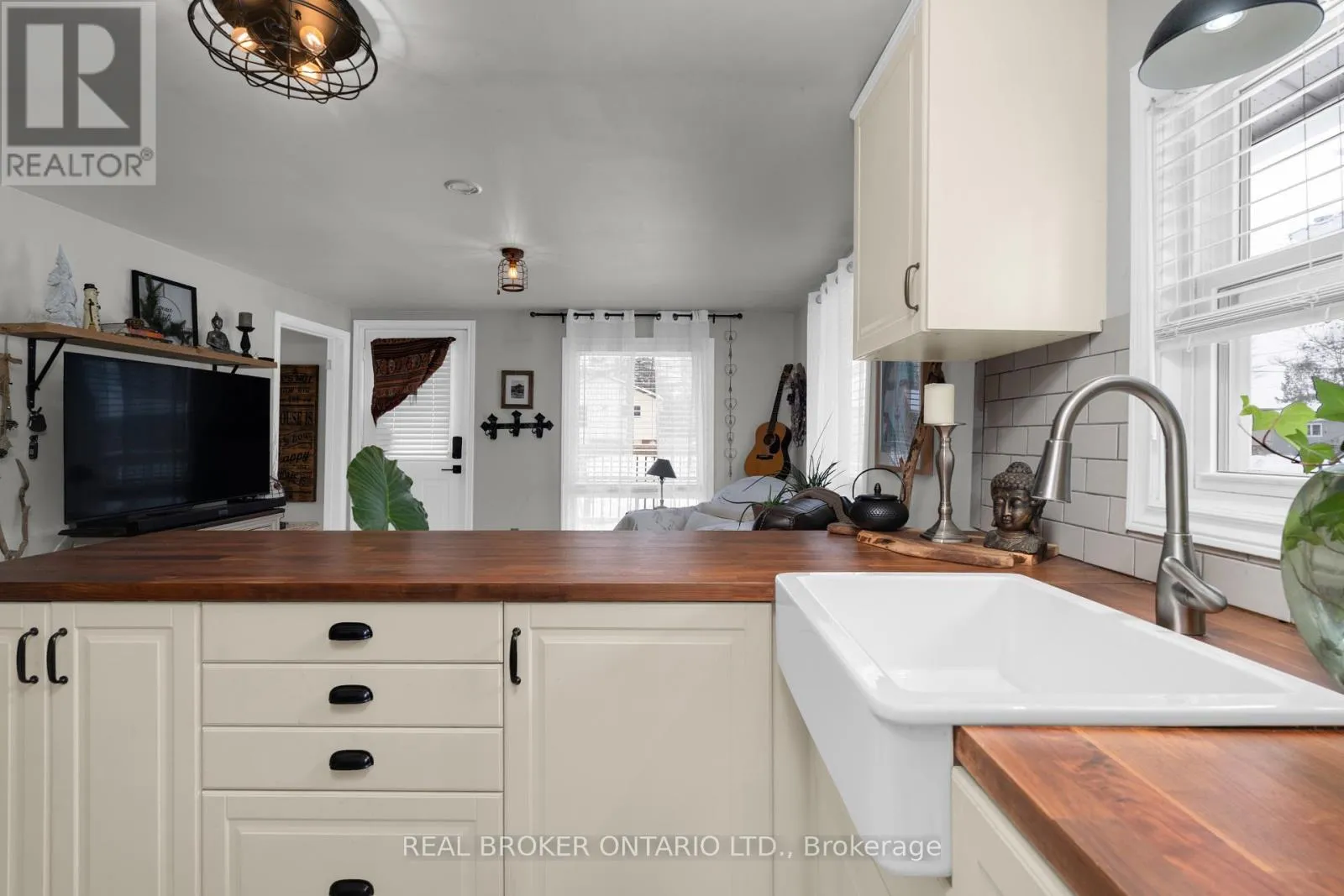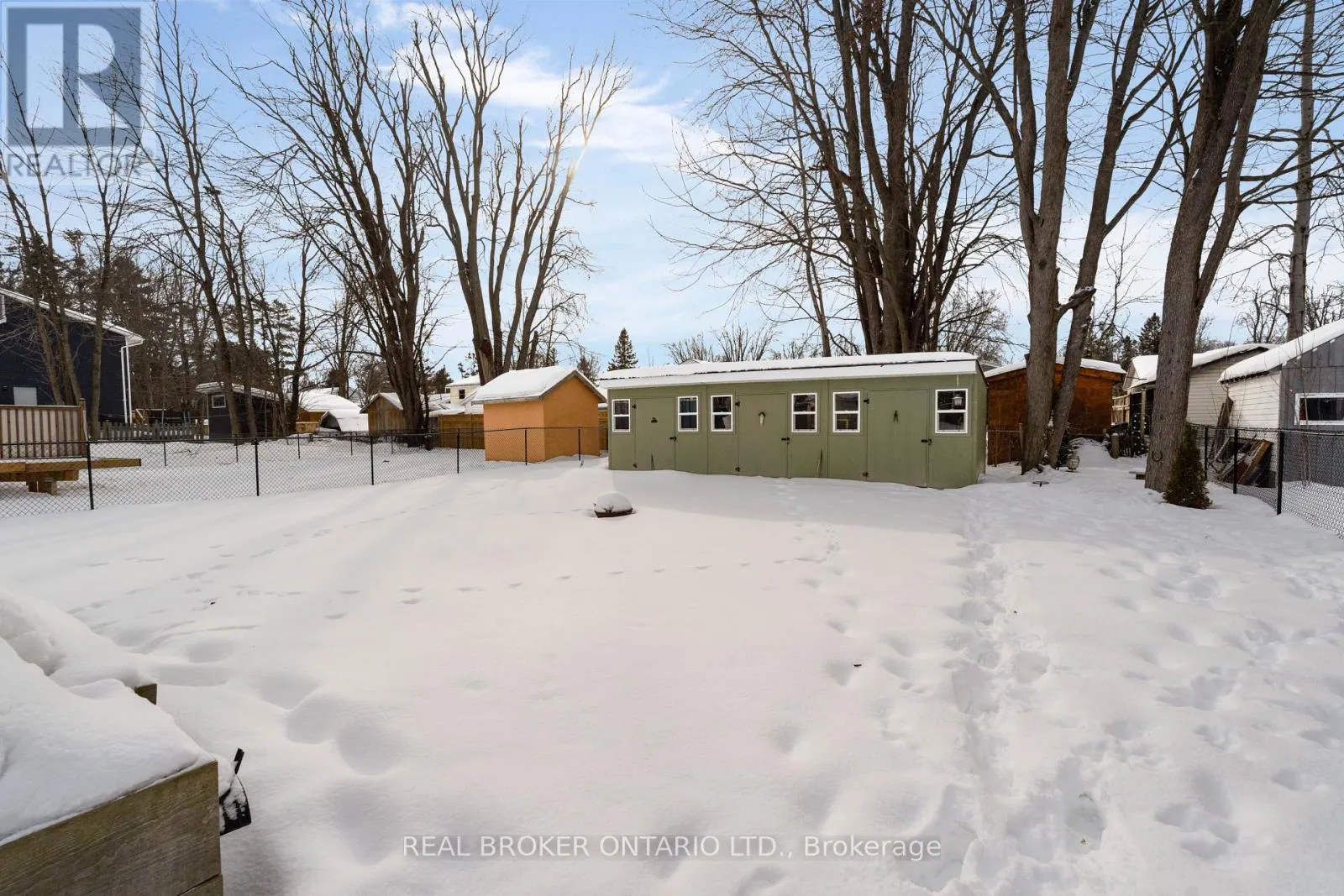 Cross Streets: Bayou & Cumberland Road. ** Directions: BAYOU TO CUMBERLAND TO LEE. Pinch me I'm dreaming, this adorable Cumberland Beach home is perfect for the downsizer not wanting condo fees, or rules, and still wanting a yard plus a private deeded community beach on Lake Couchiching. This turn key year round ranch bungalow has everything on one level. As soon as you step inside you will see the bright updated kitchen with butcher block counters, stainless steel appliances, and tiled backsplash. The open living room/kitchen combo has new flooring 2024. In the front bedroom a cozy romantic wood stove has been added perfect if there's ever an ice storm or power outage (2024 install and wett certified) as well as a gas furnace and AC. There is also a 4-piece bathroom, main floor laundry and a tankless hot water heater. The back primary bedroom (window by bed August 2025) has a beautiful ship lapped accent wall. Outside parking in the driveway for 5 cars plus triple shed with hydro and a little bunky room for guests who want to stay over but want some added privacy (plus another bonus shed). Updated attic insulation January 2024, front railing and two privacy fences 2024 and tons of established perennials including trumpet vines, rose bushes, clematis, and peonies. Stroll down to the end of the street for a kayak, stand up paddle board, or refreshing swim at the deeded beach only $30 per year membership. Steps to Severn Shores Public School, parks and a quick drive to jump on the hwy for commuters or for a round of golf. (id:27476)