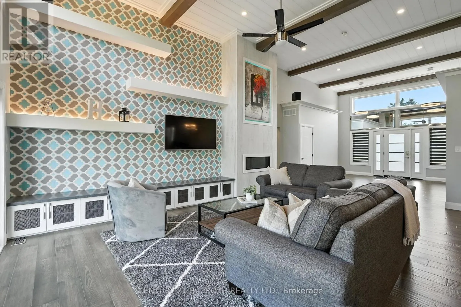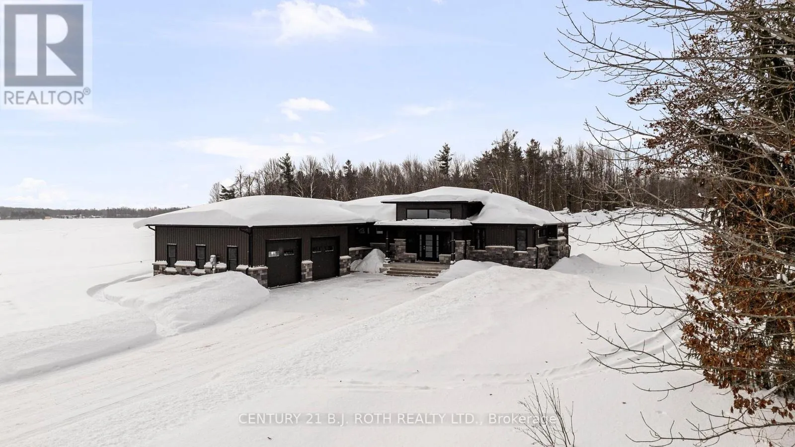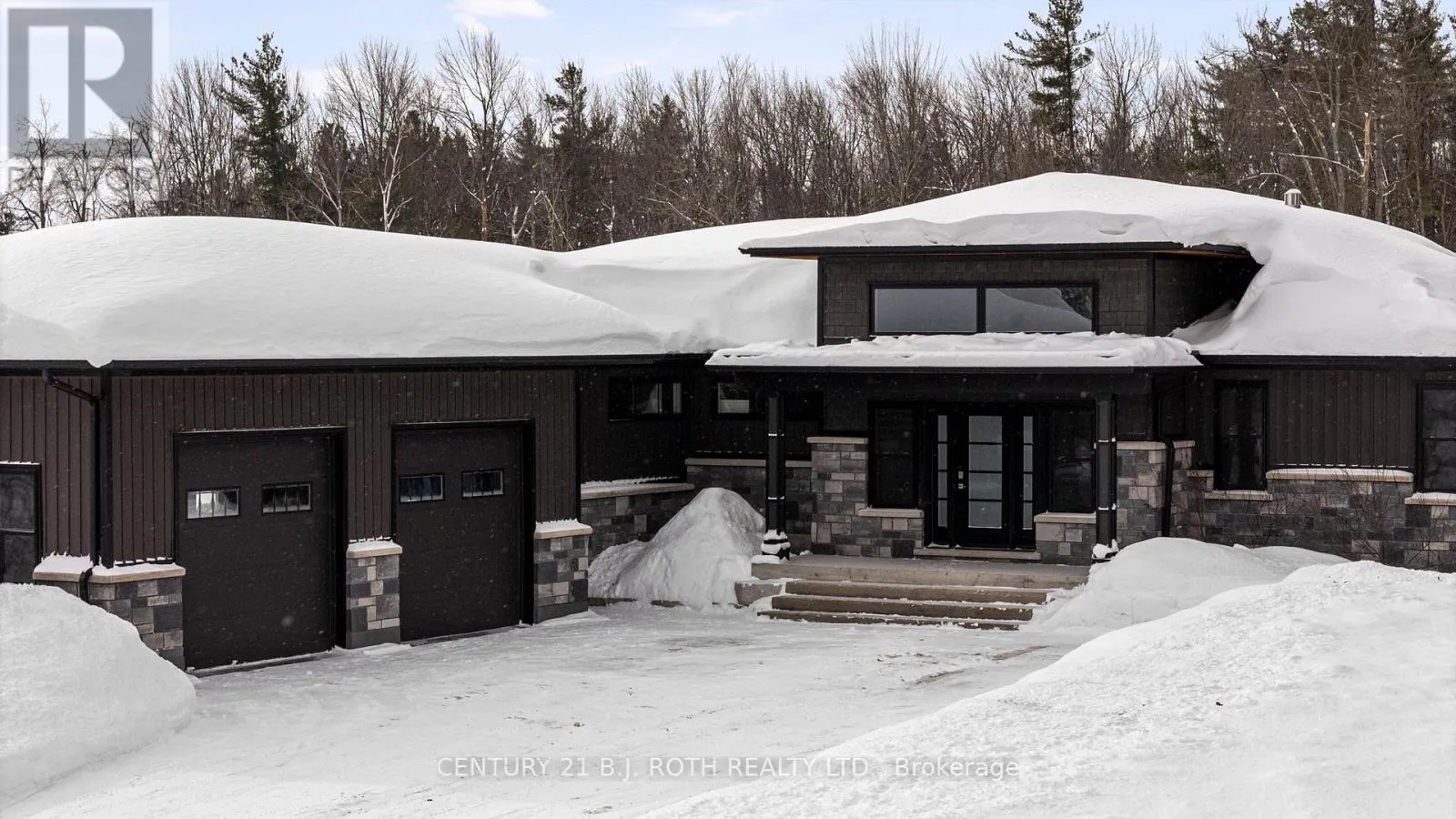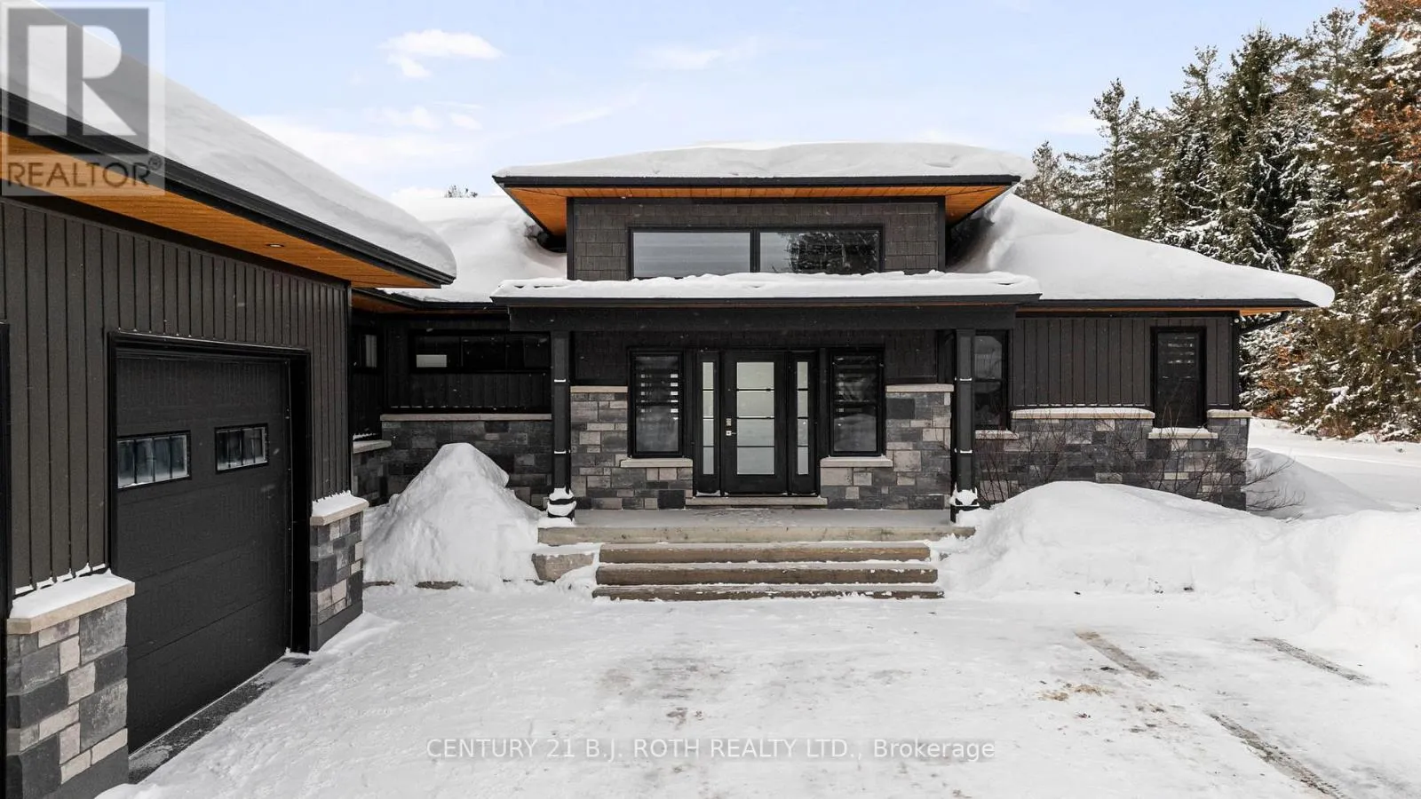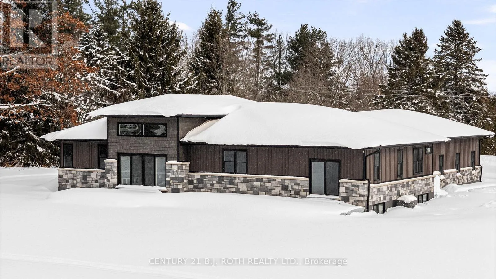 Hwy 11 to Brennan Line A Masterpiece of Modern Elegance in a Tranquil Country Setting. Prepare to be captivated by this custom-built bungalow a residence that redefines luxury living. Meticulously crafted with premium upgrades throughout, this home offers an exquisite blend of opulence, functionality, and serene countryside charm, all just minutes from Orillia. Step inside the expansive open concept main level, where natural light floods through oversized windows, illuminating every curated detail. The heart of the home an entertainers dream kitchen features: massive quartz-topped island, full wet bar, generous walk-in pantry and Custom cabinetry with designer lighting. Flowing seamlessly from the kitchen is the great room, a dramatic space boasting 14-ft beamed and shiplap ceilings, a striking fireplace, and custom LED ambient lighting. Step through oversized glass doors to a grand stone patio, ideal for alfresco dining and sophisticated outdoor entertaining. The primary suite is your personal sanctuary, complete with: spa inspired 5-piece ensuite featuring a freestanding soaker tub, luxurious walk-in shower, and dual vanities, fully outfitted walk-in closet with custom storage solutions. Two additional generously sized bedrooms share a designer 5-piece bath, while the main floor is completed by a stylish mudroom, laundry room, and wide plank engineered hardwood flooring throughout. Descend to the fully finished ICF basement, where possibilities abound. This level offers: An additional bedroom and full bathroom, A state of the art synthetic ice hockey rink (a truly rare and extraordinary feature in a private residence), Expansive space for a home theatre, gym, or recreation lounge. The oversized, heated 3-car garage is equally impressive, fully insulated with epoxy coated floors. Set on a peaceful lot backing onto open farmland, the property offers direct access to the OFSC snowmobile trail, and is ideally situated just a short drive to local beaches, shopping, dining, and more. (id:27476)