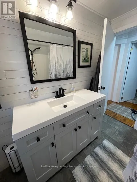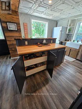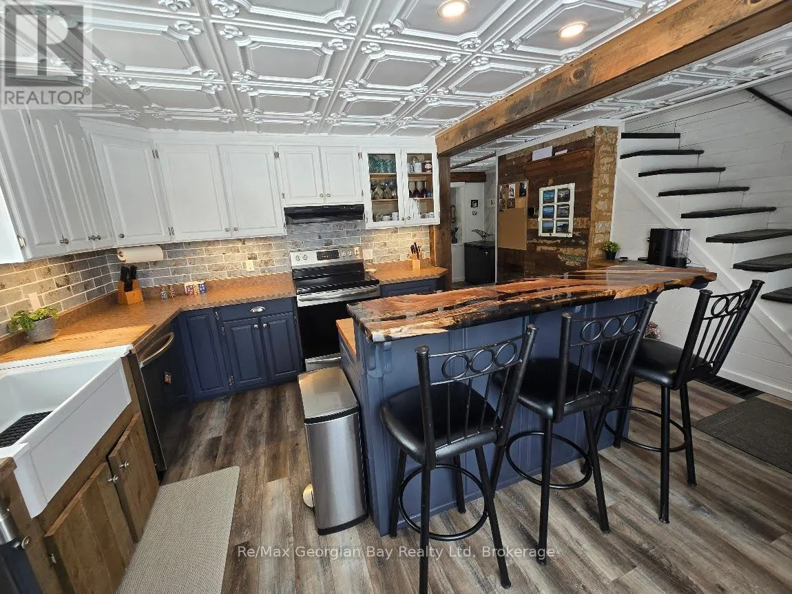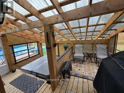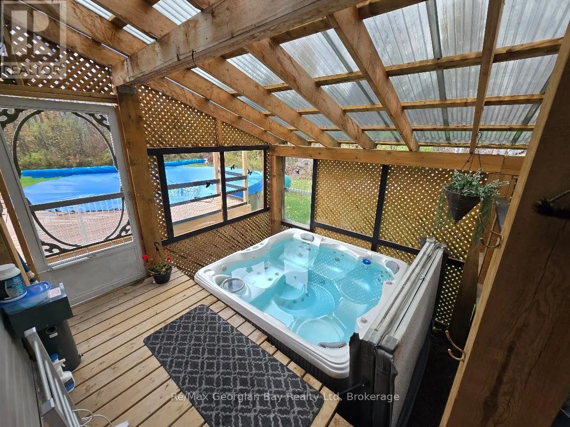 Cross Streets: UPPER BIG CHUTE ROAD. ** Directions: UPPER BIG CHUTE TO IRISH LINE TO 2066 ON LEFT. Set just outside Coldwater on just over an acre, this well cared for 3 bedroom, 2 bath home is designed for those who love both indoor comfort and outdoor living. Enjoy a fully fenced front yard, a heated above-ground pool with deck, and a beautiful enclosed porch complete with hot tub for year-round relaxation. Inside, the updated kitchen features a stunning one-of-a-kind epoxy island countertop that anchors the space. The standout 24x36 garage offers generous space for storage and hobbies, complete with a 60 amp service in the shop, (200 amp panel in house) and a cozy man cave area insulated & heated with a pellet stove. Conveniently located with quick access to highway 400, Maclean Lake, North River, and Coldwater River. Lovingly maintained and ready to be enjoyed with quick close available! (id:27476)