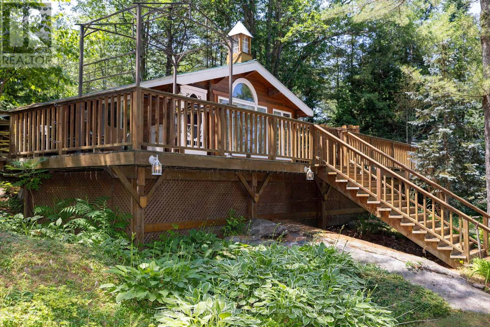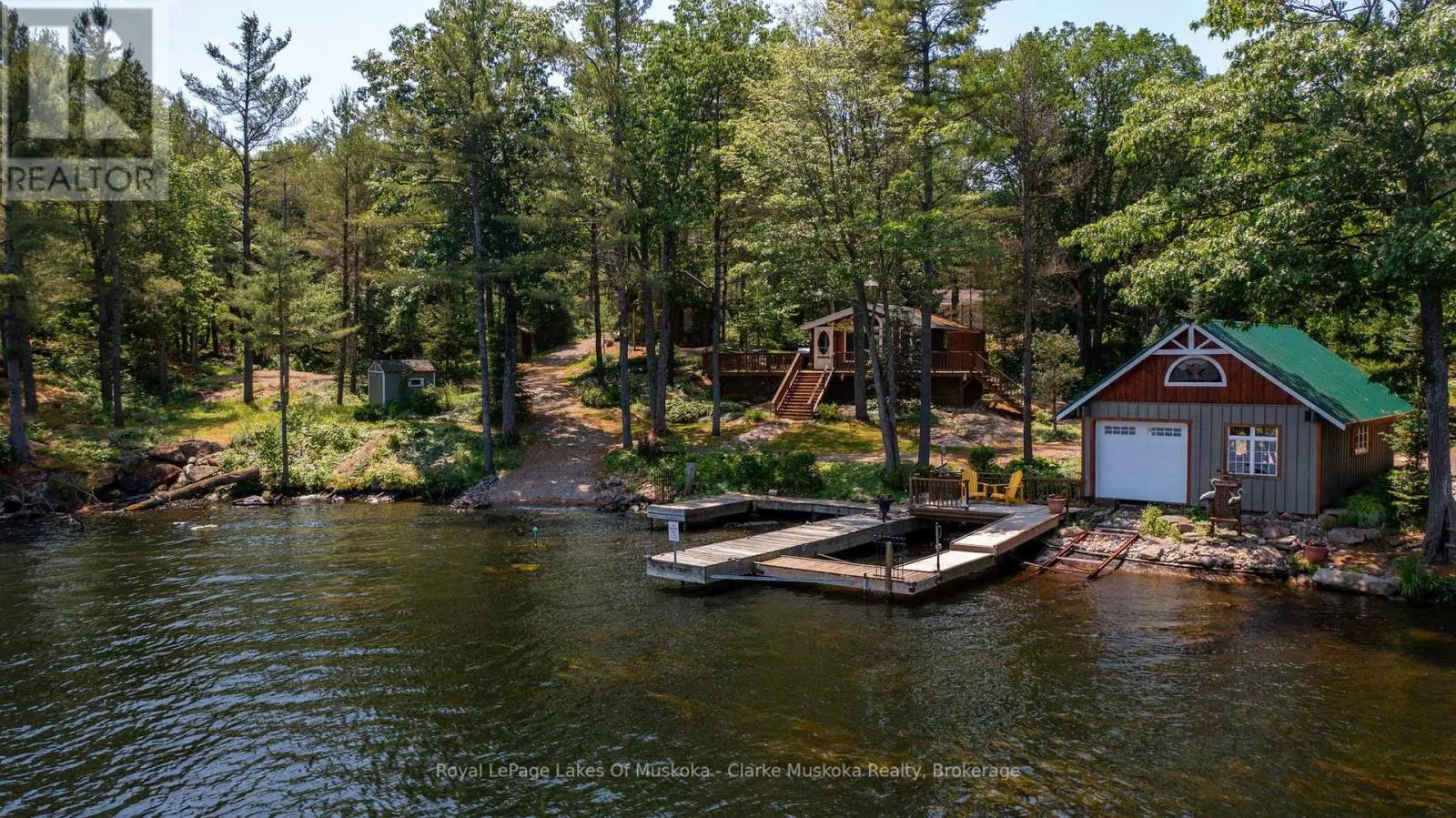 Cross Streets: WHITES FALLS ROAD. ** Directions: HWY 400 N TO WHITES FALLS ROAD TO MARR LANE. Severn River Waterfront Cottage with adjoining lot boasting 277.4 Feet of Shoreline. A rare opportunity to own a charming 2-bedroom, 1-bathroom waterfront cottage plus an adjoining vacant lot on the Severn River, offering a combined 277.4 feet of shoreline and direct access to Georgian Bay. Enjoy deep, clean water perfect for swimming and fishing, with northern waterfront exposure and stunning views. The cottage features walkouts from both the living room and primary bedroom to a spacious deck overlooking the river ideal for entertaining or quiet relaxation. A propane fireplace in the living room for those chillier evenings. The property includes a deck on both sides of the oversized insulated garage, which also features a loft above for extra storage or future guest accommodations. Additional structures include a dry boathouse with marine railway and also includes your own boat launch ramp, a waterside bunkie, a wood shed, and a tool shed. The adjoining vacant lot offers additional privacy and recreational space, with a deck positioned for sunset views. A portion of this lot is environmentally protected, preserving the natural setting and enhancing long-term value. Whether you're looking for a serene retreat or an exceptional waterfront investment, this Severn River gem offers year-round enjoyment and direct access to the renowned Trent-Severn Waterway. (id:27476)