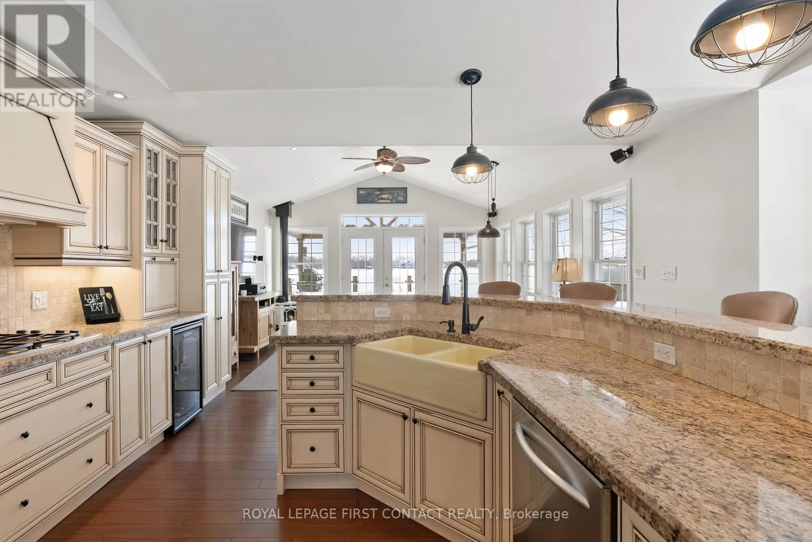 St,Amant/Baguley Rd/ Point Bush Crt Exceptional point offering on the tranquil shores of Little Lake, custom-built year-round waterfront home is perfectly positioned on a quiet municipal road with expansive southwest exposure & unforgettable sunsets. Set on a level 0.81 acres with 218 ft of private shoreline, offers direct access to the Trent-Severn Waterway, connecting through Gloucester Pool to Georgian Bay opening the door to endless boating, fishing, and cruising. Offering 3,500 sqft with 4 bdrms, 3 baths, a gourmet kitchen and a lower-level kitchenette, along with two laundry areas, providing excellent flexibility for family living, entertaining, or extended-stay guests or multi-generational living. The main level is designed to maximize lake views and everyday comfort, offering an inviting open-concept layout flooded with natural light from oversized windows throughout. The living space flows seamlessly between cozy gathering areas with fireplaces, a sitting room, and a dedicated dining area - ideal for both entertaining and relaxed evenings by the fire. Anchoring the level is a custom gourmet kitchen, recently renovated and appointed with granite countertops, premium appliances, and abundant cabinetry. A serene primary suite with ensuite. Multiple walk outs extend the living space to a wrap-around covered porch, providing shaded outdoor enjoyment and exceptional waterfront views. The fully finished lower level is exceptionally well laid out, featuring a roomy kitchenette with dining area, a large recreation and family room, dedicated office space, generous bedrooms, a full walk-up separate entrance. Outdoors, enjoy a private dock, a peaceful bunkie with its own deck for additional sleeping space, and a spacious triple heat garage ideal for vehicles, workshop , or seasonal storage. Conveniently located minutes to marinas, LCBO, general store, Rawley Resort and Inn at Christie's Mill, with nearby skiing and golf & snowmobiling . Approx 35 minutes to Barrie with easy access to Highway 400. (id:27476)