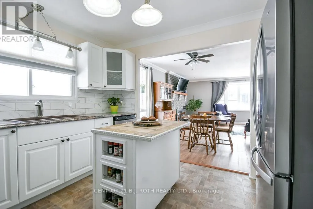 Cross Streets: Sheppard St / Wyley St. ** Directions: Gray St / Wyley St / Sheppard St. Welcome to this beautifully updated brick bungalow in the heart of Coldwater - where small-town charm meets modern comfort and year-round adventure. This fully renovated 3-bedroom home offers bright, open-concept living designed for both everyday comfort and effortless entertaining. The newly updated kitchen is the true centerpiece, featuring a large island, brand-new stainless steel appliances, abundant cabinetry, and seamless sightlines into the dining and living areas. The inviting living room is anchored by a cozy brick gas fireplace, creating the perfect space to gather with family and friends. The spacious primary bedroom includes a stylish 2-piece ensuite accented with a sliding barn door for a touch of modern character. Two additional bedrooms provide flexible space for a growing family, guests, or a home office. Thoughtfully finished throughout, the home features durable laminate flooring with luxury vinyl in the kitchen and bathrooms, updated windows, and the convenience of main floor laundry. Outside, the insulated double-car garage offers ample room for vehicles, recreational toys, or a workshop setup. Enjoy warm evenings in the 3-season screened-in gazebo-ideal for relaxing without the nuisance of mosquitos. This beautiful home is wired for generator use in case the power goes out and the electrical panel has been updates to 200 amp service. A separate shed provides additional storage, while the beautifully landscaped 58' x 149' lot showcases a tranquil pond and inviting outdoor space. Located just minutes from Highway 400 and close to schools, dining, recreation facilities, skiing, and golf, this property is perfectly positioned for outdoor enthusiasts and commuters alike. Move-in ready and meticulously updated-this is the lifestyle opportunity you've been waiting for. (id:27476)