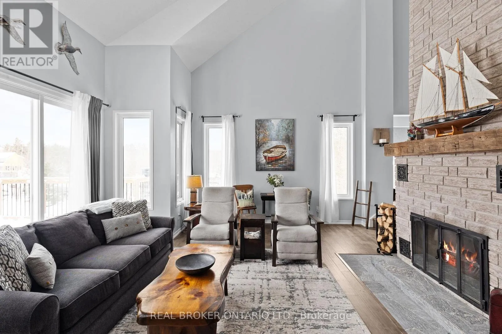 Tower Line to Beman Point Your Dream Year-Round Escape on Gloucester Pool! Escape to this stunning waterfront retreat, just 1.5 hours from the GTA. With 219.65 feet of private frontage, this four-season home offers breathtaking, one-of-a-kind views of Gloucester Poolyour gateway to Georgian Bay and the Trent-Severn Waterway. Step inside to a beautifully designed living space featuring soaring 25-ft cathedral ceilings, an open-concept kitchen, dining, and living area filled with natural light, and a grand stone fireplace perfect for cozy winter nights. The loft-level primary suite boasts a walk-in closet and ensuite bath, while two spacious main-floor bedrooms provide plenty of room for family and guests. Outdoors, relax on the expansive waterside deck and take in the spectacular views, or enjoy endless boating, swimming, and fishing right from your doorstep. Accessible by a level, four-season road, this is the perfect getaway for those seeking both adventure and relaxation all just a short drive from the city. Don't miss your chance to own a true four-season escape in cottage country! (id:27476)