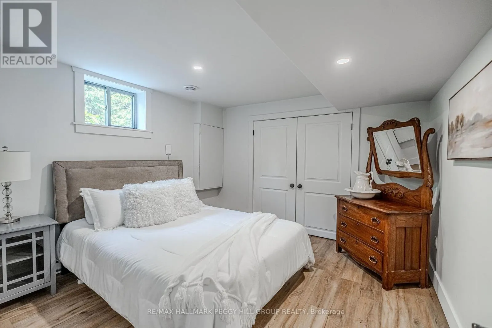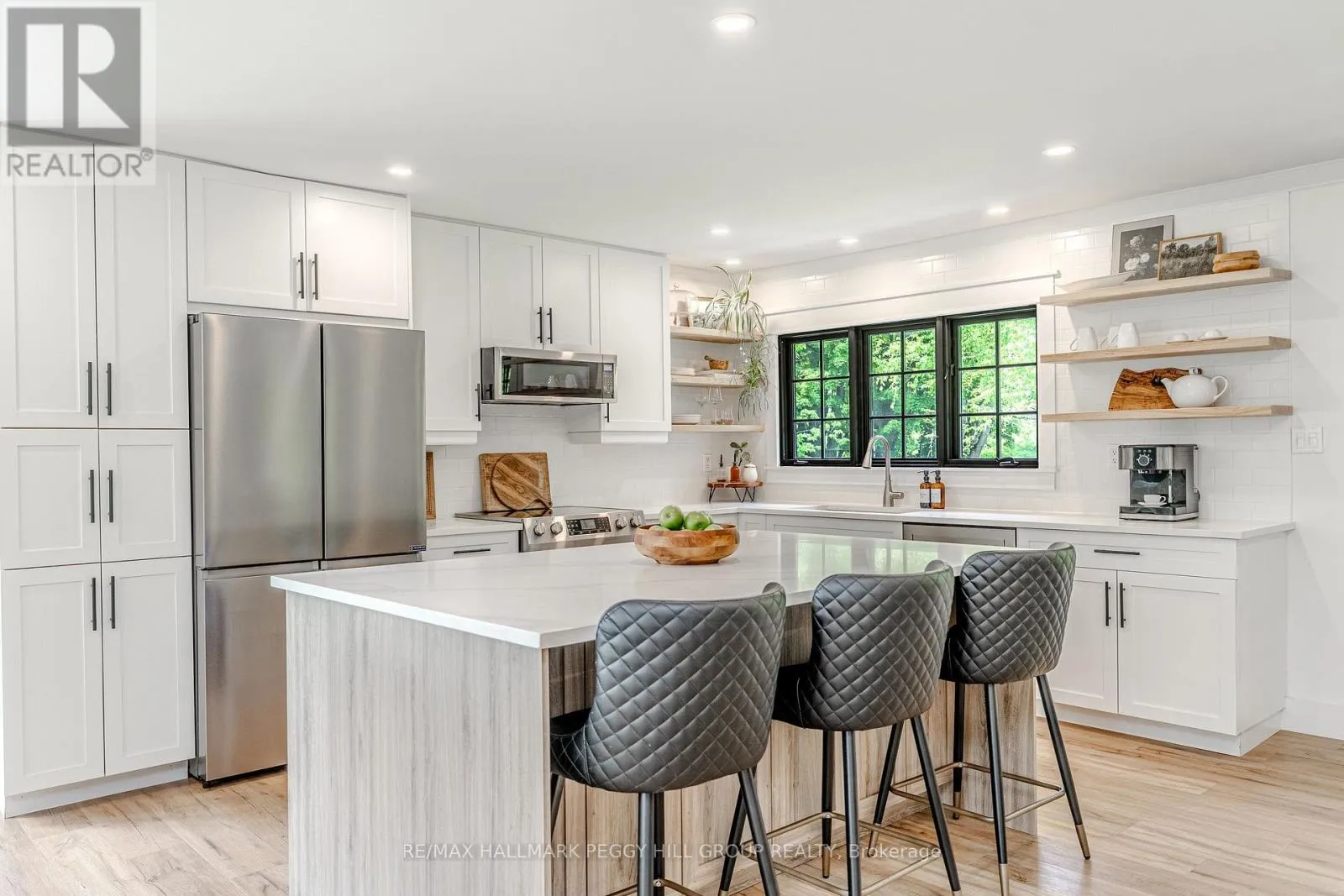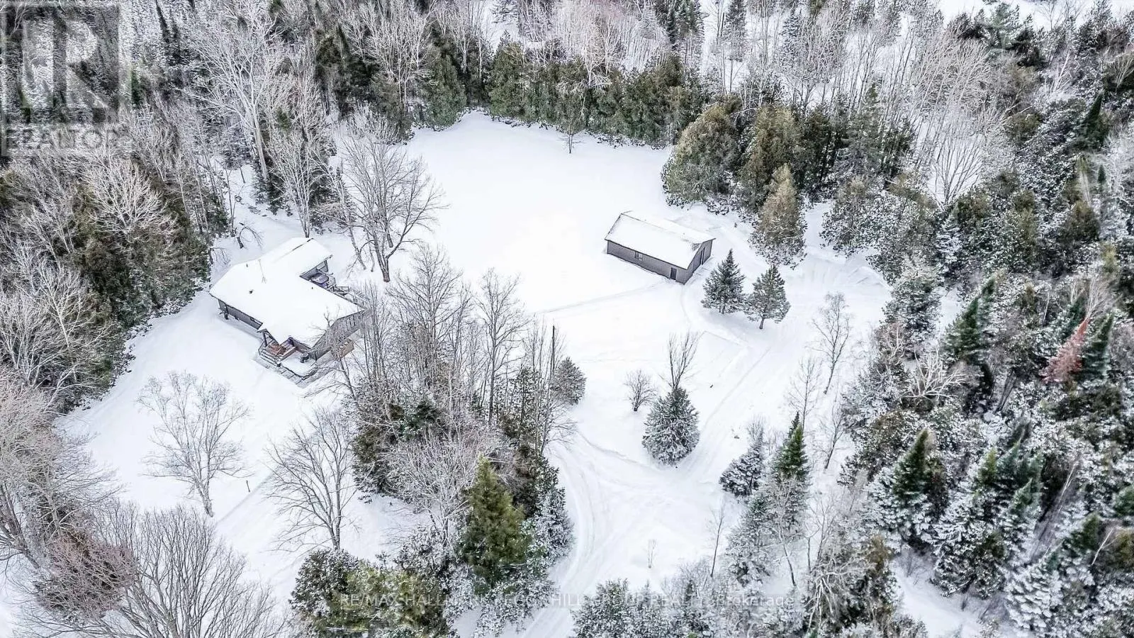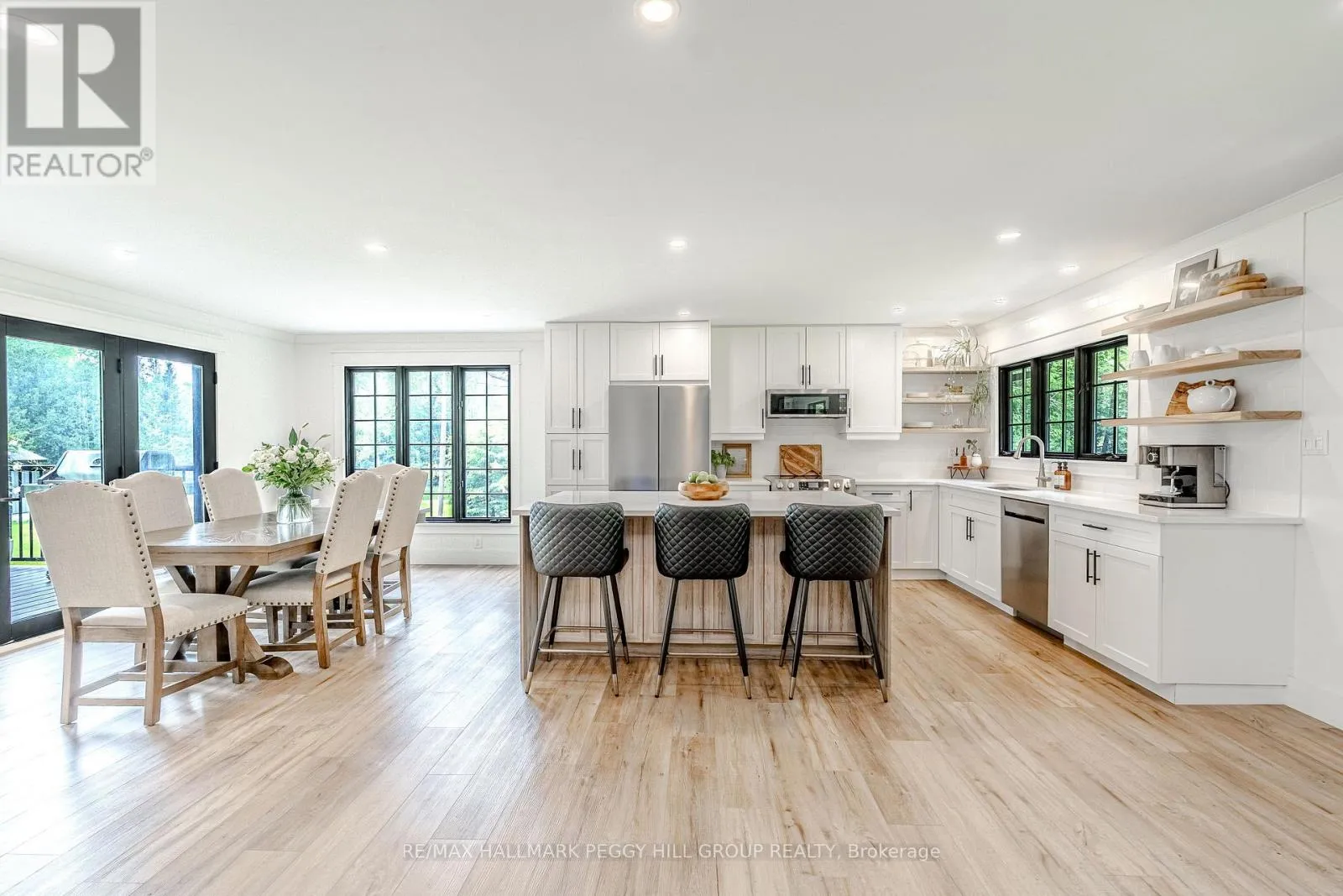 Cross Streets: Thorburn Rd/Fairgrounds Rd. ** Directions: HWY 11/ Left on West Street N/Burnside Line/Thorburn Rd/Fairgrounds Rd. SECLUDED COUNTRY BUNGALOW ON OVER 2 ACRES WITH UPSCALE FINISHES, HOT TUB, 4-CAR GARAGE & MOVE-IN-READY LUXURY! Think of the country home you keep saving in your Pinterest inspiration folder, a bungalow on over 2 acres of private countryside with a turnkey interior of designer finishes and a backyard made for entertaining and unwinding with tree-lined views. Arrive along a long private drive to striking curb appeal, where rich wood beams and black-trimmed windows frame a covered front porch set against board-and-batten style vinyl siding, with a detached 4-car garage or shop echoing the same modern look for vehicles or hobby space. Extensively renovated, the open concept layout offers over 2,800 finished sq ft with luxury vinyl flooring, pot lights, crown moulding, and soft neutral paint tones. The kitchen offers white cabinetry, quartz countertops, open wood shelving, stainless steel appliances, and a wood-toned island with breakfast bar seating that flows into a bright dining area framed by four-panel garden doors opening to the elevated back deck. The living room centres around a propane fireplace in a floor-to-ceiling stone surround with built-in cabinetry and open shelving. The vaulted primary bedroom stands out with a wood beam accented by pot lights, its own fireplace in a stone surround, generous windows, a luxurious ensuite, and excellent storage, including two built-in wardrobe systems, plus a private walkout that places the hot tub only steps away. The finished walkout basement extends the living space with a recreation room, full bathroom, two additional bedrooms, and a laundry room finished with live-edge style counters and a subway tile backsplash. Packed with high-end upgrades, a stylish turnkey interior, an oversized garage, and real acreage privacy, this is the kind of country #HomeToStay that leaves you wondering what more you could want. (id:27476)