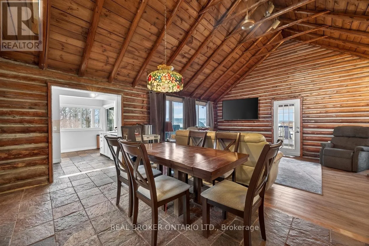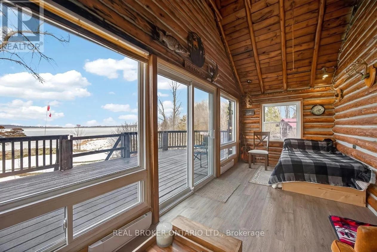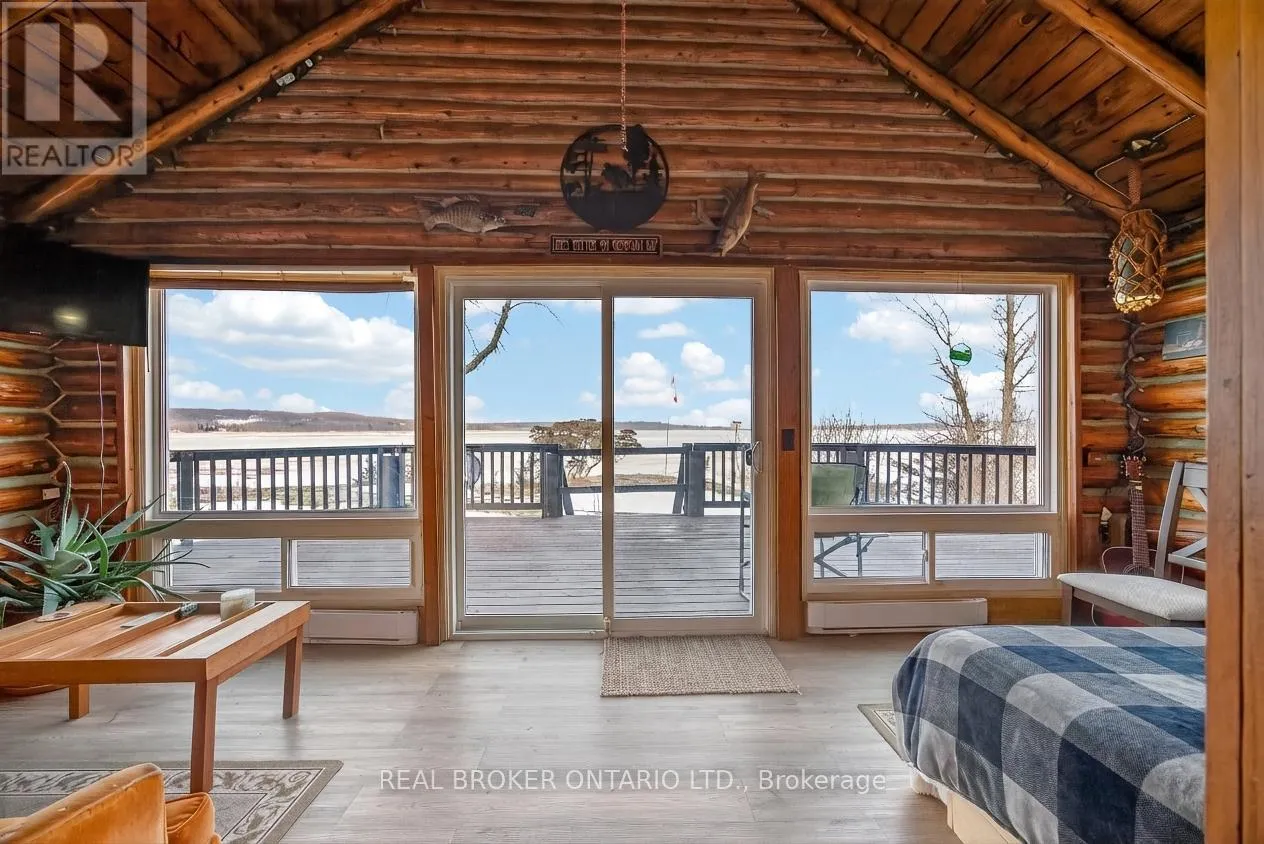 Cross Streets: Tay Bay Road. ** Directions: Tay Bay Road to Sign. Over 8 acres of land, approximately 500 feet of waterfront, and a spectacular view across Matchedash Bay. This year-round log home delivers the kind of privacy most people only dream about, fronting onto 300 acres of Crown Land with fishing, hunting, hiking, and boating right out your door.The main floor features a primary bedroom with walk-in closet and walkout to a covered front deck. The kitchen includes all appliances and walks out to a side deck. An open concept great room and dining area flow naturally through the home, while a rear sunroom captures the waterfront view beautifully. Upstairs, 3 additional bedrooms provide plenty of room for family or guests.The boathouse is a standout, offering finished living space with sleeping accommodations, a bathroom, and kitchenette on the upper level, with storage below. A detached oversized single garage rounds out the outbuildings. Practical upgrades include a full backup generator, UV water treatment, and tankless hot water.This is a rare opportunity to own a true waterfront retreat with serious acreage and Crown Land at your doorstep. Book your private showing today. (id:27476)