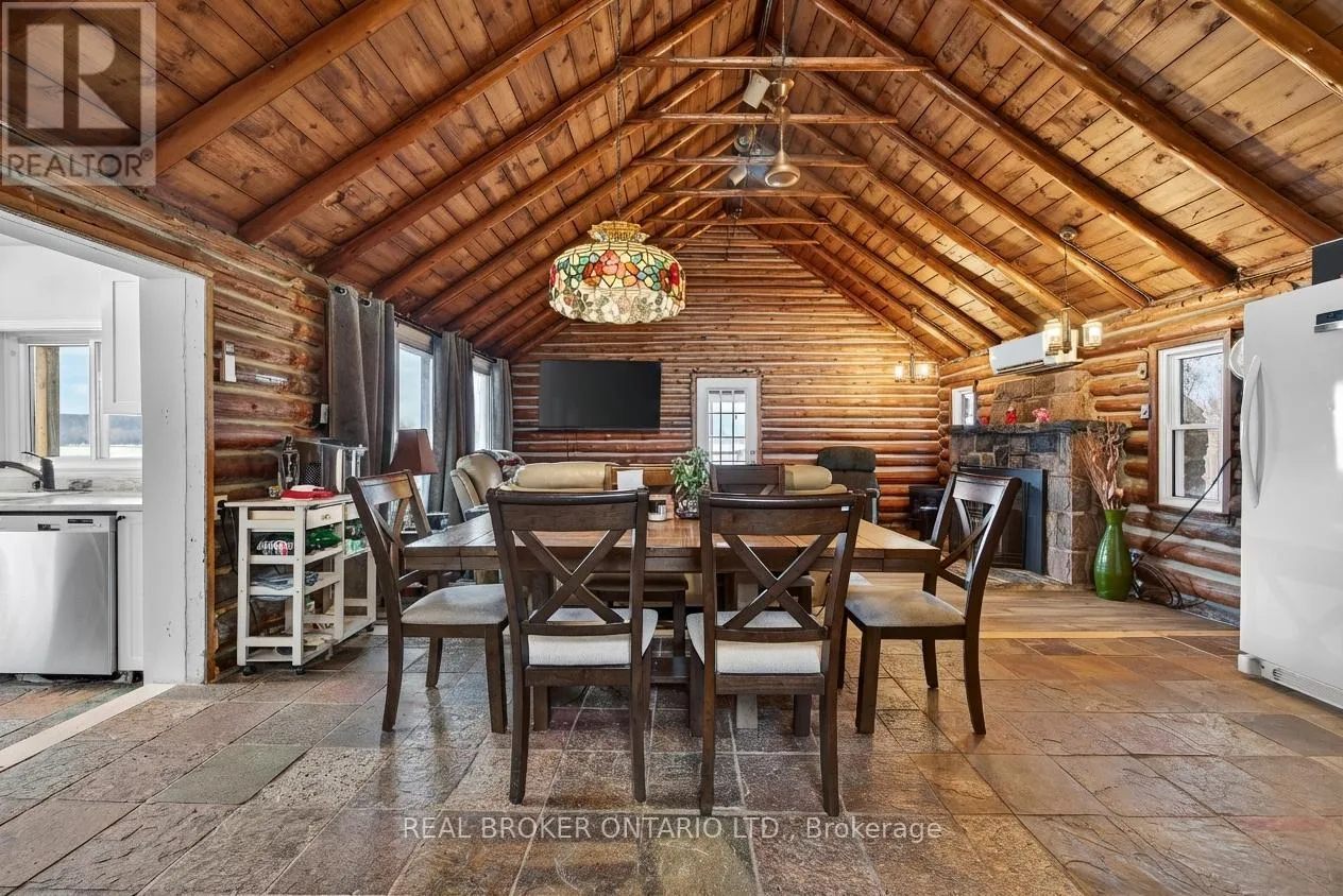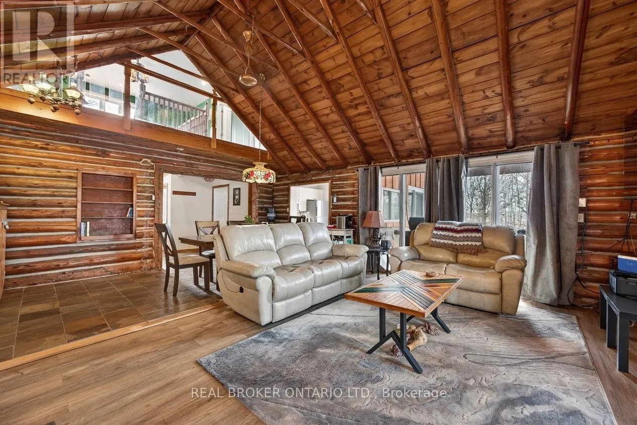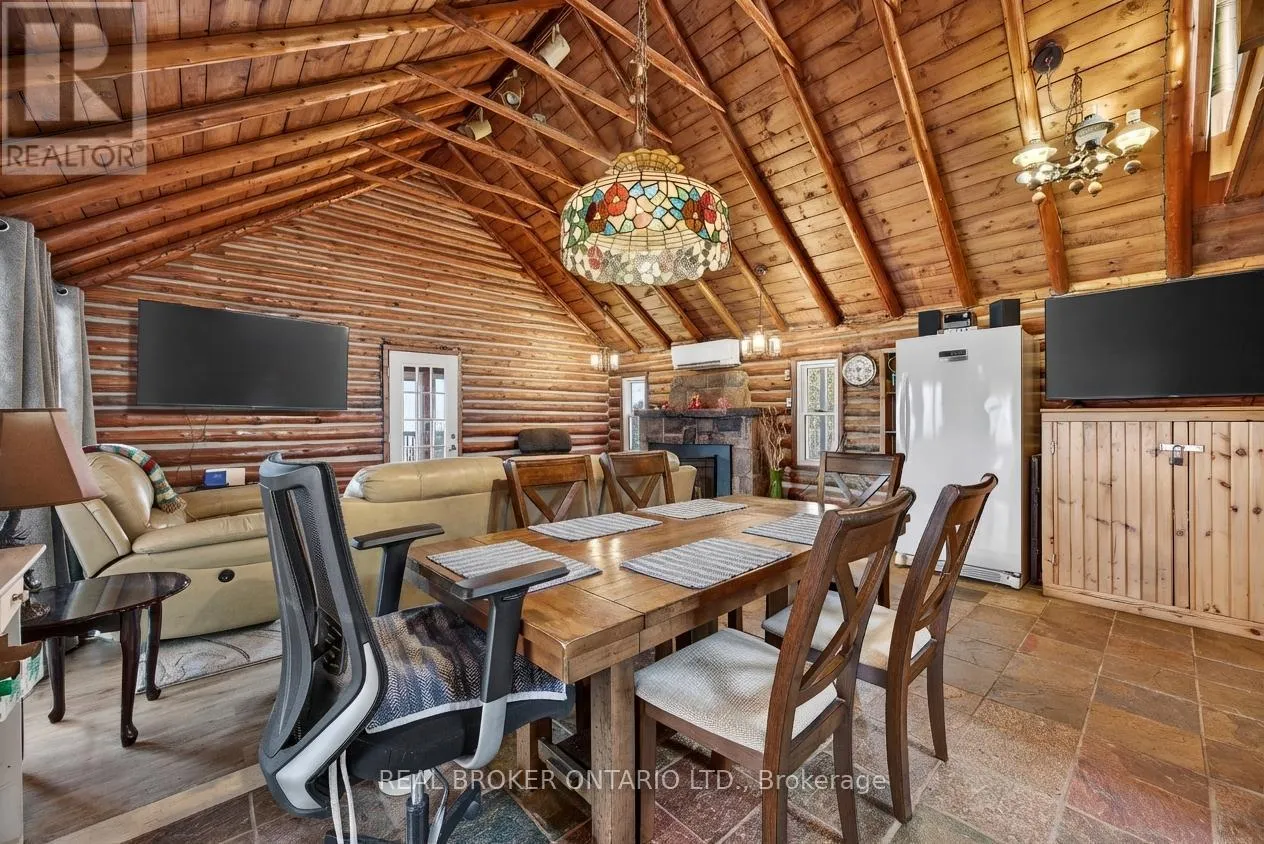 Cross Streets: Tay Bay Road. ** Directions: Tay Bay Road to Sign. Over 8 acres of land, approximately 500 feet of waterfront, and a spectacular view across Matchedash Bay. This year-round log home delivers the kind of privacy most people only dream about, fronting onto 300 acres of Crown Land with fishing, hunting, hiking, and boating right out your door.The main floor features a primary bedroom with walk-in closet and walkout to a covered front deck. The kitchen includes all appliances and walks out to a side deck. An open concept great room and dining area flow naturally through the home, while a rear sunroom captures the waterfront view beautifully. Upstairs, 3 additional bedrooms provide plenty of room for family or guests.The boathouse is a standout, offering finished living space with sleeping accommodations, a bathroom, and kitchenette on the upper level, with storage below. A detached oversized single garage rounds out the outbuildings. Practical upgrades include a full backup generator, UV water treatment, and tankless hot water.This is a rare opportunity to own a true waterfront retreat with serious acreage and Crown Land at your doorstep. Book your private showing today. (id:27476)