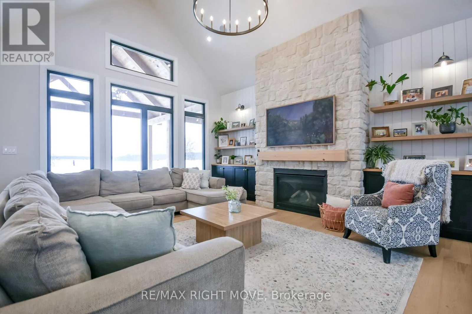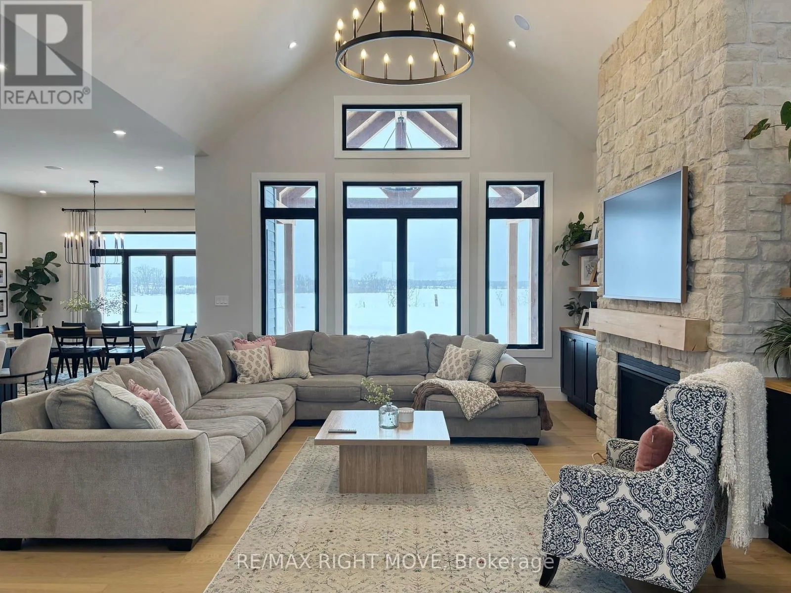 Cross Streets: Cambrian / Carlyon. ** Directions: Division Rd to Carlyon to Cambrian Turn Right. Your expectations fulfilled in this fully finished modern bungalow offering nearly 5,000 sq ft on a private 1 acre parcel, located just 10 minutes from Orillia for convenient shopping & amenities. In addition to an attached triple car garage, the property features a detached 1184 sq ft heated double car shop/garage. Detached garage exterior complements the home, creating a cohesive and polished estate feel. Quality materials & exceptional finishes are evident throughout. Highlights include, engineered hardwood, 10-ft ceilings, 8-ft doors, a vaulted great room, stone fireplace, and built-in speakers both inside and out. The kitchen serves as the hub of the home & is beautifully appointed with a 66" fridge/freezer, extensive cabinetry, oversized island, 6 burner, 36-inch gas range, wall oven, microwave, pot filler, & a full walk-in pantry. A well-designed floor plan offers both functionality & privacy. Secondary bedrooms & bath are situated on one side of the home, while the primary suite is privately located on the opposite wing featuring its own fireplace, hanging bedside lighting, & direct access to the covered rear verandah. A luxurious primary suite offers his & hers closets, an en-suite w/ heated floors, 6-piece bath w/ double curbless shower & standalone soaker tub positioned to capture beautiful views. a powder room for guests. Thoughtfully designed mudroom w/ heated floors, 16' ceilings, extensive cabinetry keeps the household organized while maintaining a clean aesthetic. Garage access to both the main floor & basement provides excellent flexibility for multi-generational living. A standout feature is the finished laundry room w/ access from both the primary suite & hallway. Fully finished lower level includes a gym, bedroom, office, rec room, & bathroom, providing ample additional living space. Extensive covered rear verandah is the perfect place to enjoy the property's peaceful setting & take in spectacular western sunsets. But there's still more... (id:27476)
