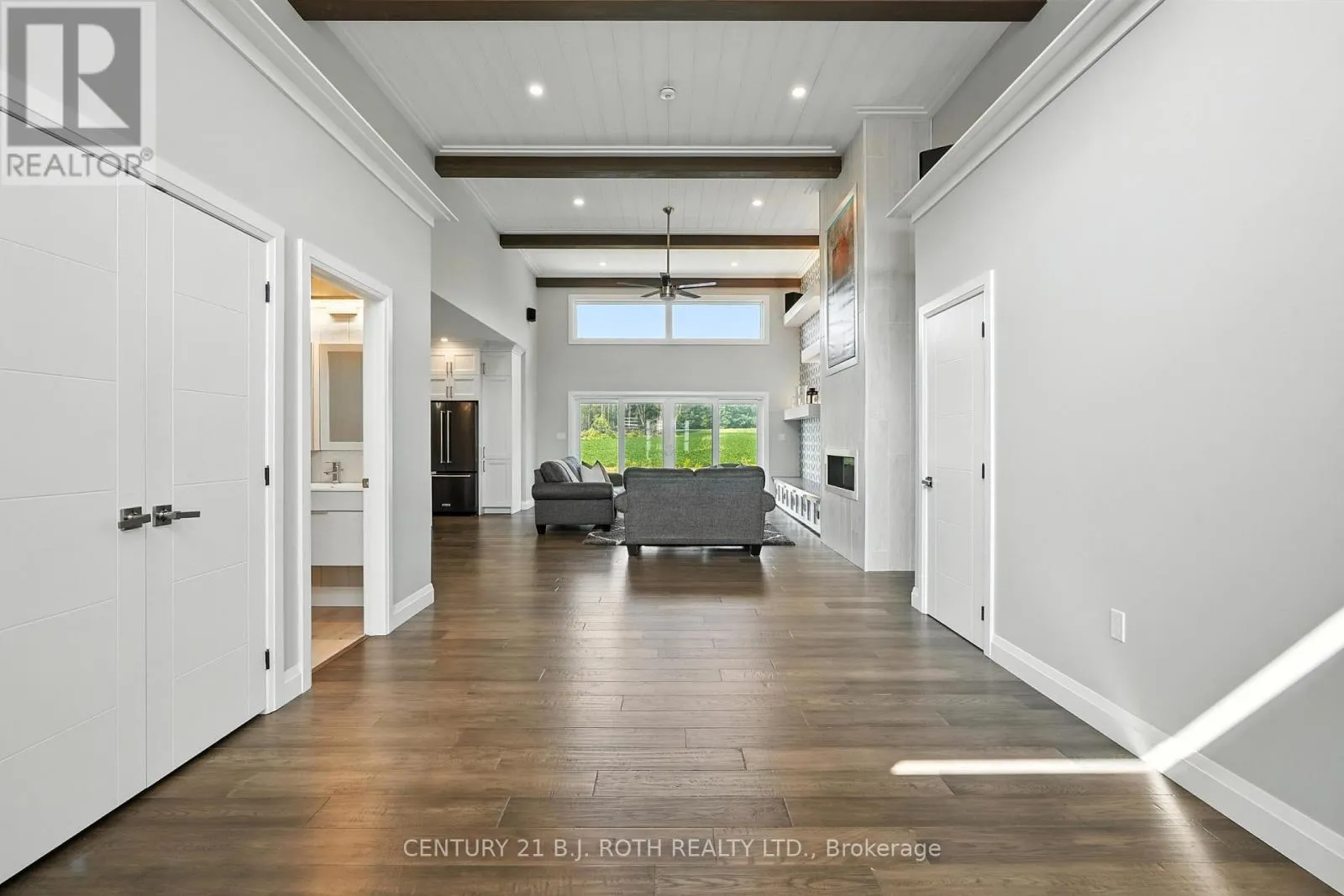 Hwy 11 to Brennan Line A Masterpiece of Modern Elegance in a Tranquil Country Setting. Prepare to be captivated by this custom-built bungalow a residence that redefines luxury living. Meticulously crafted with premium upgrades throughout, this home offers an exquisite blend of opulence, functionality, and serene countryside charm, all just minutes from Orillia. Step inside the expansive open concept main level, where natural light floods through oversized windows, illuminating every curated detail. The heart of the home an entertainers dream kitchen features: massive quartz-topped island, full wet bar, generous walk-in pantry and Custom cabinetry with designer lighting. Flowing seamlessly from the kitchen is the great room, a dramatic space boasting 14-ft beamed and shiplap ceilings, a striking fireplace, and custom LED ambient lighting. Step through oversized glass doors to a grand stone patio, ideal for alfresco dining and sophisticated outdoor entertaining. The primary suite is your personal sanctuary, complete with: spa inspired 5-piece ensuite featuring a freestanding soaker tub, luxurious walk-in shower, and dual vanities, fully outfitted walk-in closet with custom storage solutions. Two additional generously sized bedrooms share a designer 5-piece bath, while the main floor is completed by a stylish mudroom, laundry room, and wide plank engineered hardwood flooring throughout. Descend to the fully finished ICF basement, where possibilities abound. This level offers: An additional bedroom and full bathroom, A state of the art synthetic ice hockey rink (a truly rare and extraordinary feature in a private residence), Expansive space for a home theatre, gym, or recreation lounge. The oversized, heated 3-car garage is equally impressive, fully insulated with epoxy coated floors. Set on a peaceful lot backing onto open farmland, the property offers direct access to the OFSC snowmobile trail, and is ideally situated just a short drive to local beaches, shopping, dining, and more. (id:27476)