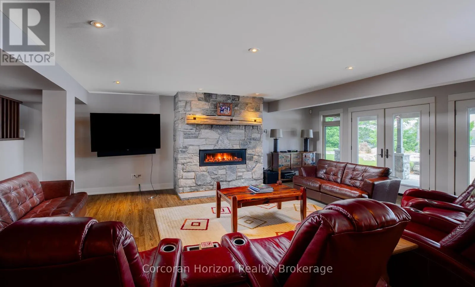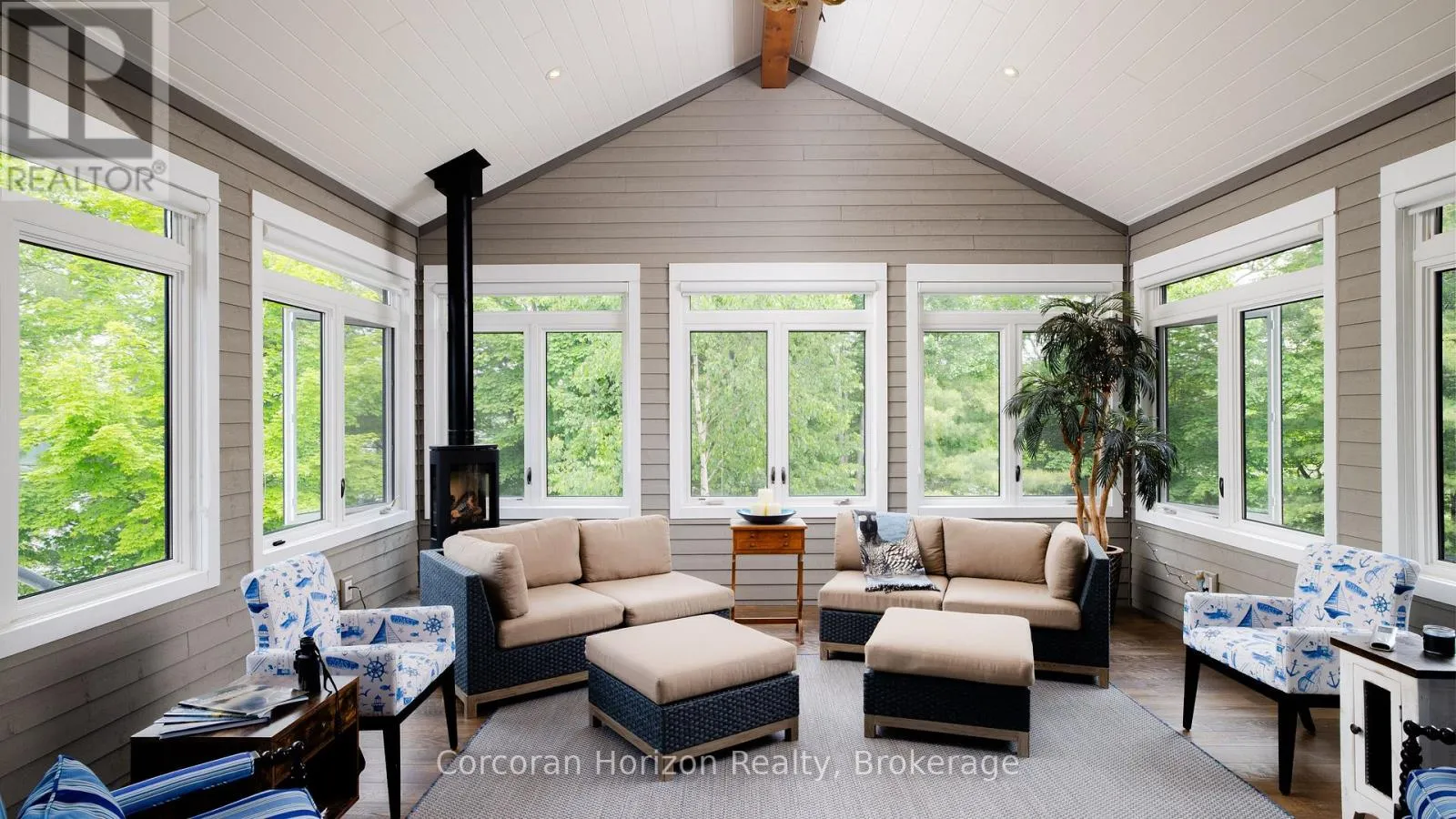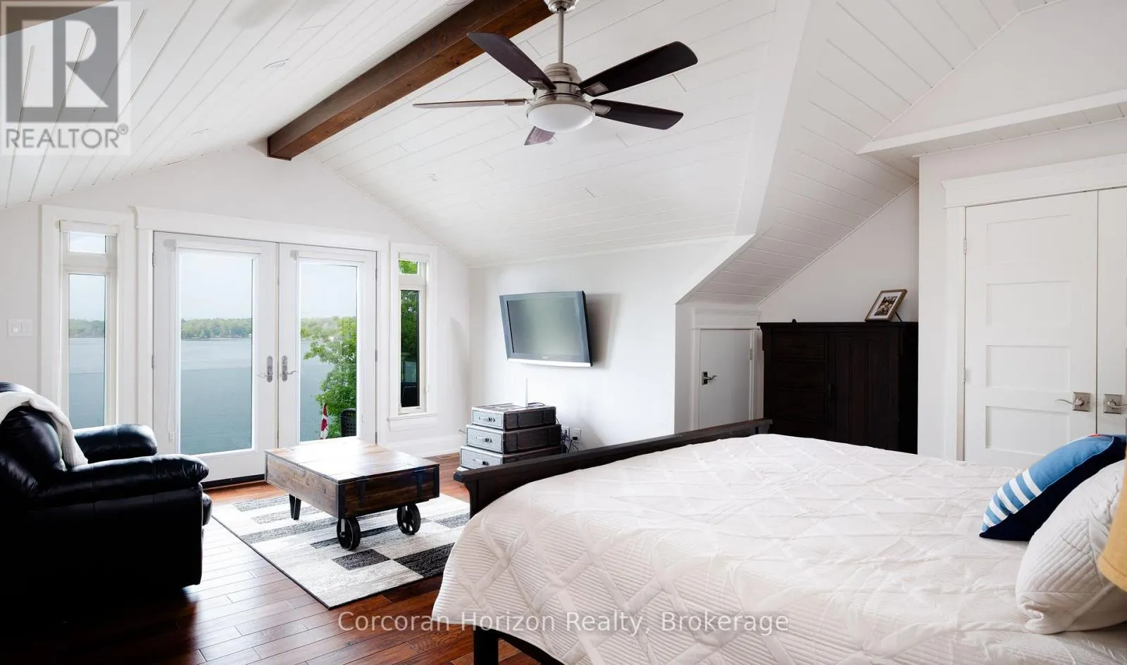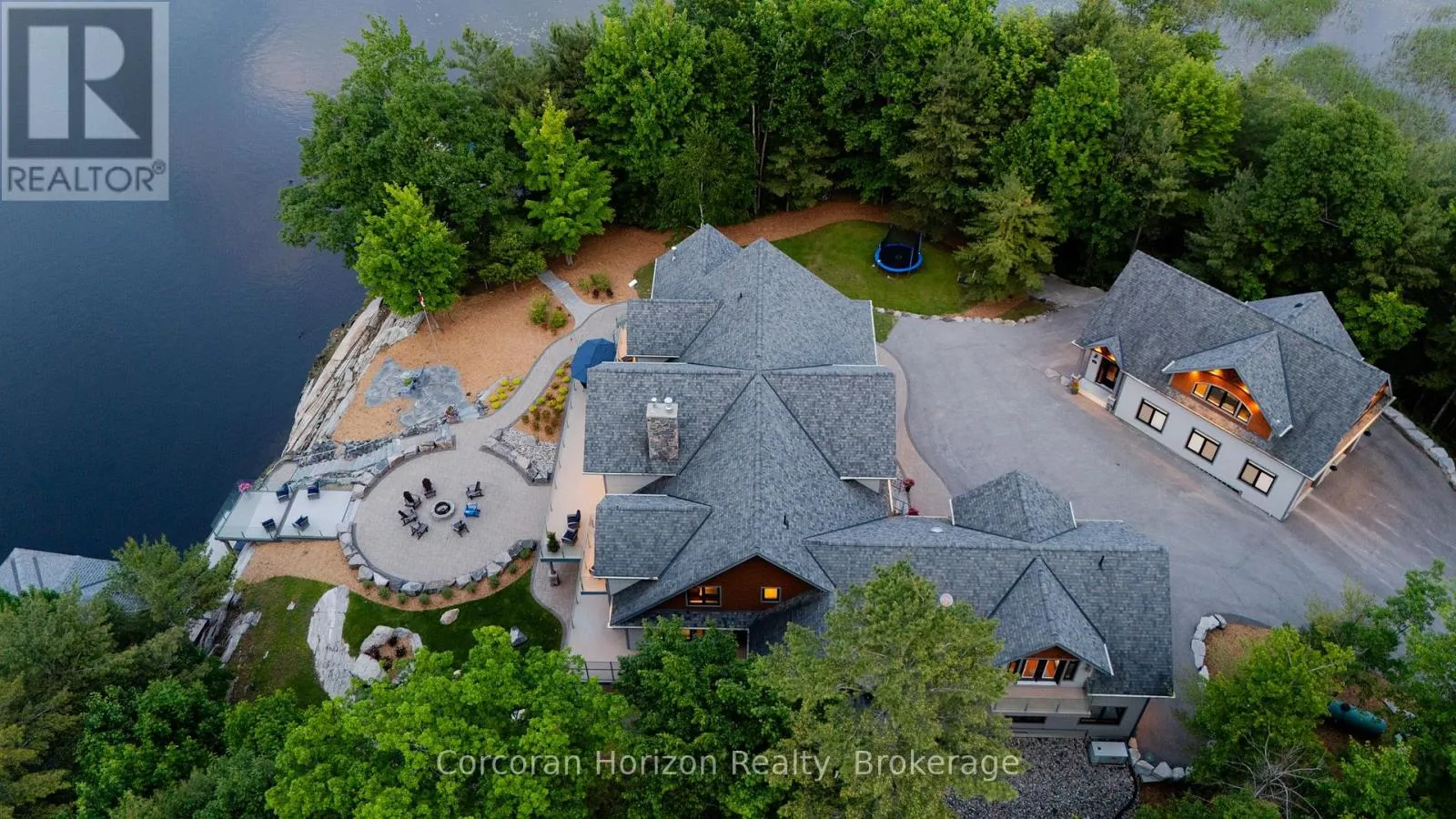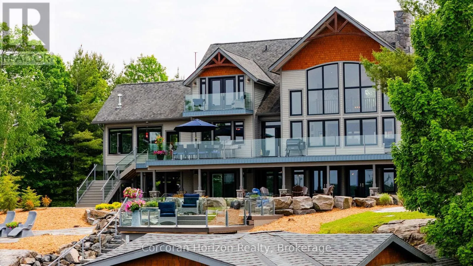 Highway 400 North, Exit Quarry Road, left onto Hodgins Road, right on Narrows Road then left onto Narrows Road/Pilkington Lane, property at end of street Welcome to the crown jewel of Ontario's world-renowned cottage country an exquisite combination of 10,000+ sq. ft. custom-built estate retreat perched on the exclusive southeast tip of Pilkington Island, one of only five estate lots with rare year-round road access and just 90 minutes from Toronto, minutes off Highway 400. This private peninsula offers over 550+ feet of pristine shoreline on Gloucester Pool, part of the historic Trent-Severn Waterway, featuring deep, clean water ideal for endless boating, swimming, and waterfront relaxation. A rare double-slip steel boat port, separate floating dock, and breathtaking panoramic views ensure every sunset is unforgettable. Inside, luxury abounds with a grand Great Room and floor-to-ceiling granite fireplace, a formal dining room for 16, a gourmet kitchen with professional appliances and walk-in pantry, a serene Muskoka Room, a main-floor Master and VIP suite, four upper-level bedroom suites with a loft and kids den, plus a walk-out lower level with two additional suites, granite fireplace, wet bar, games and exercise rooms. The estate also includes an oversized attached double garage, a detached garage with a nanny/in-law suite above, newly paved driveway, and fresh landscaping the ultimate blend of exclusivity, elegance, and the cottage lifestyle. (id:27476)