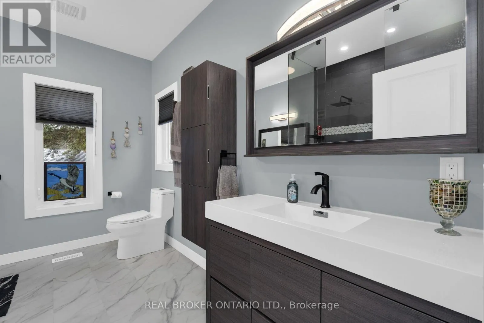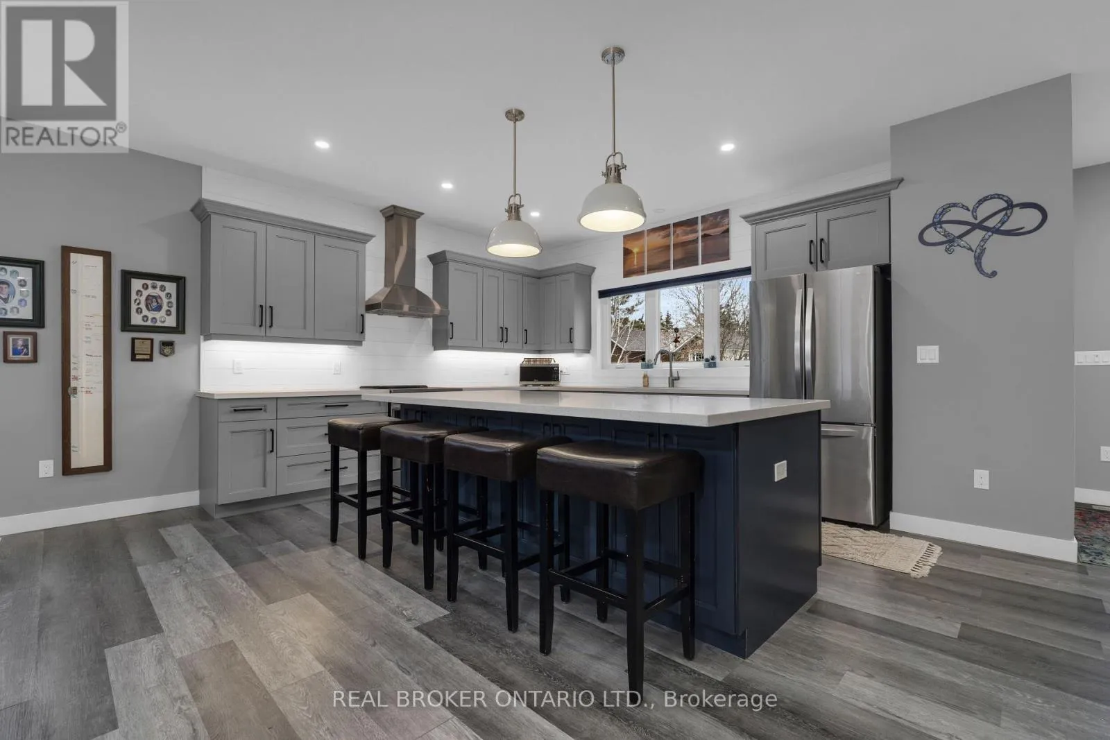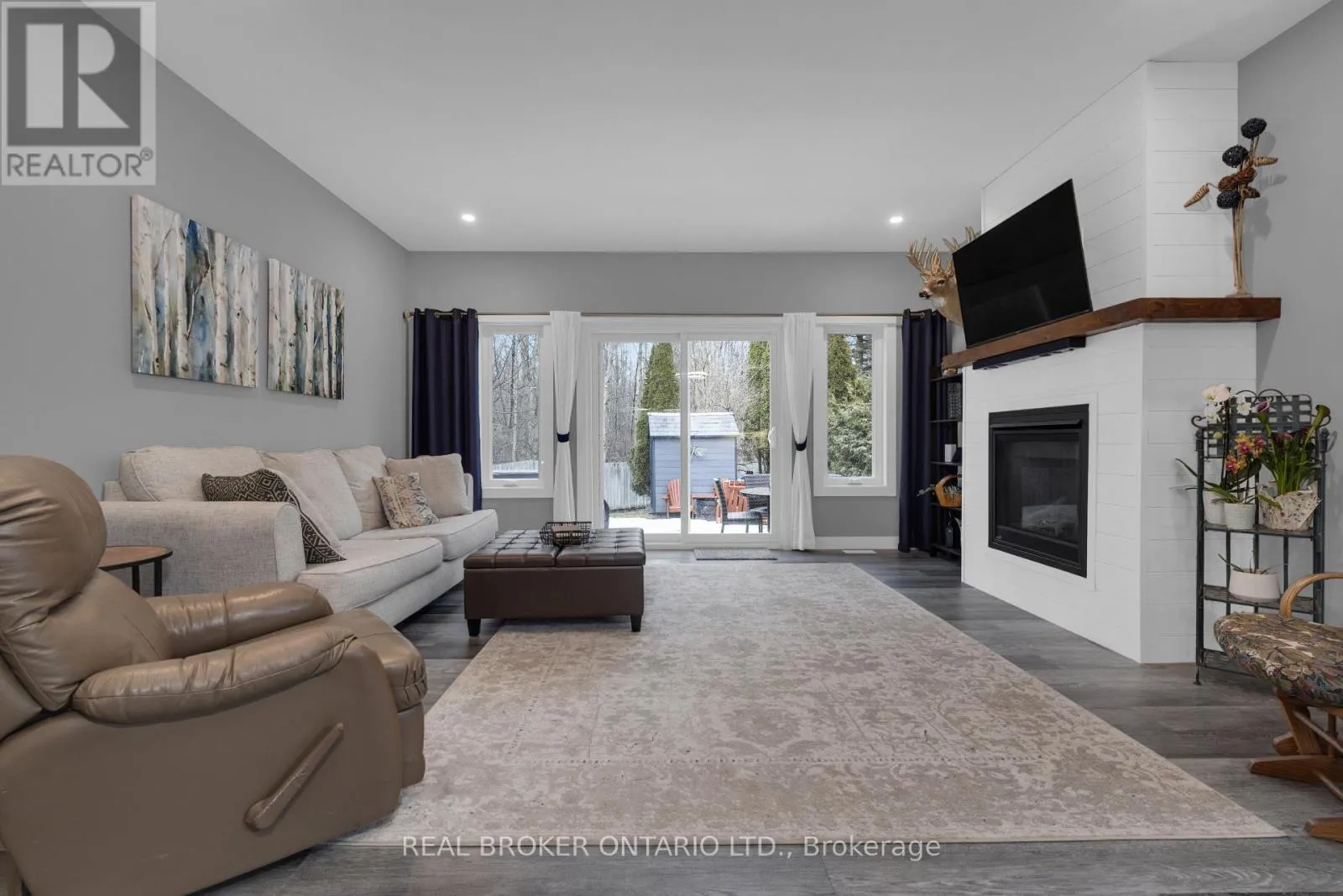 River to Brick Pond Welcome to this stunning 5 year young custom bungalow backing onto lush greenery. With 3300 square feet, yes you read that right, of living space on two levels (both with 9-foot ceilings) there is no lack of space here. Located in the adorable village of Coldwater you will feel at home as soon as you arrive. With plenty of parking, landscaped gardens with rich armor stone and a covered front porch there are many perfect spots for your morning coffee. Once inside a massive entertainers area with huge kitchen, pot lights, island big enough for the best get togethers, quartz countertops, two-toned cabinetry with soft close and ship lapped accents. The home is carpet free and the bright living space has a cozy gas fireplace and opens up to the privacy filled yard with multiple entertainers areas, firepit, shed and no rear neighbours gazing in. Back inside the living space also has a coffee bar/wine station with extra storage. Down the hall two kids bedrooms with 4-piece bath with floating vanity and the gorgeous primary bedroom with walk-out to back yard. The huge walk-in closet also has main floor laundry and you could get lost in the bathroom with over-sized shower with dual shower heads, make-up vanity and tons of natural light. Before heading downstairs you will catch the inside garage entrance and double front entry closet. Downstairs an additional bathroom, bedroom (with cork flooring and pot lights) and rec space with soaring ceilings . 2 minutes to downtown, hardware store, beer store, bank, florist, home decor, restaurants, post office and such, 4 minutes to Foodland, 1 minute to school, 10 minutes to Mount St. Louis ski hills. 2021 custom build, central vacuum, generlink, back up battery operated sump pump and house under Tarion warranty (id:27476)