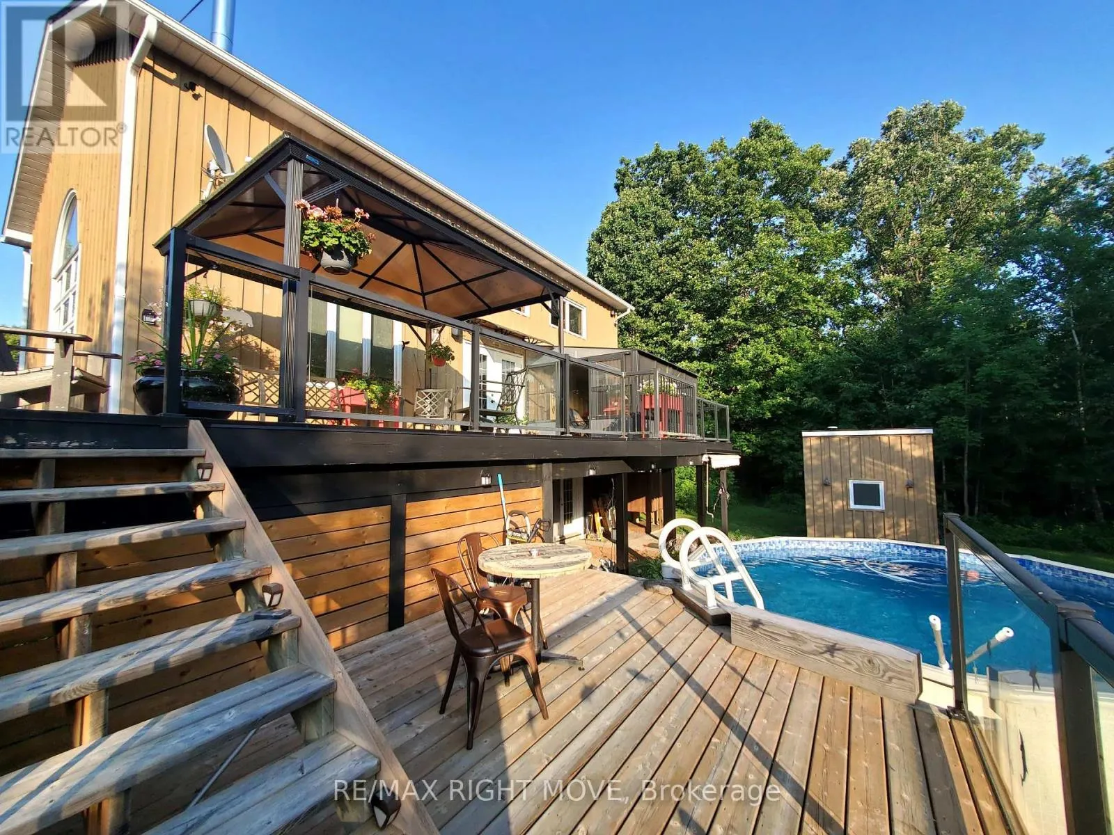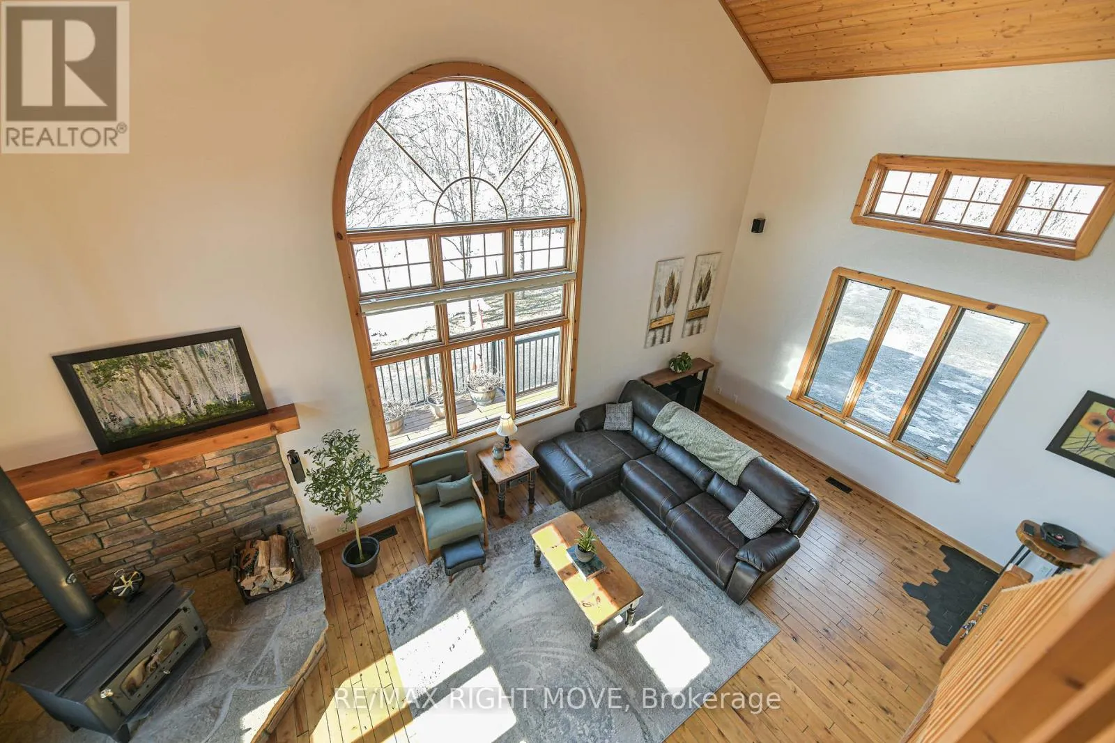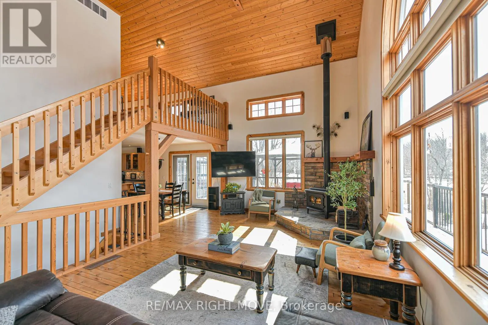Cross Streets: Uhthoff Line & Foxmead road. ** Directions: From Hwy. 11 South take West st / Burnside Line. Turn left onto Burnside, follow until Foxmead. Turn left onto Foxmead. Turn right onto Uhthoff Line. House is on the left hand side. Welcome to 2018 Uhthoff Line in beautiful Severn, Ontario-where privacy, comfort, and lifestyle come together. This custom-built bungaloft, constructed in 2009, offers over 2,900 sq. ft. of thoughtfully designed living space with 3 bedrooms and 3 bathrooms, showcasing true pride of ownership throughout. The main living area is highlighted by soaring cathedral ceilings and an inviting open-concept layout that seamlessly connects the living room, kitchen, and dining space-perfect for both everyday living and entertaining. The kitchen features stainless steel appliances and is designed to inspire any home chef. Retreat to the spacious lofted primary suite, complete with a luxurious 5-piece ensuite and an expansive walk-in closet, creating a private and relaxing escape. This home offers excellent indoor-outdoor flow with two walkouts-one from the kitchen leading to a composite deck, and another from the lower level to the backyard. Two wood stoves add warmth and charm, enhancing the home's cozy atmosphere. Step outside and enjoy your own private oasis. The 1-acre property is surrounded by approximately 200 acres of farmland and forest, offering peace and seclusion. Outdoor features include a 16' x 16' above-ground pool, sauna, outdoor shower, and two fire pits-ideal for entertaining or relaxing summer nights. Additional highlights include a heated attached 2-car garage with a wood stove and a bonus shed-style room, perfect for a workshop or extra storage. The home is located on a quiet, paved dead-end road, offering minimal traffic and maximum tranquility. Recent upgrades include central air conditioning (2021), an owned hot water tank (2024), propane BBQ quick-connects, and an RV plug installed at the side of the garage. Don't miss your opportunity to own this exceptional property and experience country living at its finest. (id:27476)