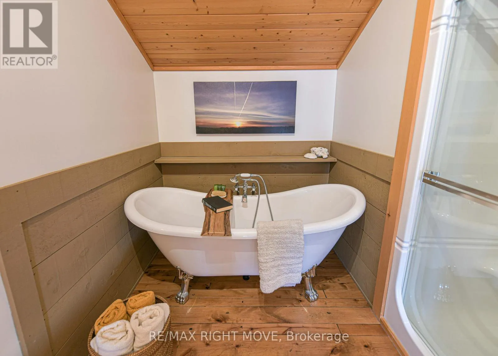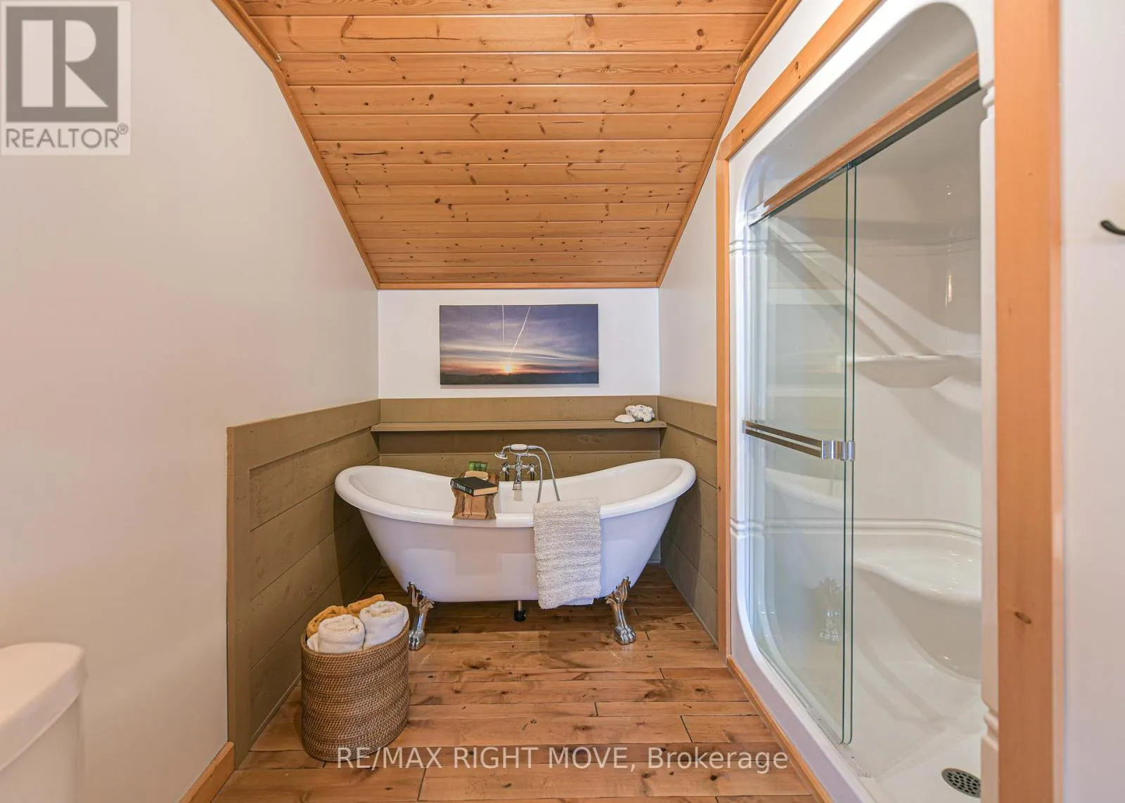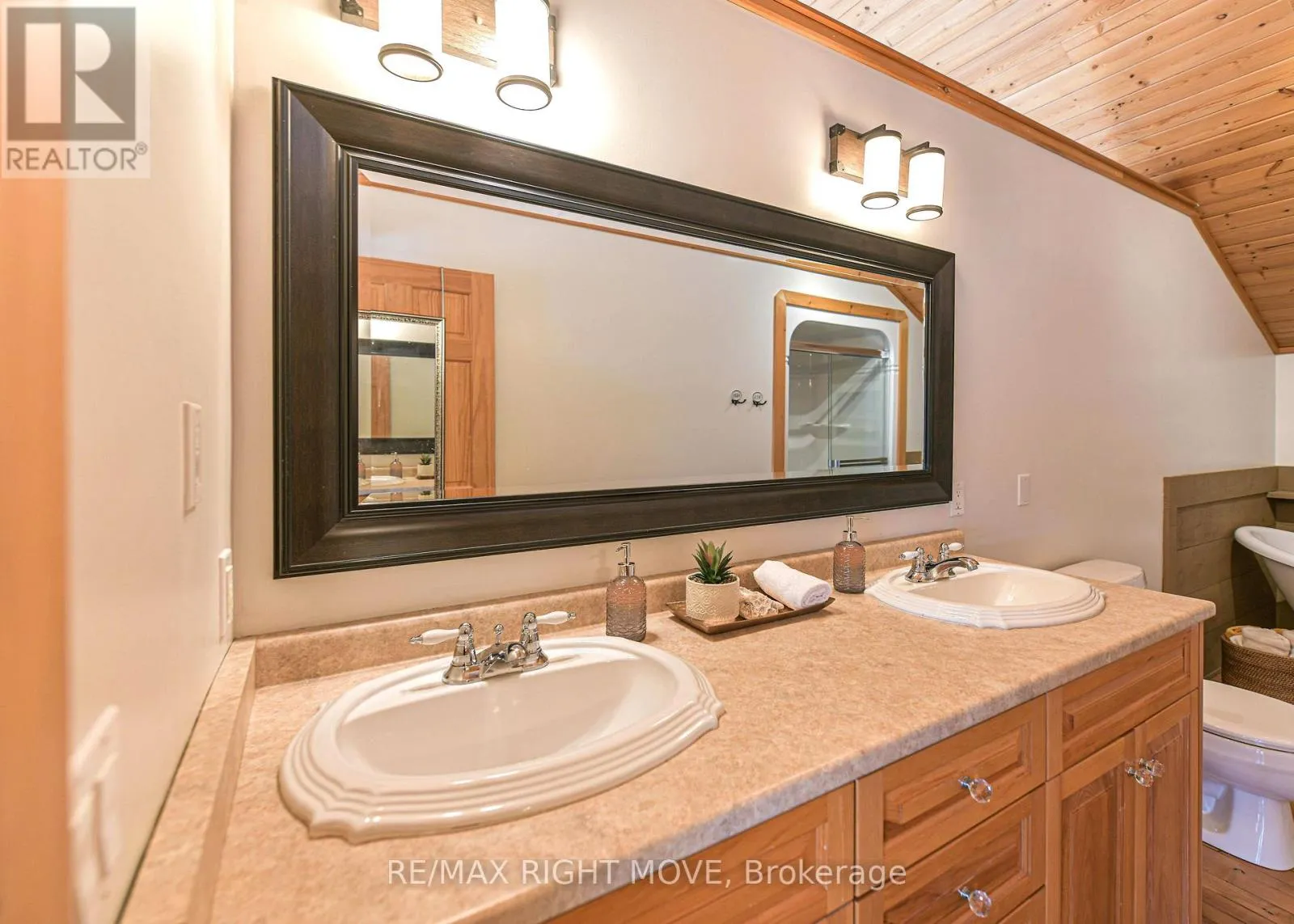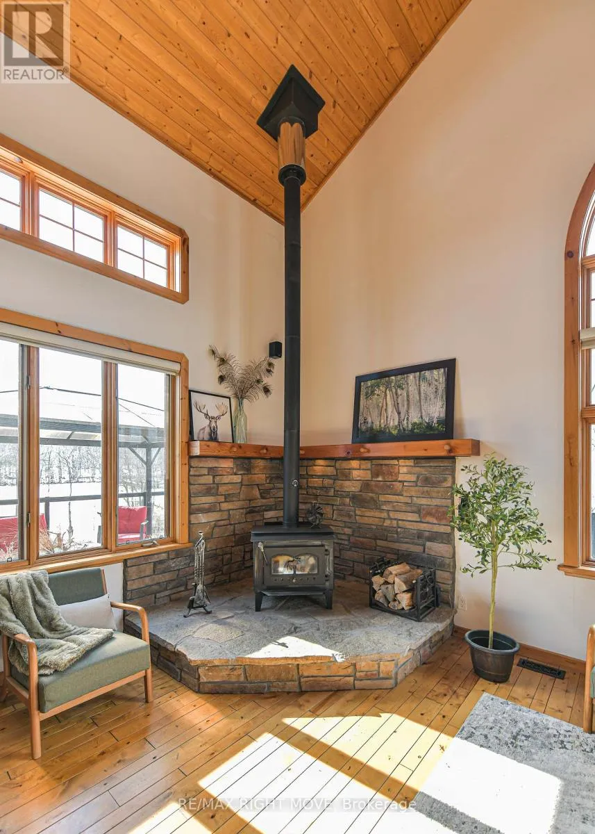 Cross Streets: Uhthoff Line & Foxmead road. ** Directions: From Hwy. 11 South take West st / Burnside Line. Turn left onto Burnside, follow until Foxmead. Turn left onto Foxmead. Turn right onto Uhthoff Line. House is on the left hand side. Welcome to 2018 Uhthoff Line in beautiful Severn, Ontario-where privacy, comfort, and lifestyle come together. This custom-built bungaloft, constructed in 2009, offers over 2,900 sq. ft. of thoughtfully designed living space with 3 bedrooms and 3 bathrooms, showcasing true pride of ownership throughout. The main living area is highlighted by soaring cathedral ceilings and an inviting open-concept layout that seamlessly connects the living room, kitchen, and dining space-perfect for both everyday living and entertaining. The kitchen features stainless steel appliances and is designed to inspire any home chef. Retreat to the spacious lofted primary suite, complete with a luxurious 5-piece ensuite and an expansive walk-in closet, creating a private and relaxing escape. This home offers excellent indoor-outdoor flow with two walkouts-one from the kitchen leading to a composite deck, and another from the lower level to the backyard. Two wood stoves add warmth and charm, enhancing the home's cozy atmosphere. Step outside and enjoy your own private oasis. The 1-acre property is surrounded by approximately 200 acres of farmland and forest, offering peace and seclusion. Outdoor features include a 16' x 16' above-ground pool, sauna, outdoor shower, and two fire pits-ideal for entertaining or relaxing summer nights. Additional highlights include a heated attached 2-car garage with a wood stove and a bonus shed-style room, perfect for a workshop or extra storage. The home is located on a quiet, paved dead-end road, offering minimal traffic and maximum tranquility. Recent upgrades include central air conditioning (2021), an owned hot water tank (2024), propane BBQ quick-connects, and an RV plug installed at the side of the garage. Don't miss your opportunity to own this exceptional property and experience country living at its finest. (id:27476)