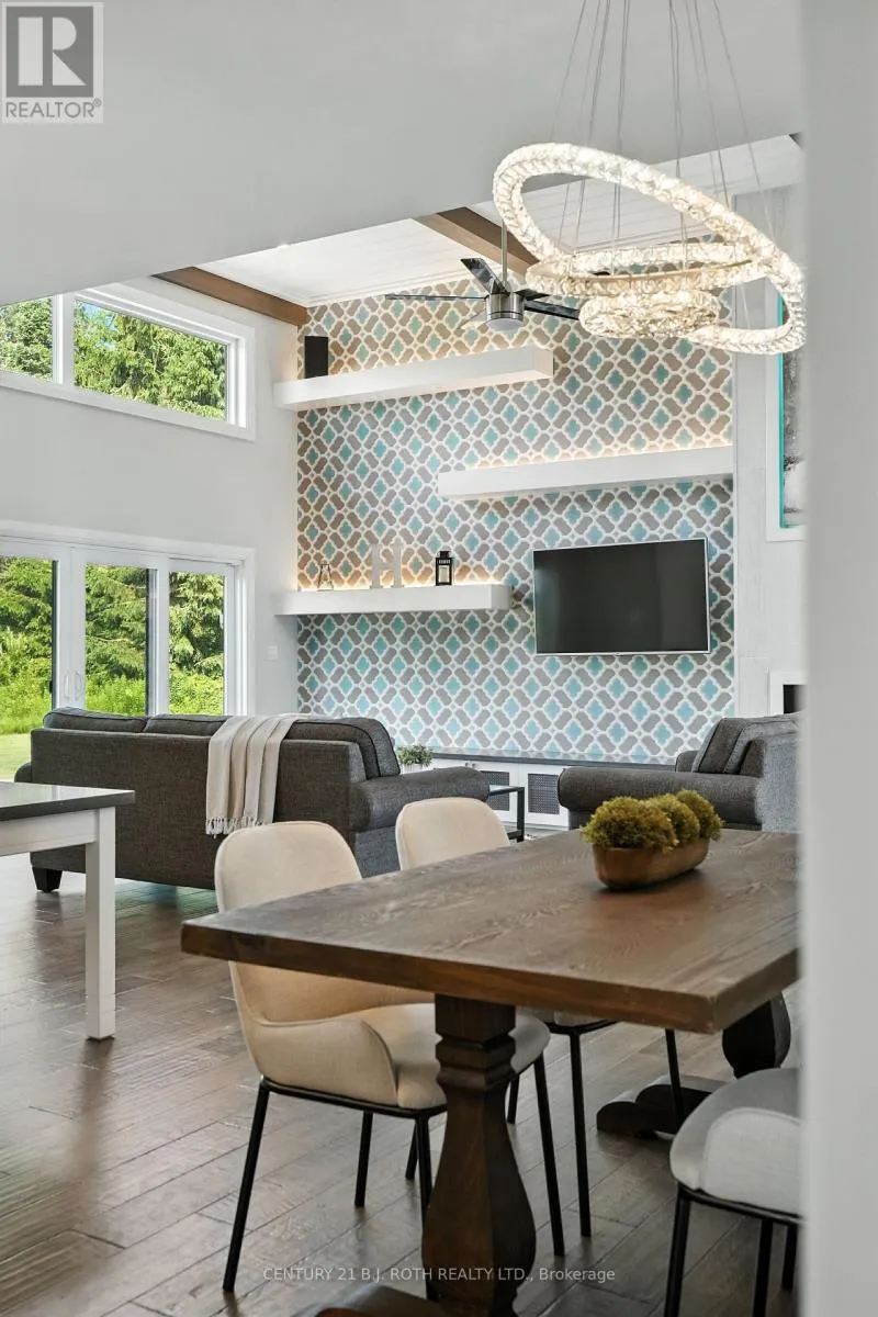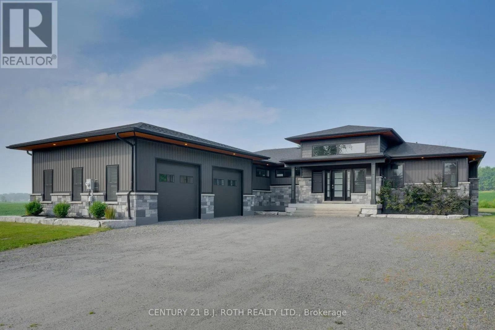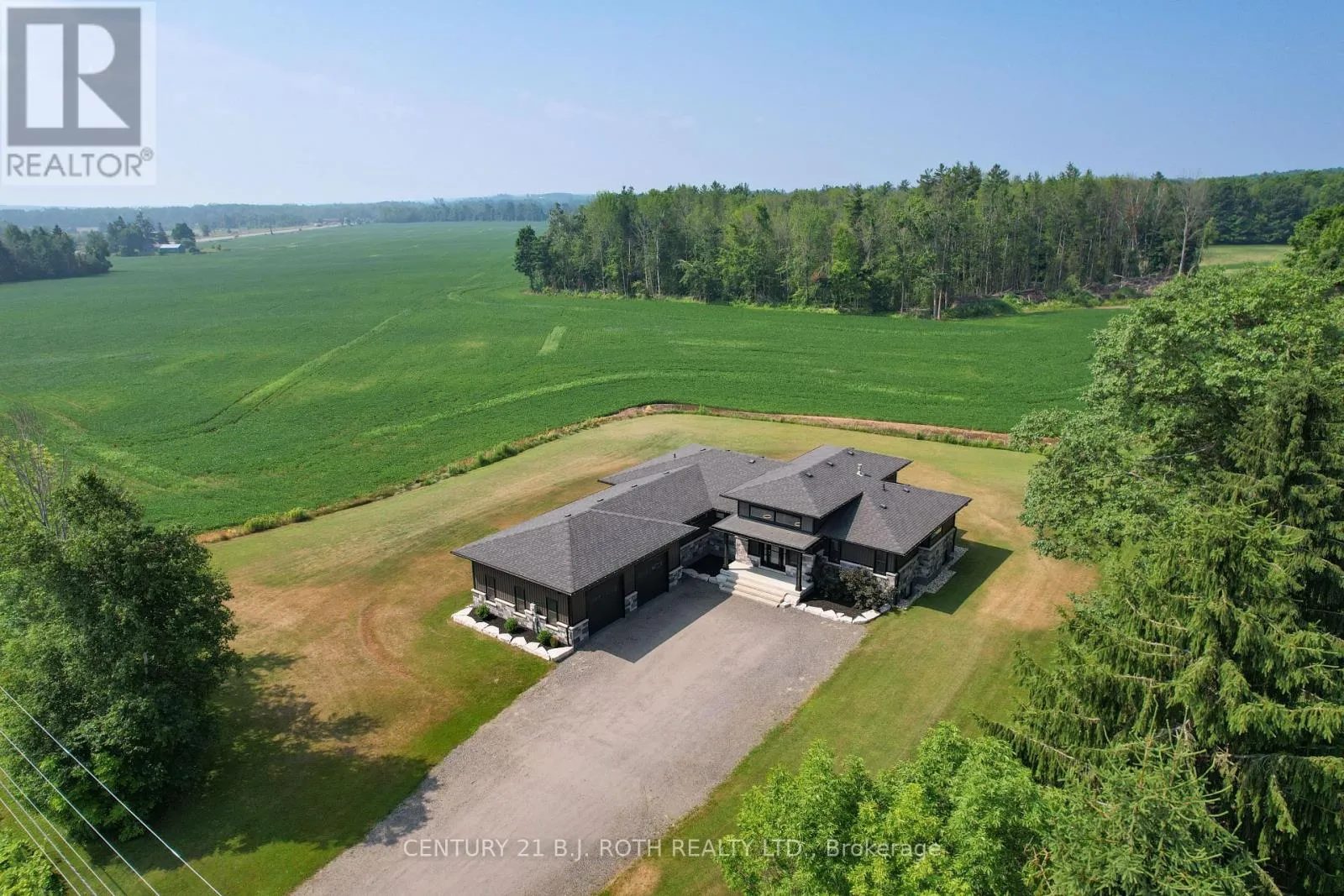 Hwy 11 to Brennan Line A Masterpiece of Modern Elegance in a Tranquil Country Setting. Prepare to be captivated by this custom-built bungalow a residence that redefines luxury living. Meticulously crafted with premium upgrades throughout, this home offers an exquisite blend of opulence, functionality, and serene countryside charm, all just minutes from Orillia. Step inside the expansive open concept main level, where natural light floods through oversized windows, illuminating every curated detail. The heart of the home an entertainers dream kitchen features: massive quartz-topped island, full wet bar, generous walk-in pantry and Custom cabinetry with designer lighting. Flowing seamlessly from the kitchen is the great room, a dramatic space boasting 14-ft beamed and shiplap ceilings, a striking fireplace, and custom LED ambient lighting. Step through oversized glass doors to a grand stone patio, ideal for alfresco dining and sophisticated outdoor entertaining. The primary suite is your personal sanctuary, complete with: spa inspired 5-piece ensuite featuring a freestanding soaker tub, luxurious walk-in shower, and dual vanities, fully outfitted walk-in closet with custom storage solutions. Two additional generously sized bedrooms share a designer 5-piece bath, while the main floor is completed by a stylish mudroom, laundry room, and wide plank engineered hardwood flooring throughout. Descend to the fully finished ICF basement, where possibilities abound. This level offers: An additional bedroom and full bathroom, A state of the art synthetic ice hockey rink (a truly rare and extraordinary feature in a private residence), Expansive space for a home theatre, gym, or recreation lounge. The oversized, heated 3-car garage is equally impressive, fully insulated with epoxy coated floors. Set on a peaceful lot backing onto open farmland, the property offers direct access to the OFSC snowmobile trail, and is ideally situated just a short drive to local beaches, shopping, dining, and more. (id:27476)