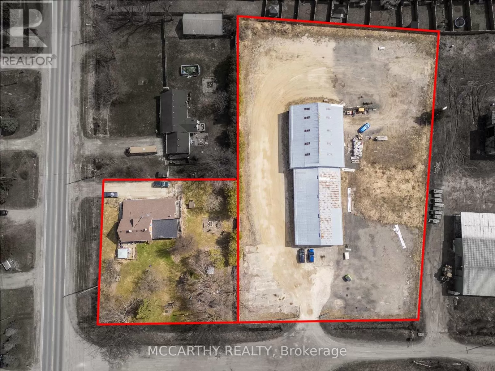 Hwy 89 & Hwy 10 An exceptional opportunity For Entrepreneur, Many uses in C4 zoned 2 acre in town fenced and gated lot. 8500 sq ft building Shop and or retail, plenty of parkin in fenced yard in the West end of Shelburne on Main St W. The Shop in the back half features 4000 sq ft with a 14 ft x 12 ft door, 16 ft ceilings heated shop with concrete floor 600 AMP 240 volts, ideal for various industrial or storage needs, two offices and a 2-pc bathroom. The 4500 sq ft showroom/workshp in the front half boasts an open concept layout, perfect for retail or office space, a kitchenette. Property is also for Sale with property next Door. Development oportunity for future minded for Plaza and other needed retail space. **EXTRAS** With 24-hour notice required for showings, Monday to Friday only. this versatile property presents endless possibilities for entrepreneurial endeavors. Wood working equipment for sale negotiable. (id:27476)