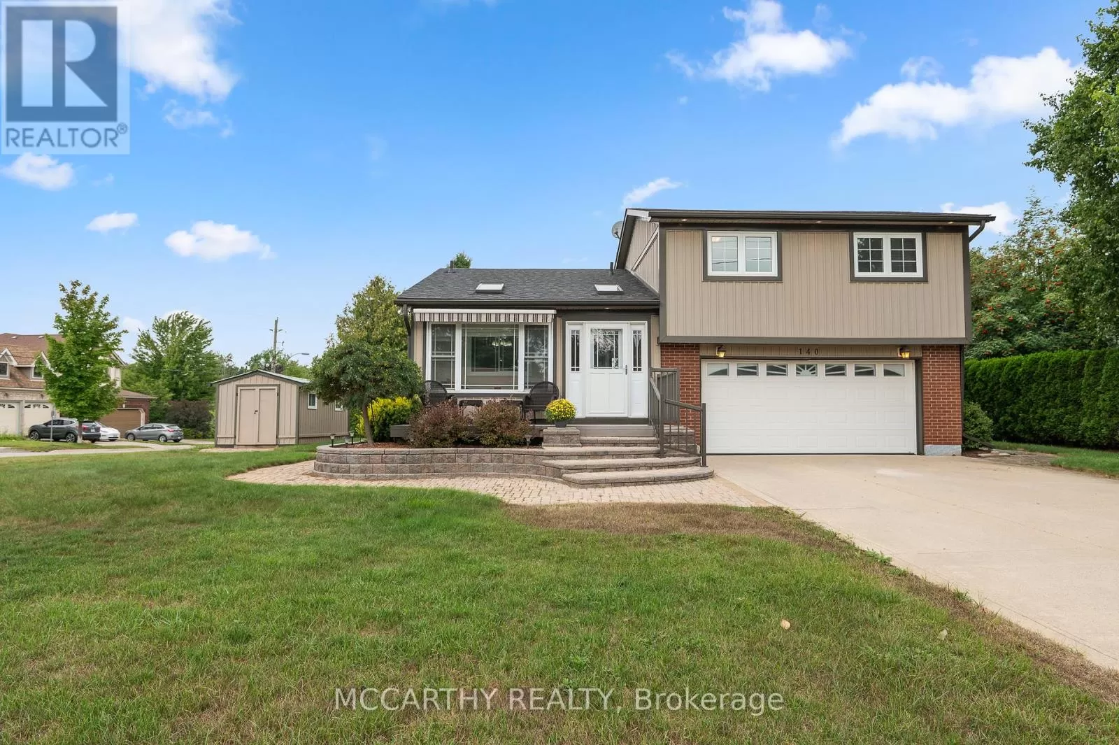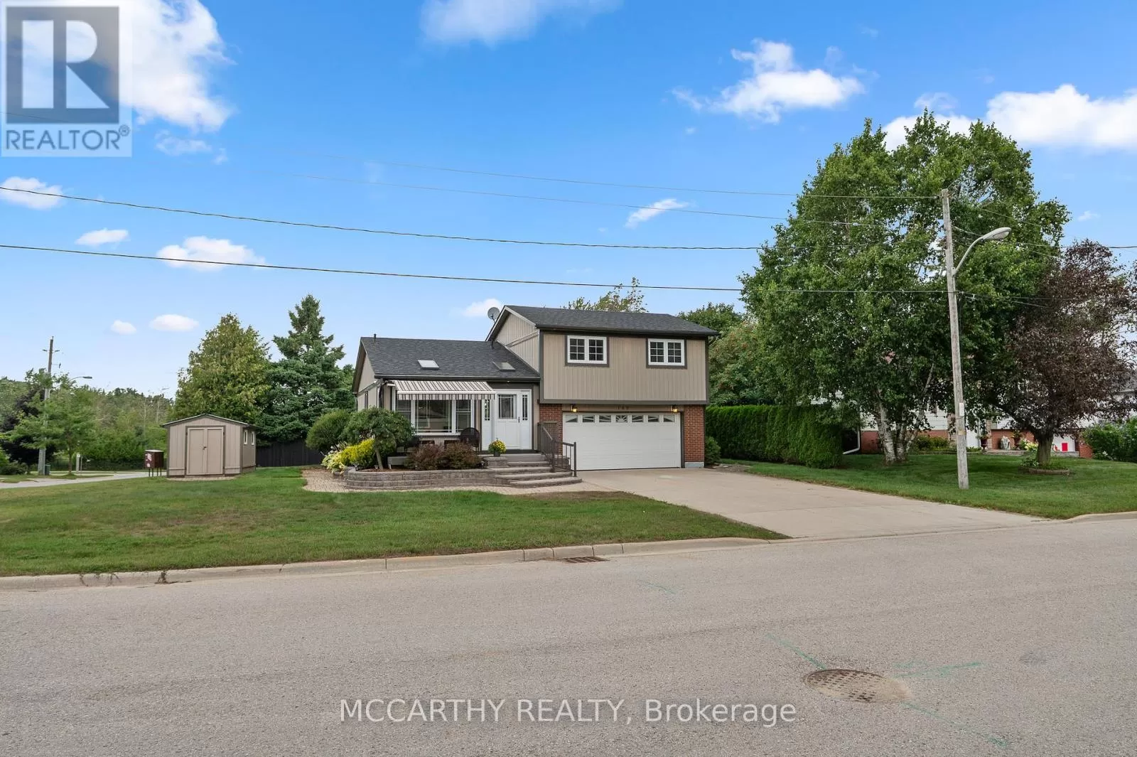 Cross Streets: Cedar St and Ann St. ** Directions: Owen Sound St ( Hwy 10) to Jane St to Cedar St North to ann St on the N E corner. Corner lot with large lot 80 x 100ft, 3 Bedroom 2 Bathroom well maintained 3 level Side split. Pretty entrance of paving stone walkway around the house and steps up to a welcoming deck, with pretty motorized awning. Come into the bright and airy 3 season sunroom. Large foyer with tile floor, double closet w modern sliding doors. Eat in Kitchen with plenty of cupboards with large window over double sink. Hardwood floors in dining room and Living room. Living room has pretty gas fireplace and large picture window over looking the large deck. Eat dinner in the large Dining room that is combined with the living room. Walk out from the dining room to the back deck and spacious back yard, great for family time or entertaining. wooden gazebo covers a Hot Tub. Double door gate to back yard. Spacious side yard with a large wood shed approx 10 x 16ft with hydro. Upper level has three good sized bedrooms and a spacious 4 piece Bathroom. Lower level Rec room has cozy feel with gas fireplace and is spacious and plenty of room for family time and entertaining. 2nd Bathroom has a large walk in tiled shower. The laundry room with plenty of cabinets for storage and folding. Utility room is combined with the laundry room. Need space for parking, this is it, 2 car garage plus concrete driveway with parking for 4 plus, total 6 parking spots, Great for the working couple, work vehicle, recreation vehicle, visitors or extended family cars. (No need to worry about winter parking spots. )Street is quiet as not a drive thru street, Corner lot is large and has good size on side and back yard. Very close to Elementary and Secondary schools, parks, recreation/arena. Perfect well maintained home for family living. Desired location, Move in ready. Book showing today, Must See. (id:27476)