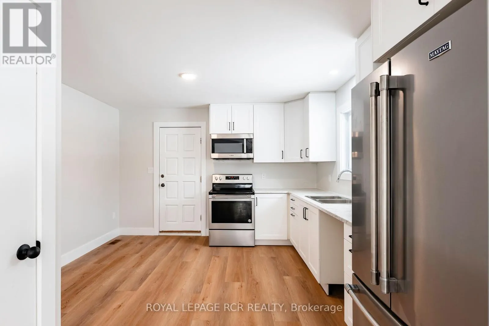 Cross Streets: Victoria St/Franklyn St. ** Directions: Main St, south on Victoria St, east on Franklyn St. Discover this beautifully updated 3-bedroom rental home, designed for modern comfort and convenience. The main level welcomes you with a bright and airy living room with large picture window. The eat-in kitchen shines with newer appliances, including a fridge, stove, microwave, and dishwasher, making meal prep a breeze. Upstairs, you will find a four piece bathroom and three generously sized bedrooms, including the primary bedroom with a walk-out to a large back deck. The deck spans the width of the home, offering stunning views of the expansive backyard with no neighbours behind - ideal for outdoor relaxation and entertaining. A set of stairs leads down from the deck, providing easy access to the backyard. Additional features include private laundry facilities and parking for two vehicles in the driveway. This home combines style, space, and practicality, making it the perfect place to call home. Tenant responsible for 2/3 of utilities. Lawn maintenance included. (id:27476)