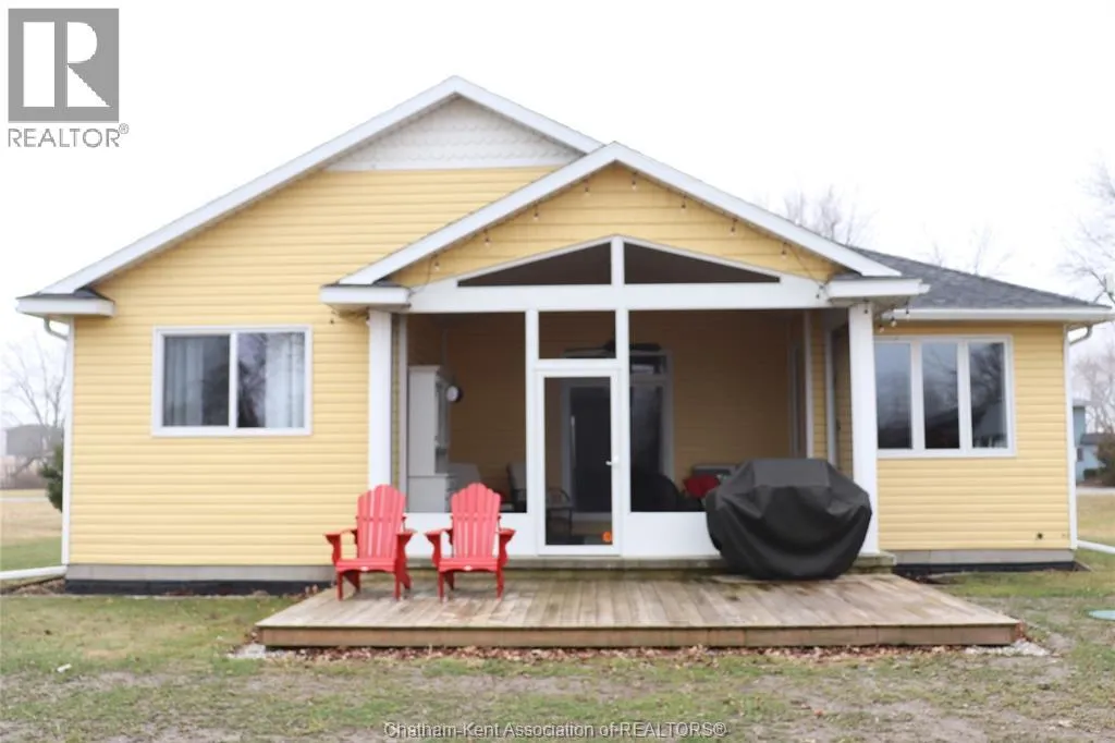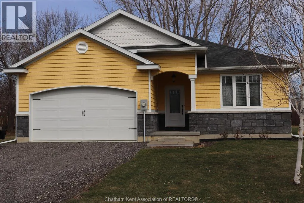 You have found your new (2019) home in the vibrant small community of Shrewsbury, within the Greater Blenheim area. Just a 5 minute walk to the bounty of Rondeau Bay for boating, fishing, winter ice skating, or a nature walk along the marshes of the area. Many canals that can be accessed for kayaking as well. This home is maintenance free with a level yard and a outside storage shed. The home consists of an entry foyer, large common area of kitchen, dining and living room with gas fireplace. The primary bedroom has a vaulted ceiling and is large with an ensuite bath, and a walk in closet Two other bedrooms of good size with a 4 pc bath between them. Kitchen has upgraded cabinets and hard surface counters. Ceilings are 9 feet in height. There is a bonus seasonal 250 square foot sunroom off the rear of the home accessed by patio door from living room. Laundry room is accessible off kitchen with a pantry as well. The attached garage is insulated and approximately 19 x 19'. There is an open porch at the front door which allows a southwest view of a canal and marshland across the street. There is a 200 amp Panel in the garage for future electric car owners access. This sale listing is conditional upon the Sellers purchasing a specific property within 5 days of an accepted Offer. (id:27476)