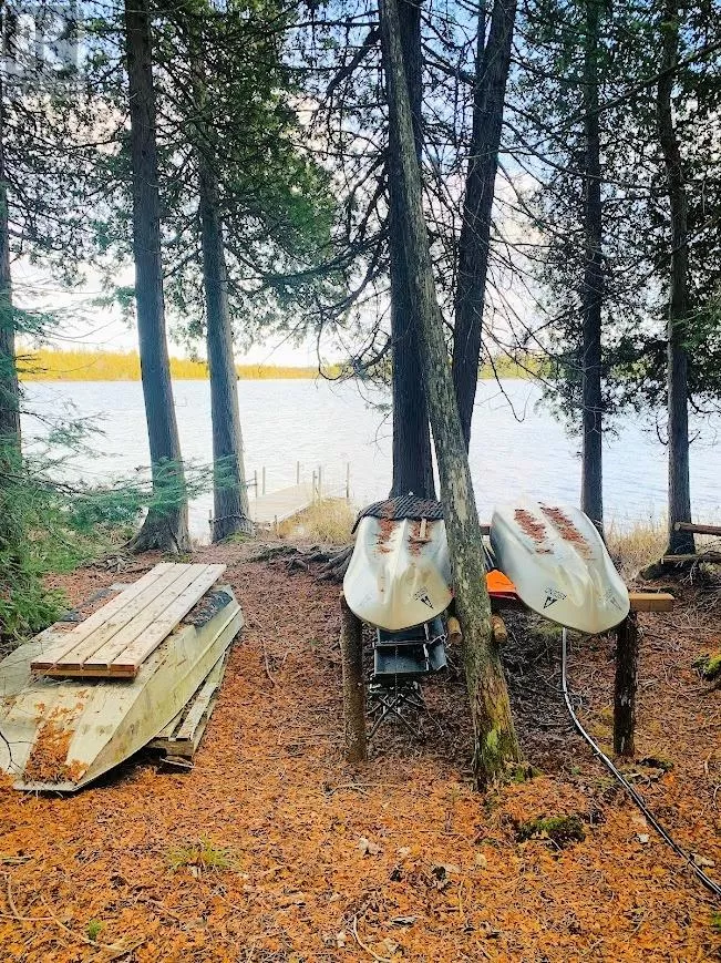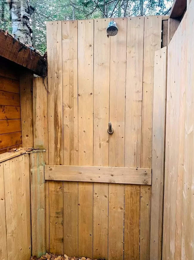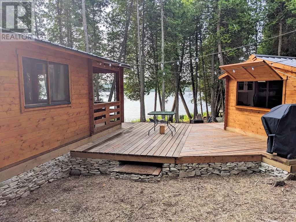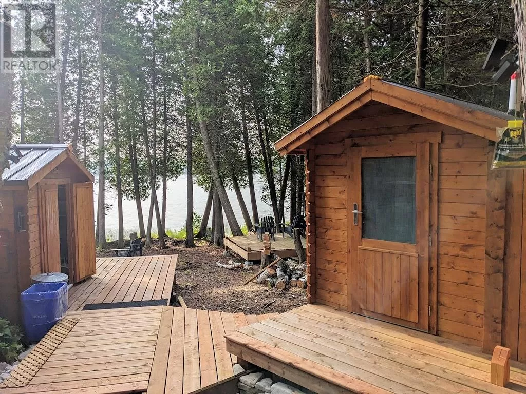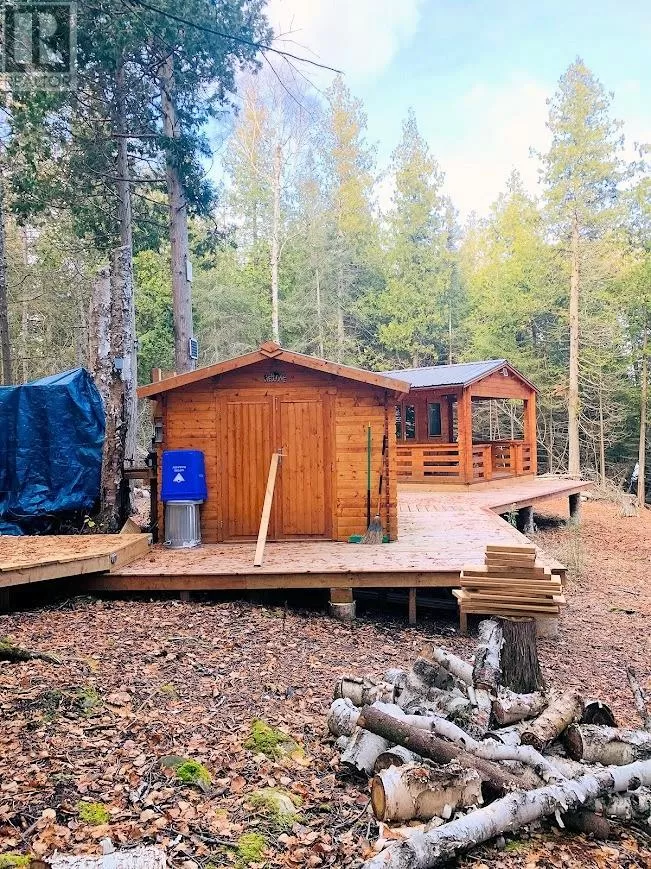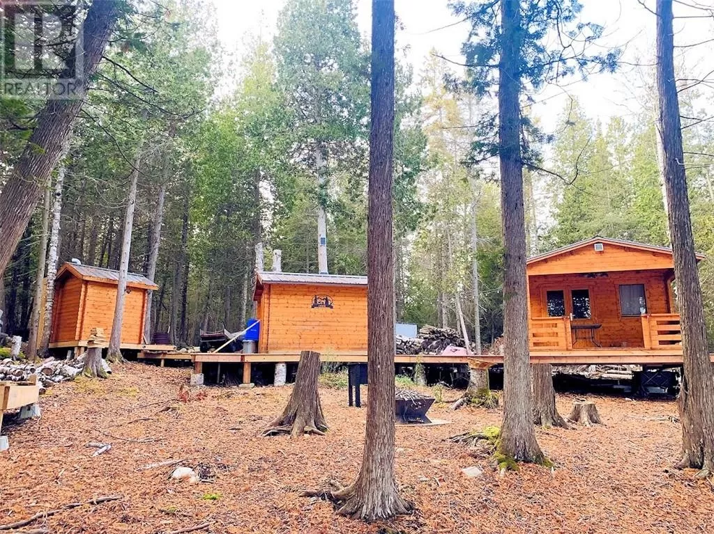 Your piece of paradise along the shores of Little Lake Huron, this rustic stacked log cabin is nestled off the beaten path among the cedar trees. Secluded west end of Manitoulin Island in the unorganized township of Robinson near Silver Water, this charming 3 season cabin beckons with its rustic charm and peaceful ambiance. Parking for 4 vehicles and accessible via a privately maintained road, this property is secluded and private being the perfect escape from the city. The main cabin with a covered porch has a queen size bed, The kitchen and bathroom buildings are all connected by spacious decking. There are solar lights, propane heat and cooking, hot water with generator backup. The bathroom has a modern (2 year old) composting toilet and sink plus a charming outdoor shower. The firepit is the perfect spot for evening drinks and roasting marshmallows, with lots of wood cut and ready for use. The 10x10 tent platform is ready for overnight guests with tent included. Spend your day swimming, fishing or paddling around the warm waters of Little Lake Huron with 104 feet of water frontage and a 16 feet aluminum dock. Take the ATV, just a few minutes ride, down to beautiful Sand Bay with the white bluffs and cooler waters of Lake Huron. With propane heat, this property is perfect in the fall as well. Enjoy the changing colours and if you are a hunter, there are ample deer and small game frequently on the property. Turnkey and ready for your summer memories with a 8x6 feet metal storage shed, propane BBQ, 4 Muskoka chairs, patio table and 4 chairs, Honda ATV, ATV trailer, gas water pump and gas backup generator, all included. $129,000 (1620) (id:27476)