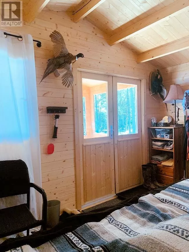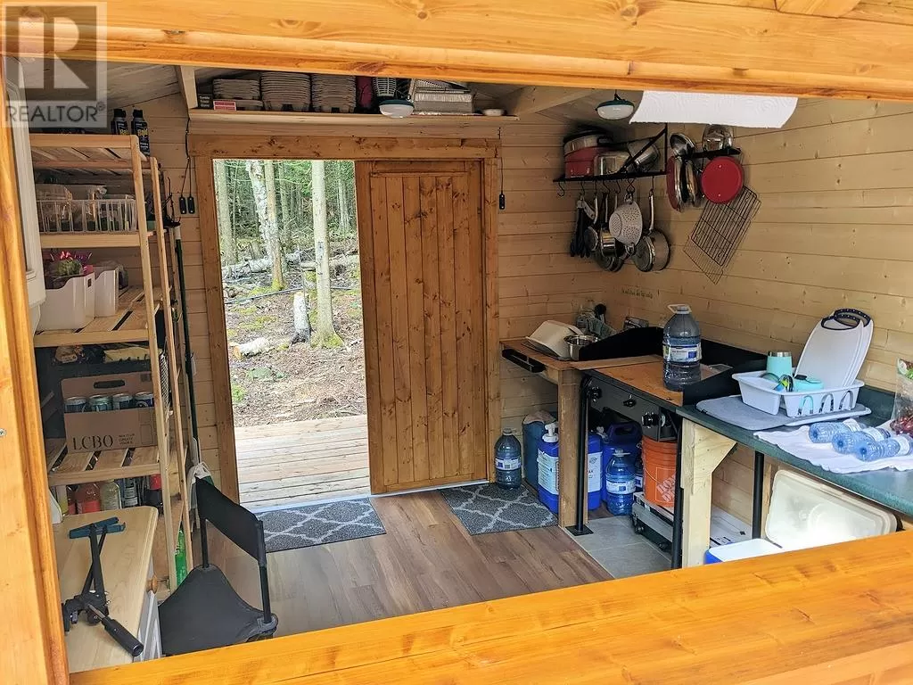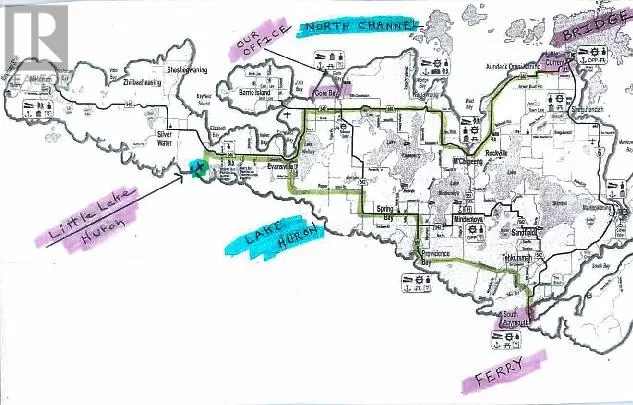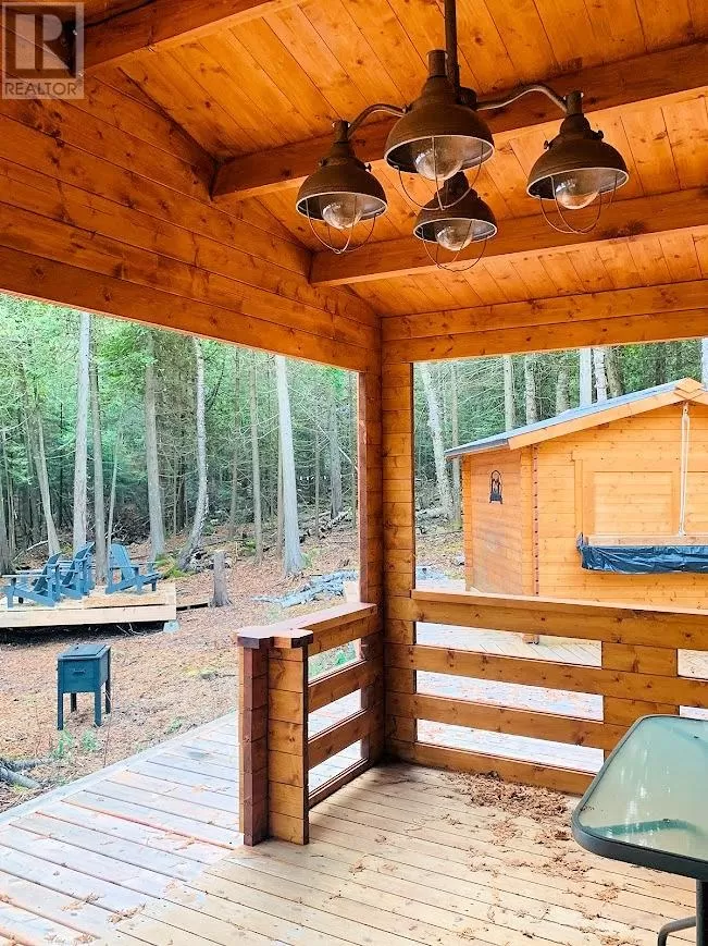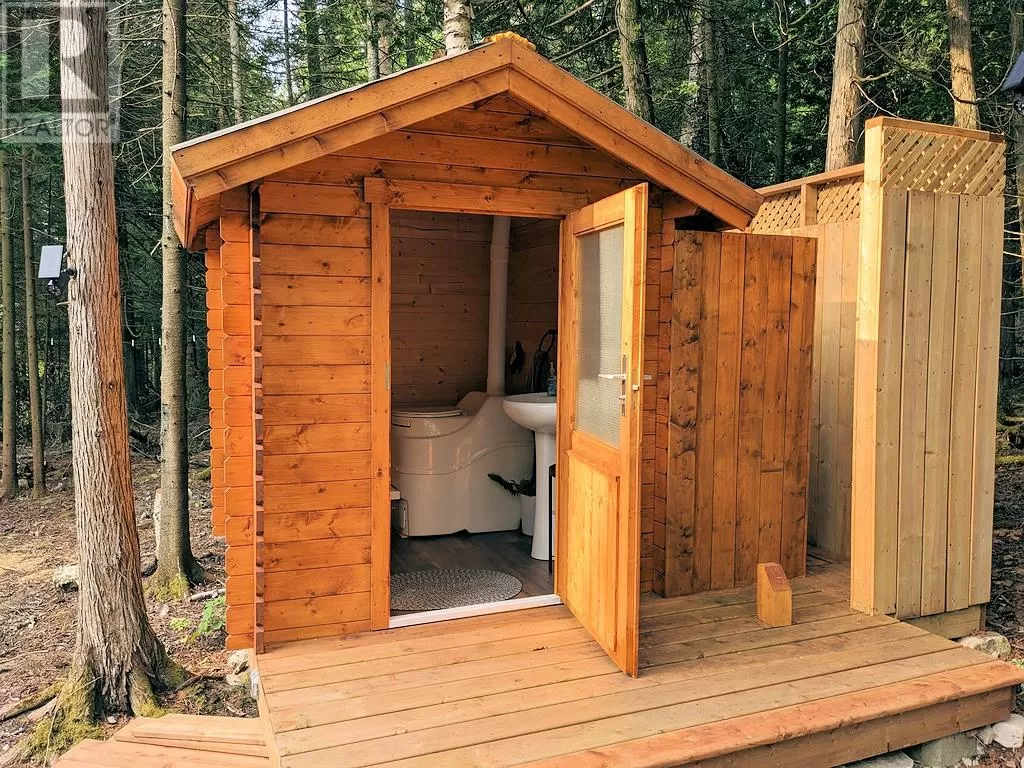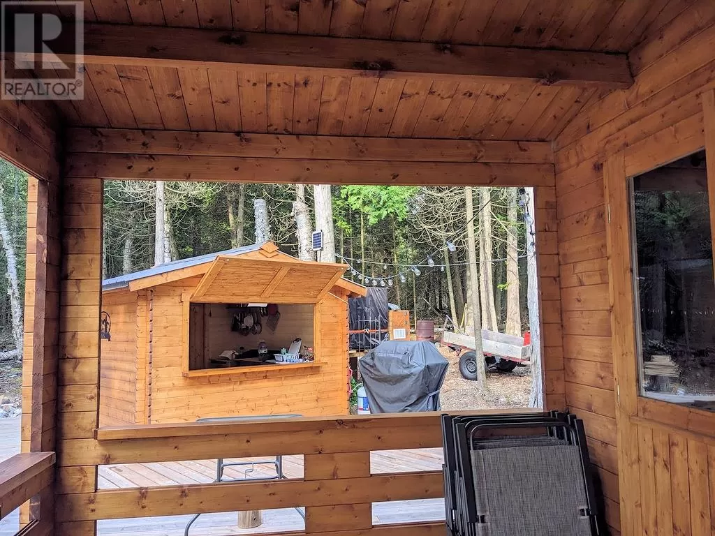 Your piece of paradise along the shores of Little Lake Huron, this rustic stacked log cabin is nestled off the beaten path among the cedar trees. Secluded west end of Manitoulin Island in the unorganized township of Robinson near Silver Water, this charming 3 season cabin beckons with its rustic charm and peaceful ambiance. Parking for 4 vehicles and accessible via a privately maintained road, this property is secluded and private being the perfect escape from the city. The main cabin with a covered porch has a queen size bed, The kitchen and bathroom buildings are all connected by spacious decking. There are solar lights, propane heat and cooking, hot water with generator backup. The bathroom has a modern (2 year old) composting toilet and sink plus a charming outdoor shower. The firepit is the perfect spot for evening drinks and roasting marshmallows, with lots of wood cut and ready for use. The 10x10 tent platform is ready for overnight guests with tent included. Spend your day swimming, fishing or paddling around the warm waters of Little Lake Huron with 104 feet of water frontage and a 16 feet aluminum dock. Take the ATV, just a few minutes ride, down to beautiful Sand Bay with the white bluffs and cooler waters of Lake Huron. With propane heat, this property is perfect in the fall as well. Enjoy the changing colours and if you are a hunter, there are ample deer and small game frequently on the property. Turnkey and ready for your summer memories with a 8x6 feet metal storage shed, propane BBQ, 4 Muskoka chairs, patio table and 4 chairs, Honda ATV, ATV trailer, gas water pump and gas backup generator, all included. $129,000 (1620) (id:27476)