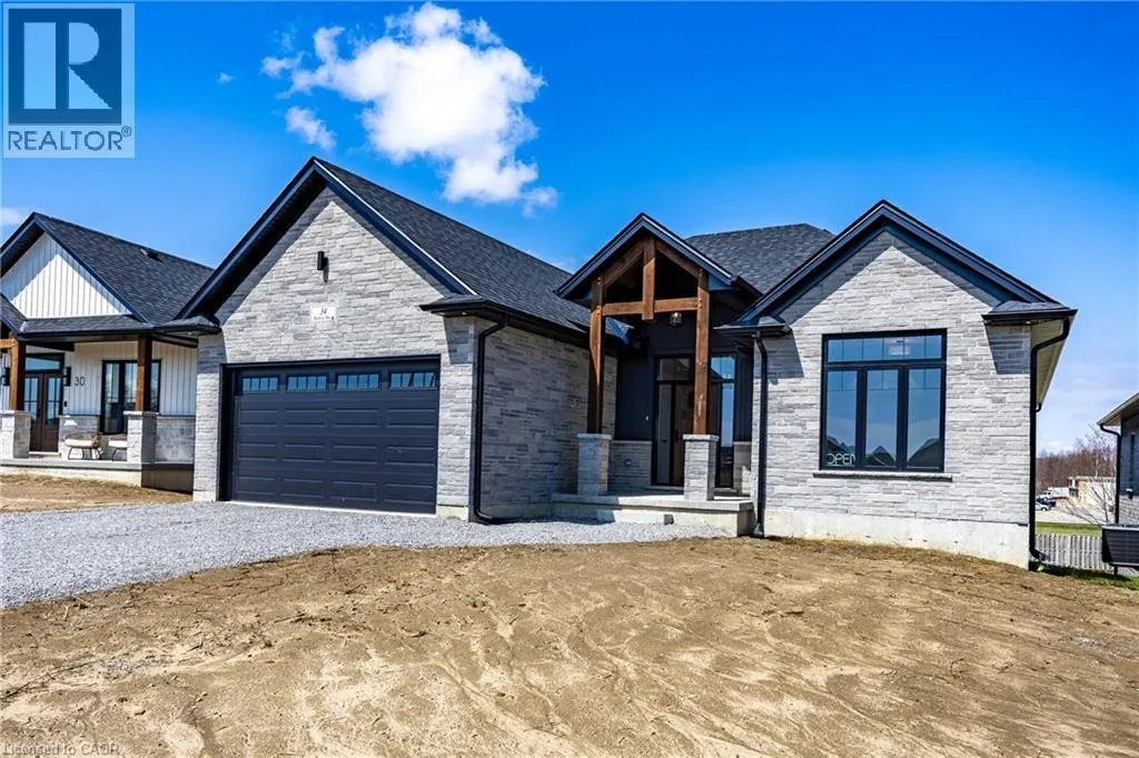 From HWY 3 (QUEENSWAY) TURN ONTO IRELAND RD, TURN ONTO ANDREW AVENUE Beautiful new bungalow offering 1,658 sq. ft. of modern living, this home combines style, function, and a prime location close to shopping, dining, schools, and all the amenities Simcoe has to offer. The exterior features timeless stonework, a covered front porch with stained pine entrance, and great curb appeal. Step inside to 9 ft ceilings throughout, a stunning 10 ft tray ceiling in the living room, and an electric fireplace that adds warmth and charm. The open-concept kitchen/dining area includes an island, custom cabinetry, and a walk-in pantryâperfect for both everyday living and entertaining. Walk out from the dining area to a covered upper deck, and from the finished basementâs rec room to a lower patioâcreating seamless indoor-outdoor living. The main floor offers two generous bedrooms, including a primary suite with a walk-in closet and a spa-like ensuite featuring a tiled shower with glass door. A stylish 4 pc bath completes the main level. The oversized garage with insulated doors provides direct access to the laundry room, offering both convenience and practicality. The finished basement expands your living space with a spacious rec room, bedroom, full bathroom, storage, and utility room. Donât miss this opportunity to own a stunning new homeâmove-in ready and waiting for your personal touch. Book your private viewing today! (id:27476)