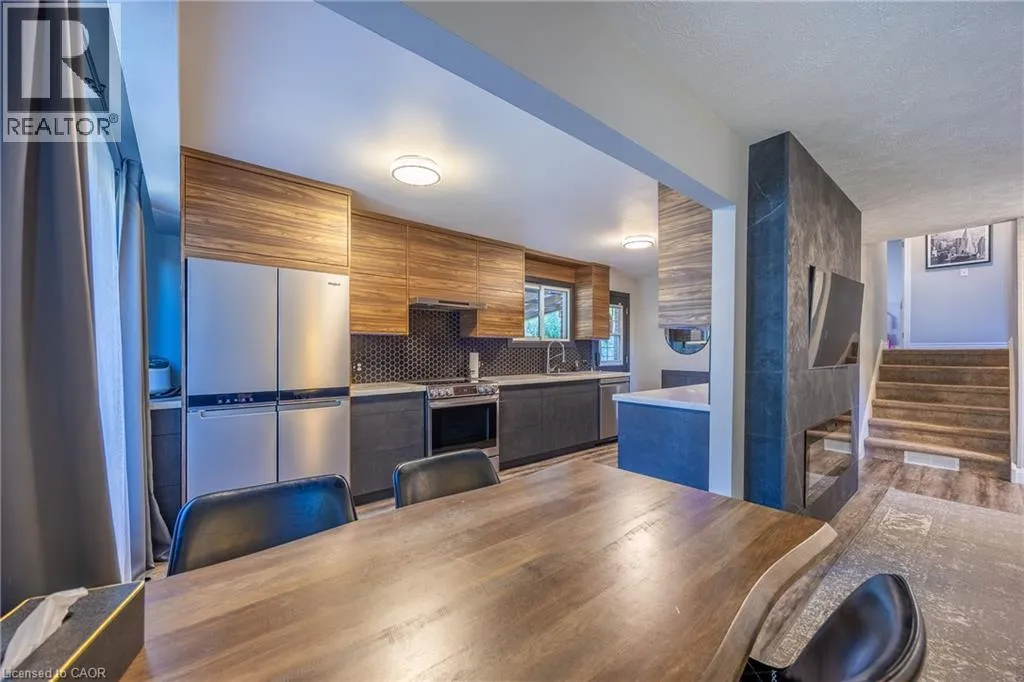 Take West Street to Holden Ave. then turn Right on Royal Road. 10 Beckett Blvd is on the corner of Royal Rd. and Beckett Boulevard. Park in the driveway or use street parking. Welcome to 10 Beckett Boulevard! This beautifully updated 3 bedroom, 2 bathroom back-split sits on a spacious corner lot, in one of Simcoe's most desirable residential neighbourhoods. Enjoy the stunning modern kitchen wiith stainless steel appliances, a cozy living room featuriing a fiireplace and a refreshed dining area - perfect for family gatherings. The lower level offers a bright family room with large windows, plus a laundry room, workshop, utility/workshop space and a convenient half bath. Outside, relax under the quaint side porch overlooking the private fenced yard or unwind around the corner fire pit. Addiitional highlights include two storage sheds and a large carport. Located close to Norfolk General Hospital, the public library, schools, shopping and recreation, this home is move-in ready and ideal for families, downsizers or investors alike. Click the video and floor plan tour links and get ready to call thiis wonderful property home! (id:27476)