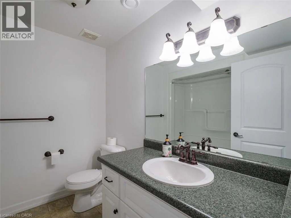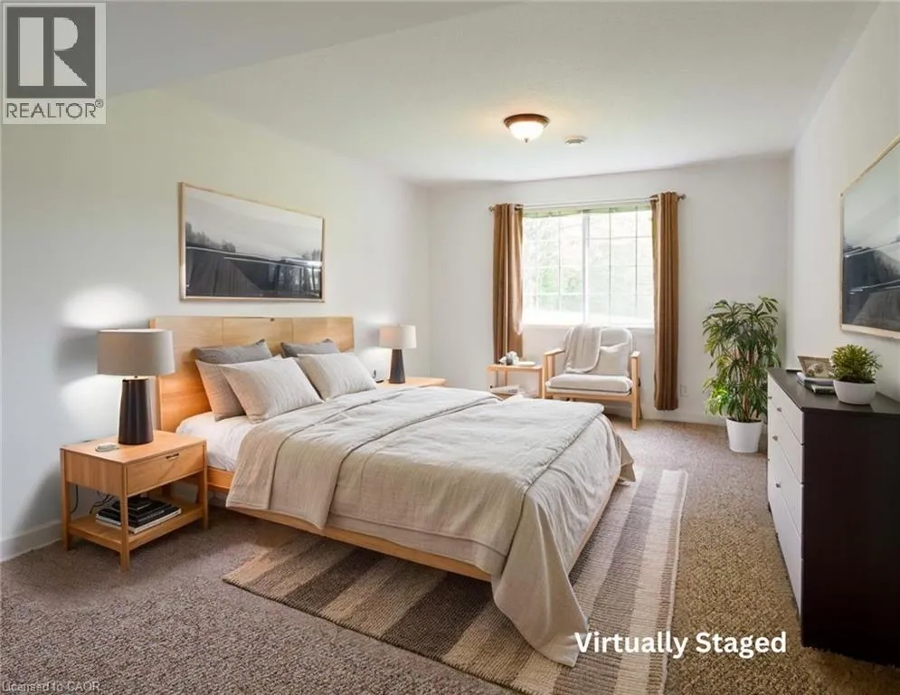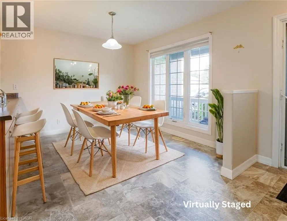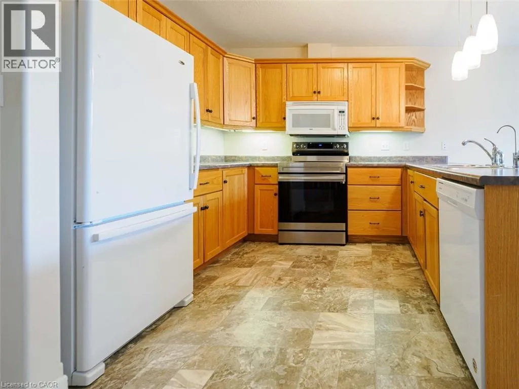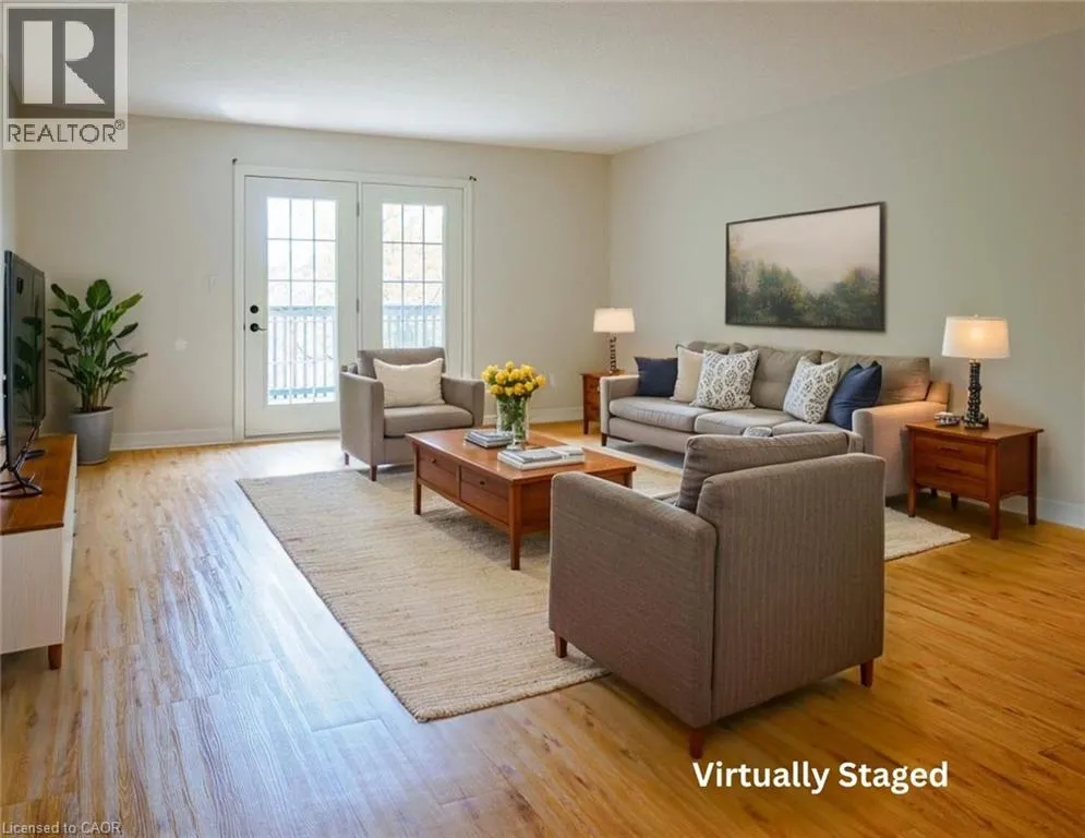 Norfolk St S to Evergreen Hill Rd to Queen Condo Living with a View! Welcome home to this well maintained 2-bedroom, 2-bath condo tucked away in a quiet, well-cared-for complex. Offering a bright and functional layout, this home makes everyday living both comfortable and convenient. On the main floor, youâll find a spacious primary bedroom with3 pc ensuite privilege bath & laundry , an eat-in kitchen, and a sun-filled living and dining area. Step directly from your living room onto a private deck with views of green space, walking trails, and a tranquil pondâit feels like your own backyard retreat. A convenient inside access to the single-car garage completes the main level. The finished lower level offers a large family room with a cozy gas fireplace & opens through french doors to a walk-out patio. A bright second bedroom, 4-piece bathroom, and generous storage space provide comfort and flexibility for guests, hobbies, or a home office. Immediate possession available, you can move right in and begin enjoying a low-maintenance lifestyle. (id:27476)