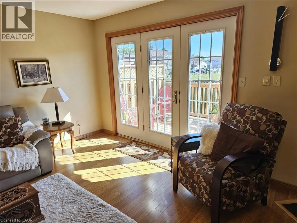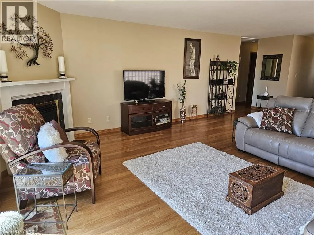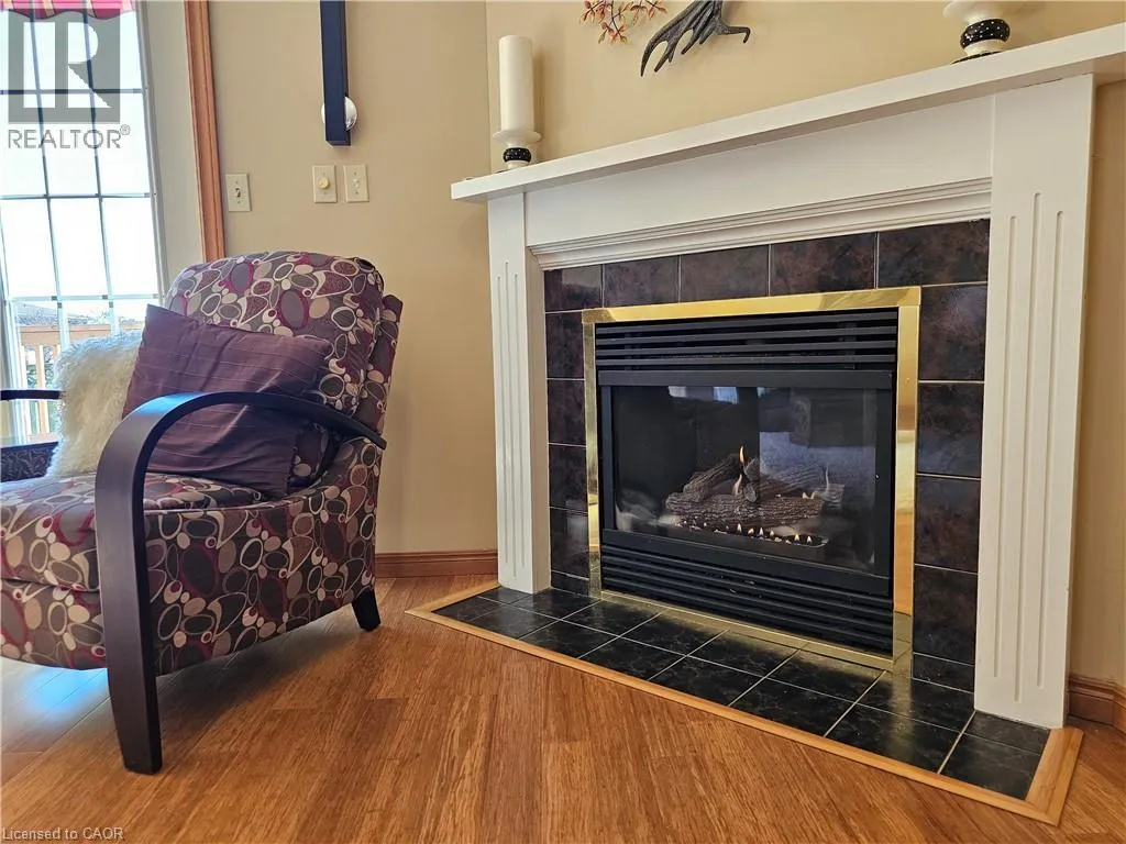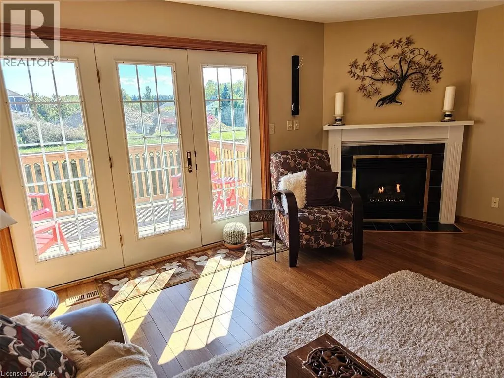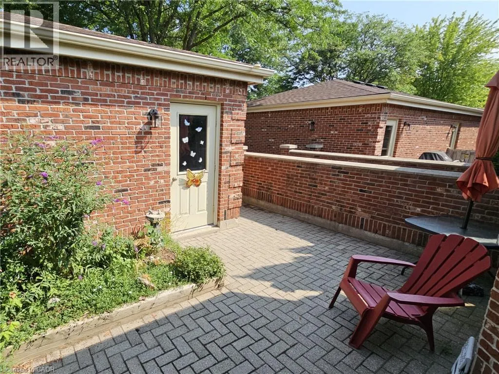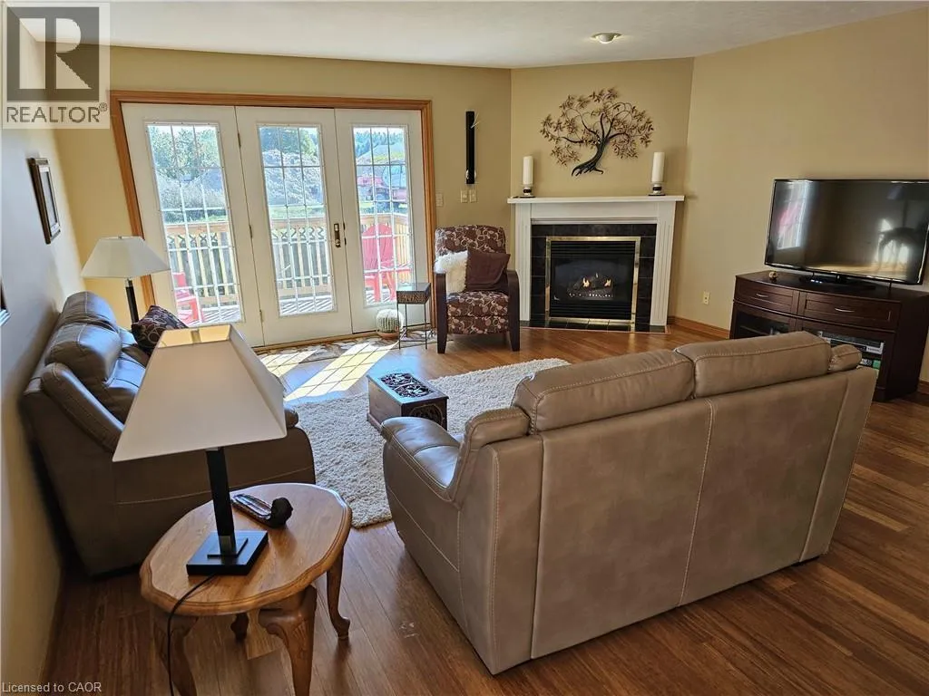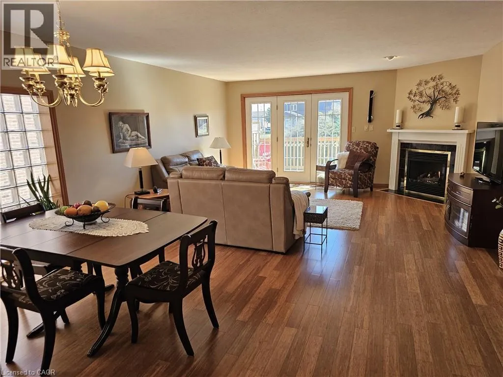 From Queensway East (Hwy 3 E) head south on Donly Drive. Lynn Court complex is on the right. There is 1 parking spot in front of the garage and visitor parking available. Looking for comfort, simplicity, and low-maintenance living at an affordable price? Nestled in the quiet Lynn Court complex, this charming 2 Bedroom, 2 Bathroom Condo Townhome offers single-level convenience, making it ideal for downsizers, retirees, or anyone seeking stress-free living in a desirable neighbourhood. The main floor features a bright kitchen with a breakfast nook, bay window and gas stove, perfect for casual meals or morning coffee. The open-concept living and dining room showcases bamboo flooring, a cozy gas fireplace, and French doors that open to a private deck with power awning - your own outdoor retreat for relaxing or entertaining on warm summer days. The spacious primary suite features double closets and a 4pc ensuite complete with a skylight that fills the room with natural light while the second bedroom offers a charming bay window and easy access to the main 4pc bathroom. Laundry hookups are available both on the main level for stackables and in the basement for full-size machines, giving you flexible options. The unfinished basement provides excellent storage and is full of potential for future development. Other highlights include an exclusive-use detached garage, interlocking brick courtyard patio, newer furnace and central air (2023), water softener, Green Life Works Water Filtration System, and rough-in for central vac. Blending comfort, functionality, and location, this home is move-in ready and designed for easy, low-maintenance living. Whether youâre ready to downsize, retire, or simply enjoy life at a slower pace, this charming condo townhome is ready to welcome you home. (id:27476)