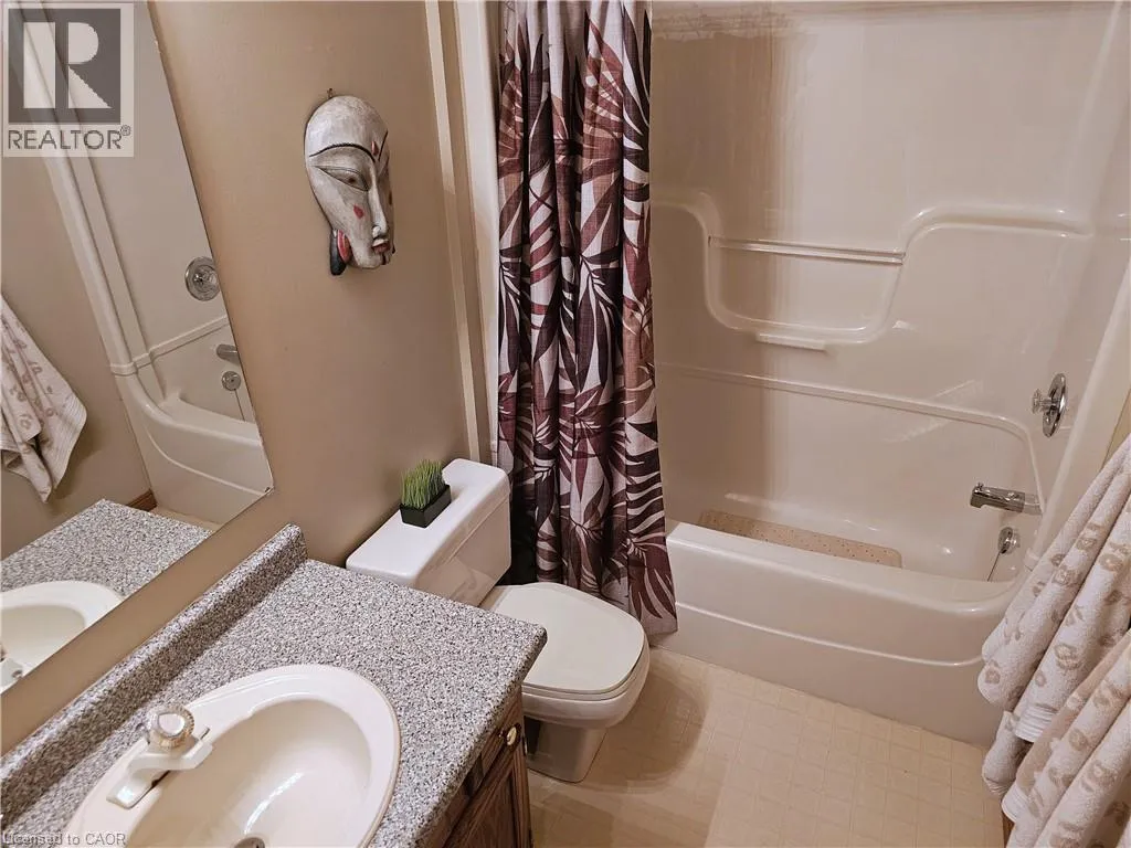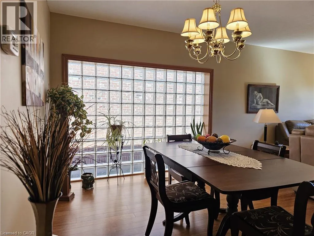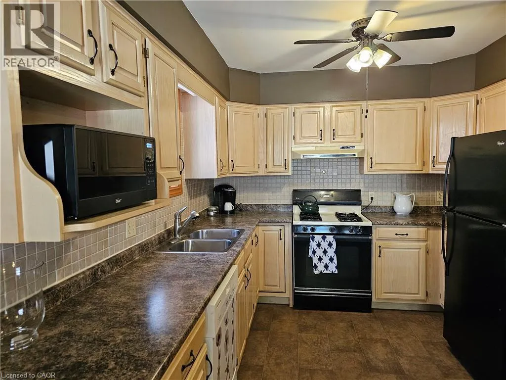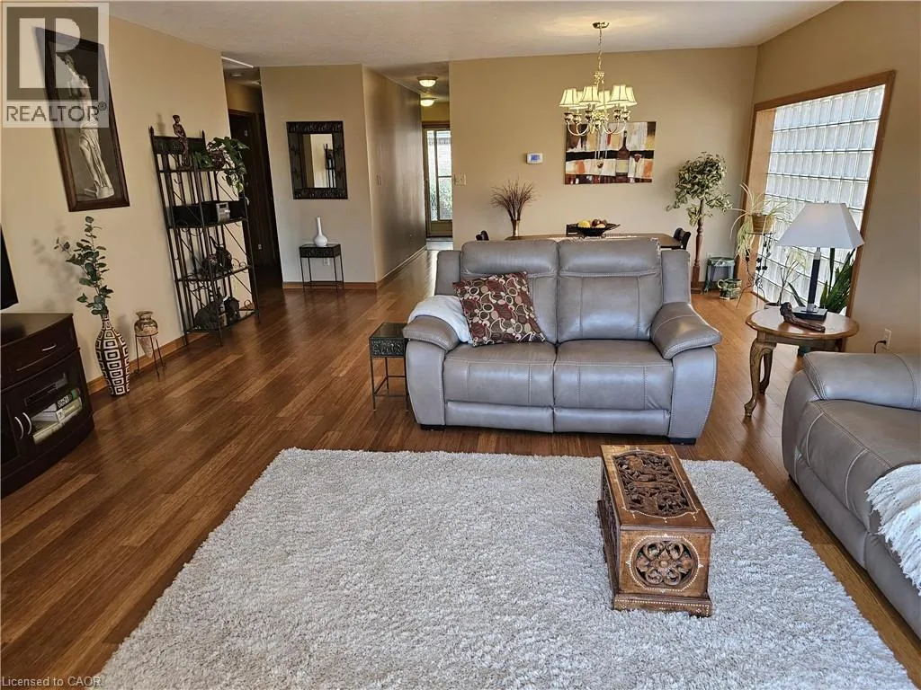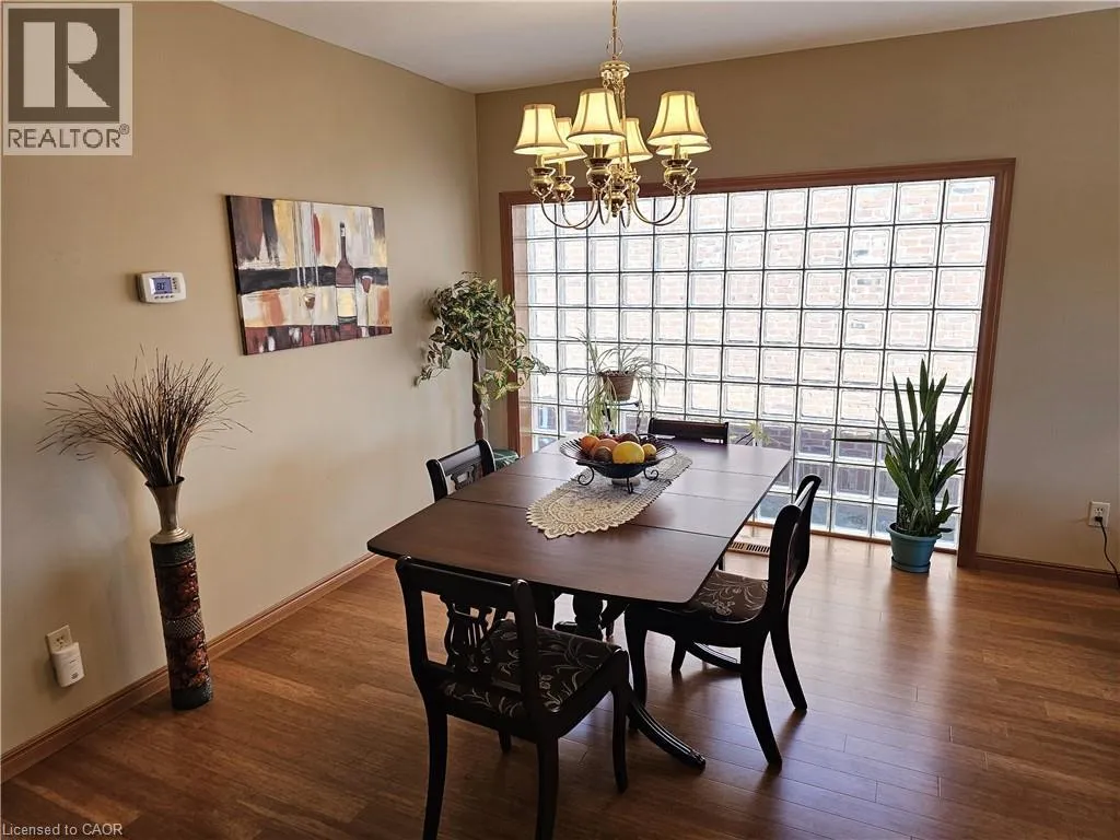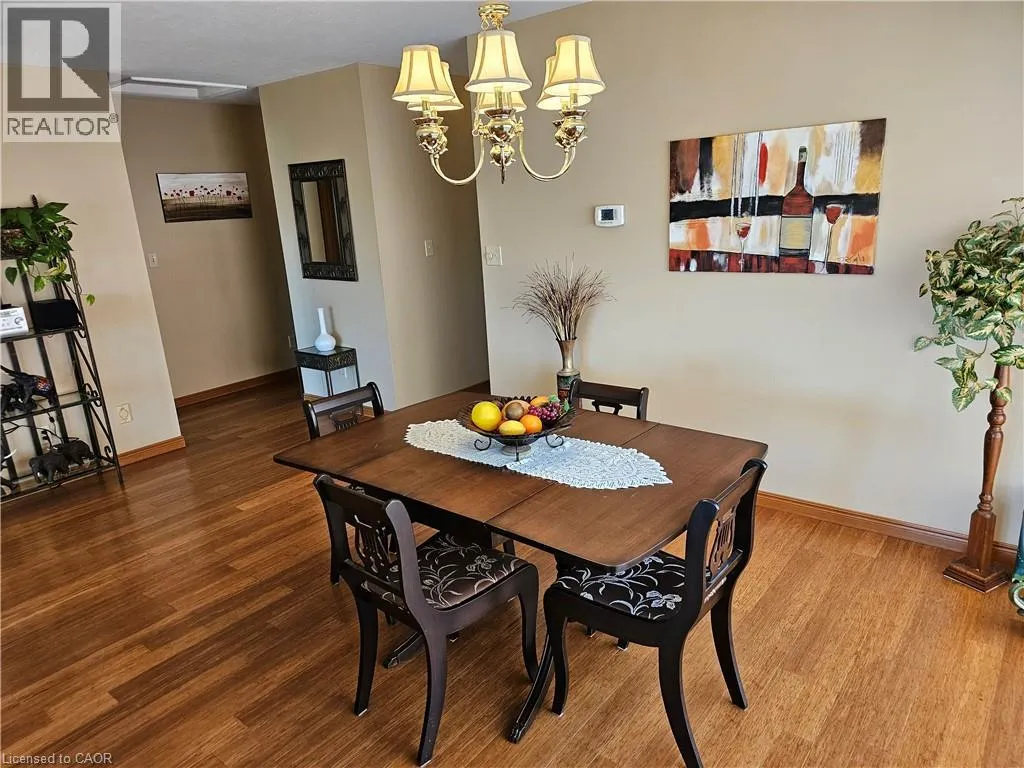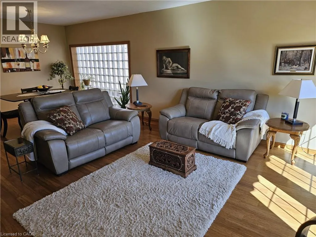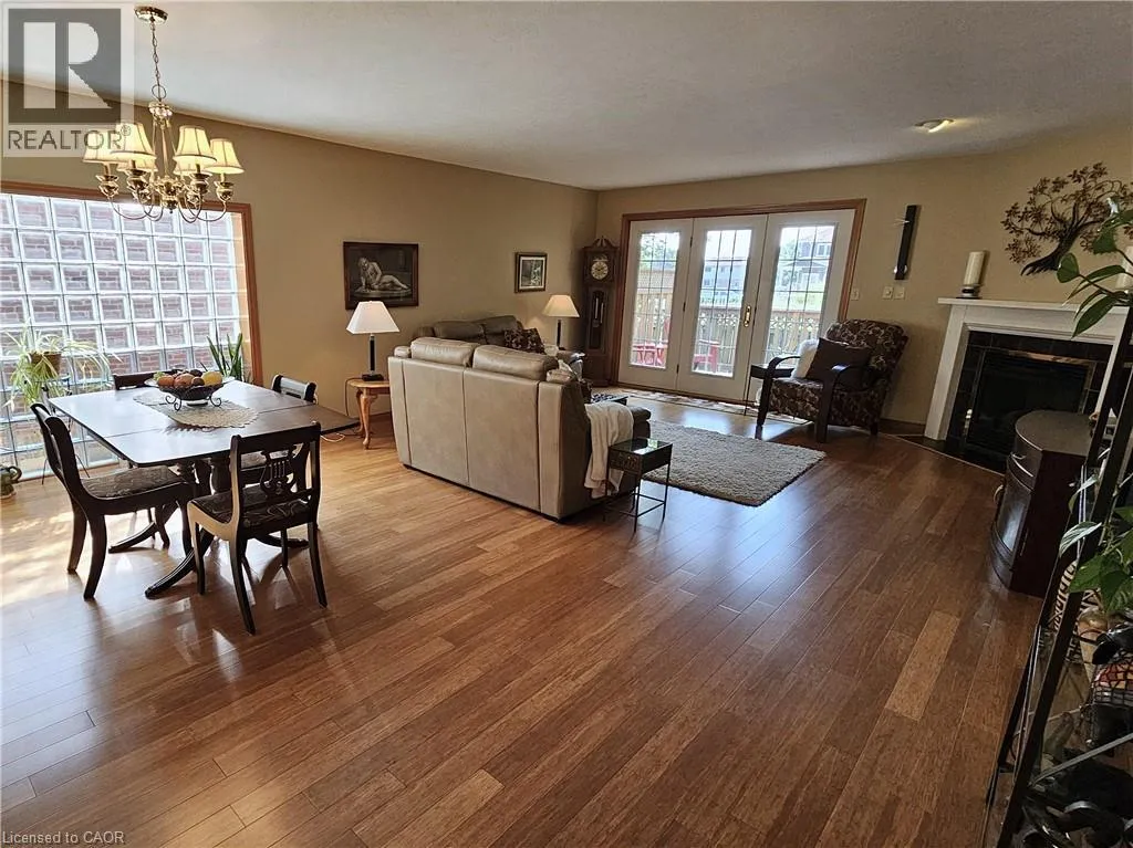 From Queensway East (Hwy 3 E) head south on Donly Drive. Lynn Court complex is on the right. There is 1 parking spot in front of the garage and visitor parking available. Looking for comfort, simplicity, and low-maintenance living at an affordable price? Nestled in the quiet Lynn Court complex, this charming 2 Bedroom, 2 Bathroom Condo Townhome offers single-level convenience, making it ideal for downsizers, retirees, or anyone seeking stress-free living in a desirable neighbourhood. The main floor features a bright kitchen with a breakfast nook, bay window and gas stove, perfect for casual meals or morning coffee. The open-concept living and dining room showcases bamboo flooring, a cozy gas fireplace, and French doors that open to a private deck with power awning - your own outdoor retreat for relaxing or entertaining on warm summer days. The spacious primary suite features double closets and a 4pc ensuite complete with a skylight that fills the room with natural light while the second bedroom offers a charming bay window and easy access to the main 4pc bathroom. Laundry hookups are available both on the main level for stackables and in the basement for full-size machines, giving you flexible options. The unfinished basement provides excellent storage and is full of potential for future development. Other highlights include an exclusive-use detached garage, interlocking brick courtyard patio, newer furnace and central air (2023), water softener, Green Life Works Water Filtration System, and rough-in for central vac. Blending comfort, functionality, and location, this home is move-in ready and designed for easy, low-maintenance living. Whether youâre ready to downsize, retire, or simply enjoy life at a slower pace, this charming condo townhome is ready to welcome you home. (id:27476)