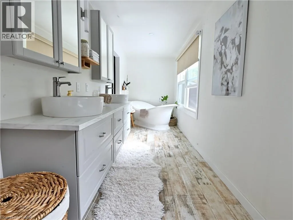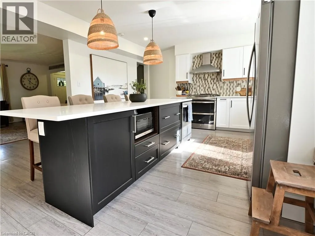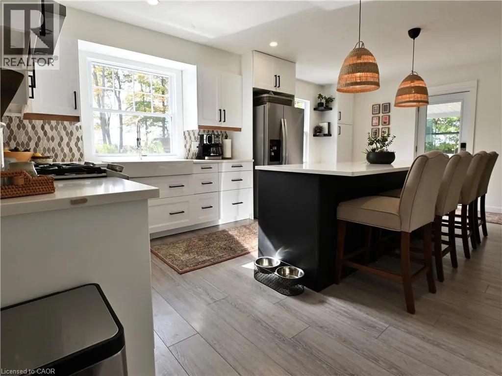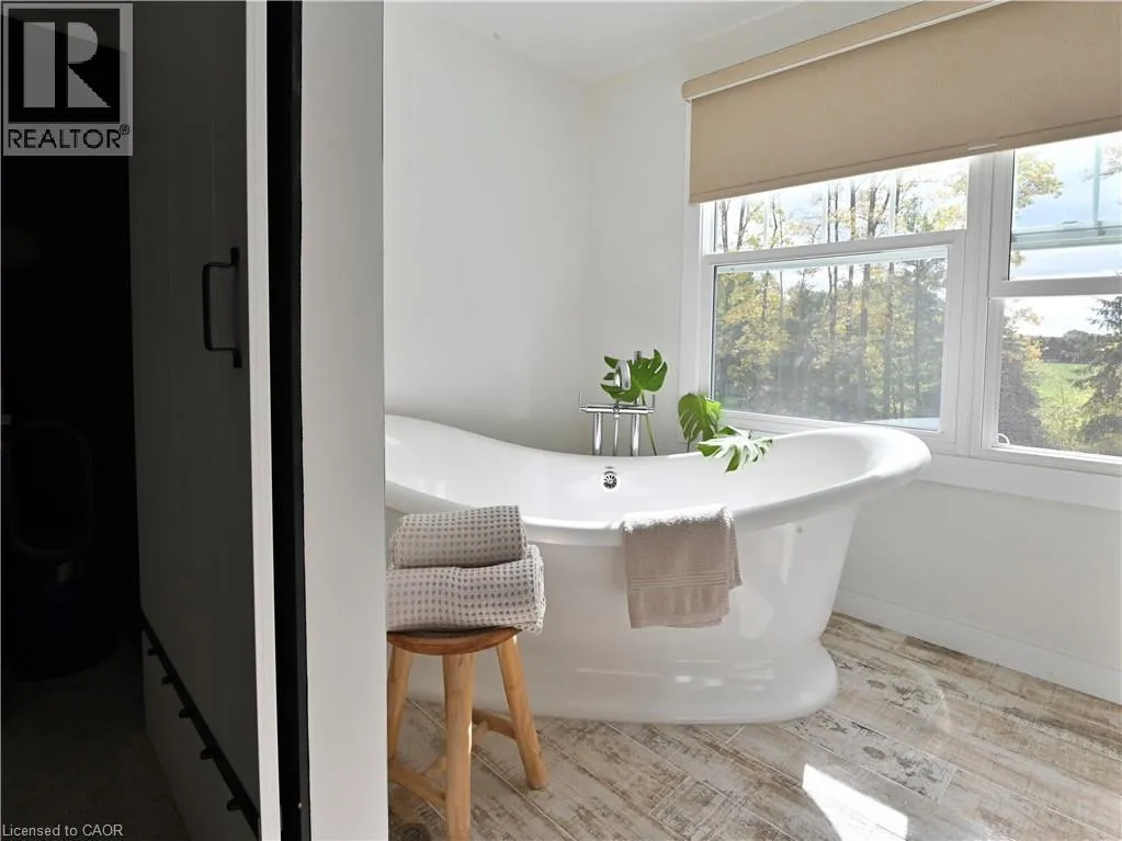 HWY 24 TO WOODLAND DRIVE CUL-DE-SAC Welcome to this MULTI GENERATIONAL home with IN-LAW SUITE. Located just on the outskirts of Simcoe, this 1.12 Acre property sits perfectly in a picturesque quiet CUL-DE-SAC. A beautiful covered wraparound porch hugs this modern country farmhouse feel home. The meticulously maintained landscape front and back is sure to please from it's gorgeous greenhouse, stunning perennial gardens to it's sweet retreat we like to call The Lounge in the back yard. A therapeutic hot tub for our cold Ontario winters awaits you under the covered porch or jump into the refreshing above ground pool off the sundeck during our sweltering summer months. The separate entrance IN-LAW SUITE is approximately 1065 SF with high end custom kitchen, large built on sunroom, living room with pot lights, big picture window, main floor laundry and a walk-in tub and shower in the ensuite. The star of the show is stolen inside the main house. Completely renovated with style shows throughout, from a modern kitchen with quartz counters and a 10 foot island, to a nicely designed primary bedroom and ensuite. Upstairs hosts the primary bedroom, 2 additional bedrooms and a 4 pcs bathroom. Need more space? The fully finished basement has a gorgeous recreation room with a gas fireplace, another bedroom and another 4 pcs bath. Perfect for entertaining guests or your favorite teenagers oasis. The list of upgrades extends from a fully sealed driveway 2020, new roof 2024, exterior of house professionally painted 2024, all upstairs windows 2024 just to list a few. Best of all this property has a 46 Foot dug well, water should never be an issue and one less bill to pay! (id:27476)