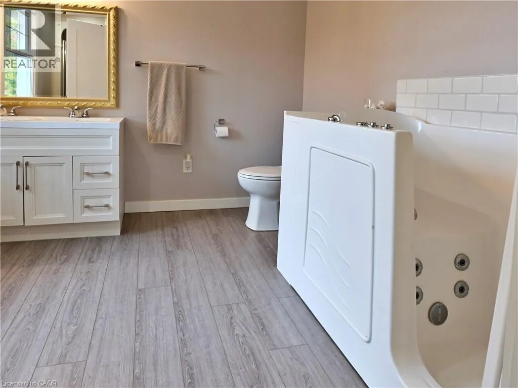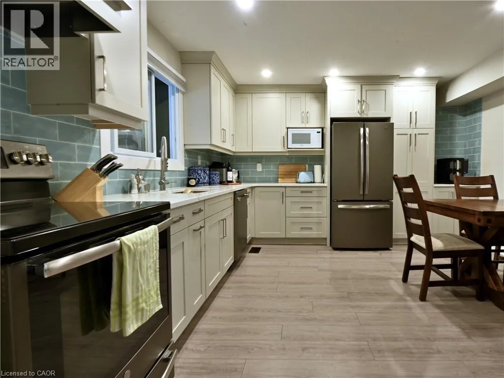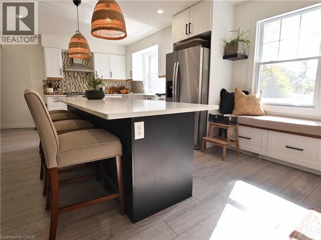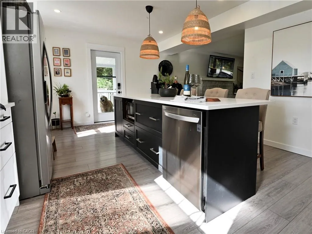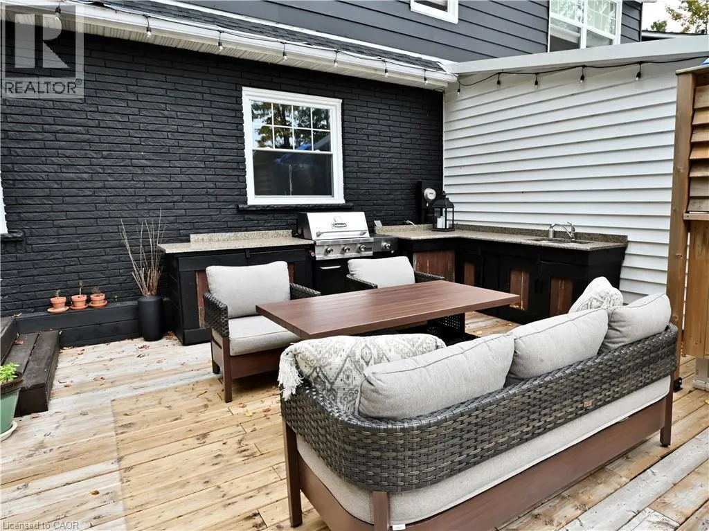 HWY 24 TO WOODLAND DRIVE CUL-DE-SAC Welcome to this MULTI GENERATIONAL home with IN-LAW SUITE. Located just on the outskirts of Simcoe, this 1.12 Acre property sits perfectly in a picturesque quiet CUL-DE-SAC. A beautiful covered wraparound porch hugs this modern country farmhouse feel home. The meticulously maintained landscape front and back is sure to please from it's gorgeous greenhouse, stunning perennial gardens to it's sweet retreat we like to call The Lounge in the back yard. A therapeutic hot tub for our cold Ontario winters awaits you under the covered porch or jump into the refreshing above ground pool off the sundeck during our sweltering summer months. The separate entrance IN-LAW SUITE is approximately 1065 SF with high end custom kitchen, large built on sunroom, living room with pot lights, big picture window, main floor laundry and a walk-in tub and shower in the ensuite. The star of the show is stolen inside the main house. Completely renovated with style shows throughout, from a modern kitchen with quartz counters and a 10 foot island, to a nicely designed primary bedroom and ensuite. Upstairs hosts the primary bedroom, 2 additional bedrooms and a 4 pcs bathroom. Need more space? The fully finished basement has a gorgeous recreation room with a gas fireplace, another bedroom and another 4 pcs bath. Perfect for entertaining guests or your favorite teenagers oasis. The list of upgrades extends from a fully sealed driveway 2020, new roof 2024, exterior of house professionally painted 2024, all upstairs windows 2024 just to list a few. Best of all this property has a 46 Foot dug well, water should never be an issue and one less bill to pay! (id:27476)