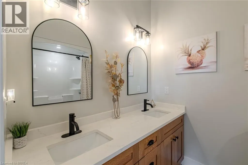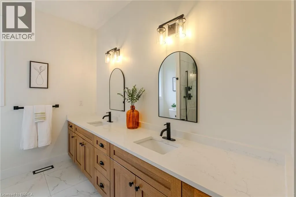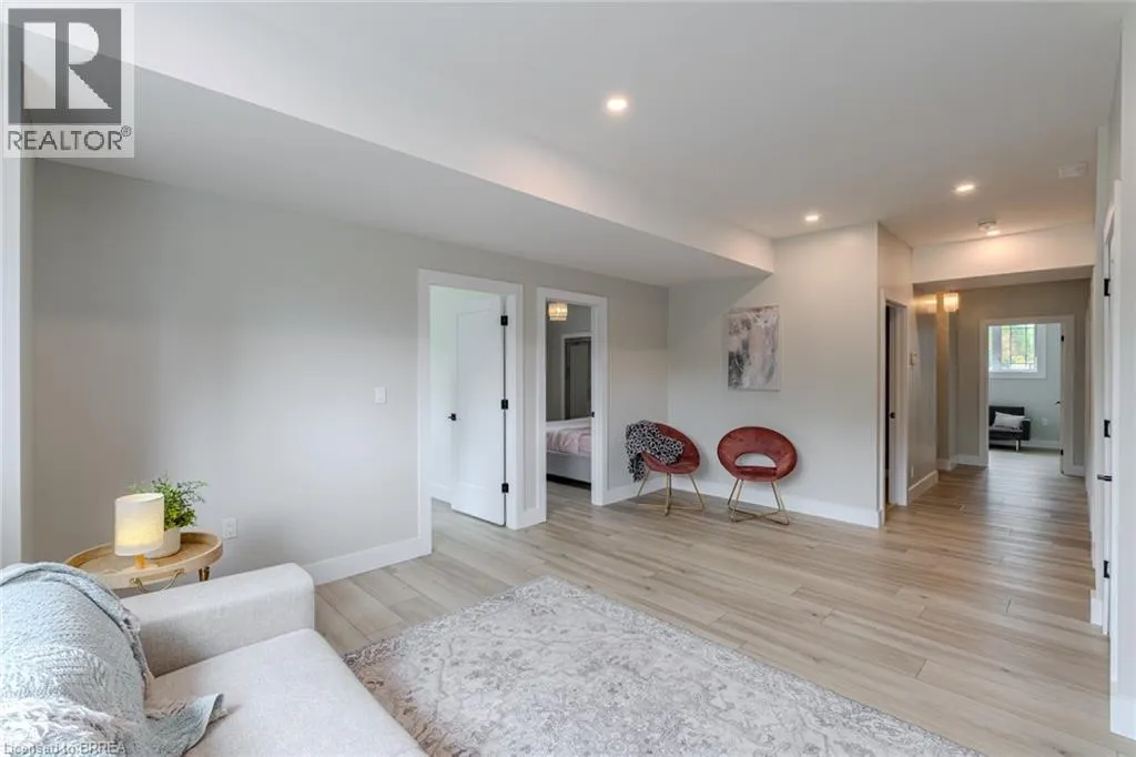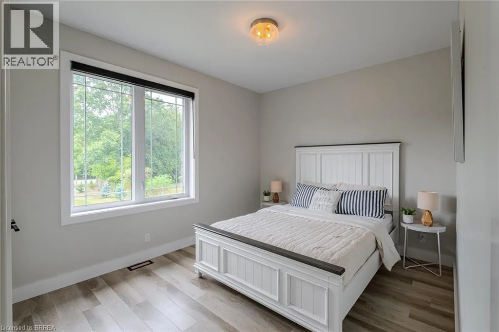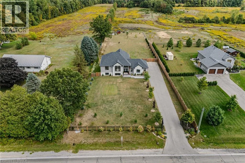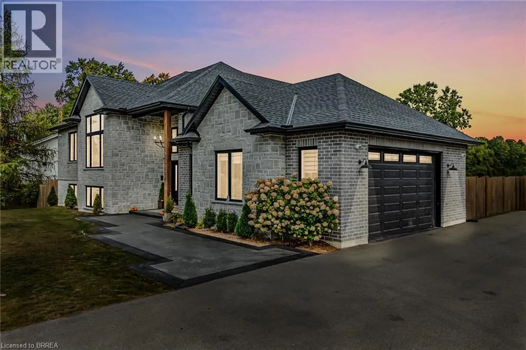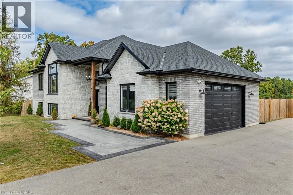 Queensway West to Hillcrest, south to McDowell, west to Turkey Point Rd Welcome to this exceptional Simcoe home, set on a rare one-acre fully fenced lot offering privacy, convenience, and modern luxury. Just 14 minutes from Turkey Point Beach, 8 minutes to Delhi, and 10â12 minutes to Simcoe, the property is also steps from excellent schoolsâSt. Michaelâs Walsh Elementary and Walsh Public across the street, plus Holy Trinity High School in Simcoe. With a gated entrance, long asphalt driveway, heated garage, and parking for 15+ vehicles, this home is as practical as it is stunning. Inside, youâll find 4+4 bedrooms and 3 bathrooms, including a fully finished walk-up basement with a complete in-law suite. The elegant interior showcases a modern oak staircase with glass railing, an open-concept living space with a glass fireplace and custom mantle, quartz countertops, and a custom coffee bar in the kitchen. Upgrades include pot lights throughout, crown molding with LED lighting in the family room, under-cabinet lighting, and a beautifully enhanced front entrance with decorative inserts. All bathrooms feature quartz, upgraded mirrors, and stylish fixtures. The lower level offers versatile living with vinyl flooring, radiant floor heating, plumbing upgrades, and a boiler water heater system. Outdoors, enjoy a stamped concrete entrance and patio, 8â backyard fencing with farm fencing for added security, exterior pot lights, cameras, a Muskoka room on the deck, enclosed under-deck storage, and a garden shed. A barbecue gas line makes entertaining easy. Move-in ready and loaded with thoughtful upgrades, this home combines indoor comfort, outdoor living, and a rare locationâperfect for families seeking both space and convenience. (id:27476)