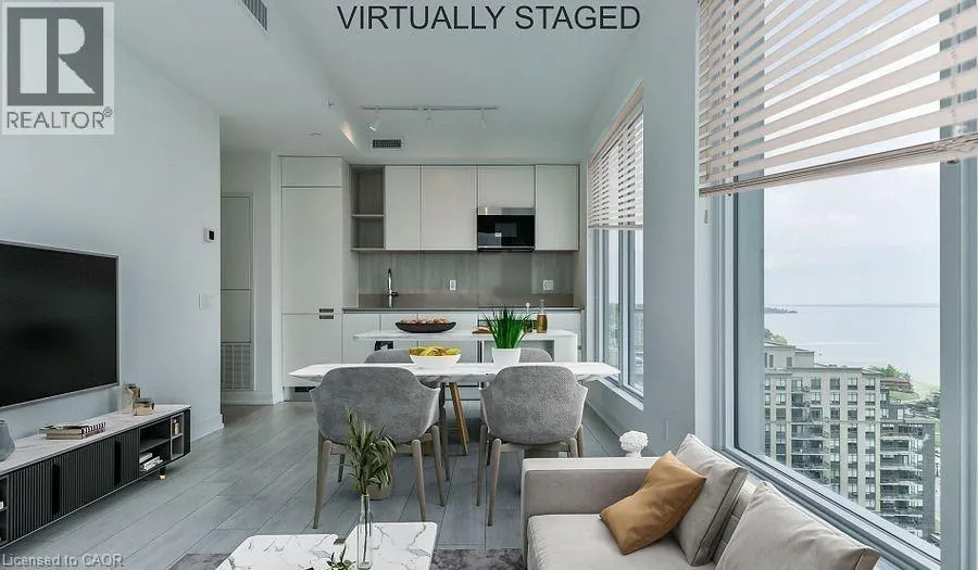 Dunlop st to Mary St. Experience luxury lakeside living in downtown Barrie at the Debut Waterfront Residences! This stunning 2-bedroom, 2-bath suite offers 829 sq. ft. of modern open-concept living with 9-ft ceilings, floor-to-ceiling windows, and unobstructed south-facing views of Kempenfelt Bay.Enjoy a Scavolini kitchen with custom Italian cabinetry, integrated appliances, movable island, and solid surface counters. The primary bedroom features serene lake views, and both bathrooms include frameless glass showers and modern finishes. Step out to your private balcony to take in breathtaking sunrises and lake breezes. Building amenities include an infinity plunge pool, fitness and yoga studios, lounges, business center, and 24-hour concierge. Steps to the waterfront, parks, trails, shops, restaurants, transit, and minutes to Georgian College. (id:27476)