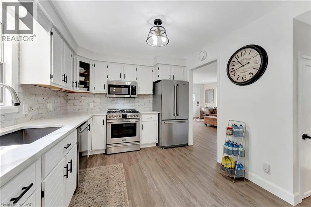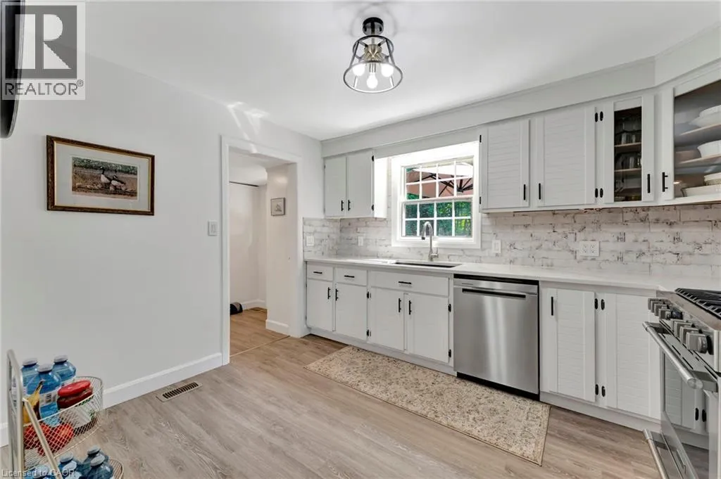 Colborne St N Maple St Talbot St N Welcome to 275 Talbot St N. located in the heart of Simcoe. With approx. 200' of rear waterfront along the Kent Creek, it turns this outdoor space into a true oasis of private scenery. This home has been updated throughout and renovated within the last two and half years with the final touches just completed in the upstairs bedroom. Offering over 1400sq ft this home is larger than it looks providing convenient main floor living. The primary bedroom, bonus room and full washroom are all located on the main floor with the second bedroom and 2 pc washroom located upstairs. A cozy family room with electric fireplace, separate living room and dining room area will allow plenty of space for the whole family to spread out and enjoy. Recent updates in the last 2.5 years include: Many new windows and doors; new siding, capping, downspouts; new garage door and opener; new vinyl plank throughout most of the main floor and second floor; new kitchen with stone counter, new stainless steel appliances and imported back splash; all new 4pc bathroom, new paint and trim through out; on demand water heater is owned; new shed with siding to match the house; recently landscaped yard with back walkway and wood deck; new light fixtures; fireplace and wired speakers in the family room; zebra blinds; AC; Upstairs bedroom was just completed with vinyl plank flooring, fresh paint, new trim and comes with a private 2pc washroom. Parking will allow for up to 4 vehicles (depending on the sizes) with driveway space for 3 and an attached garage (20.9' x 13.4') for 1. This home has been brought back to life and meticulously cared for. It is a true pleasure to tour. (id:27476)